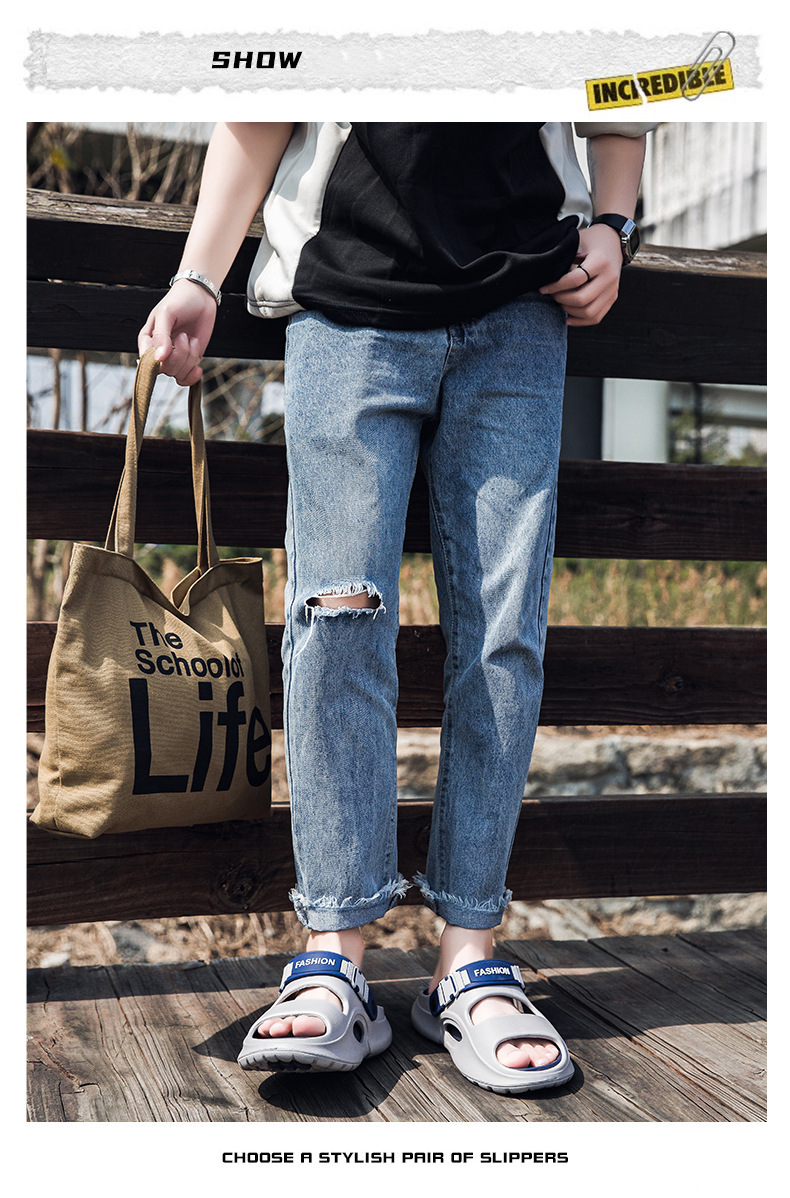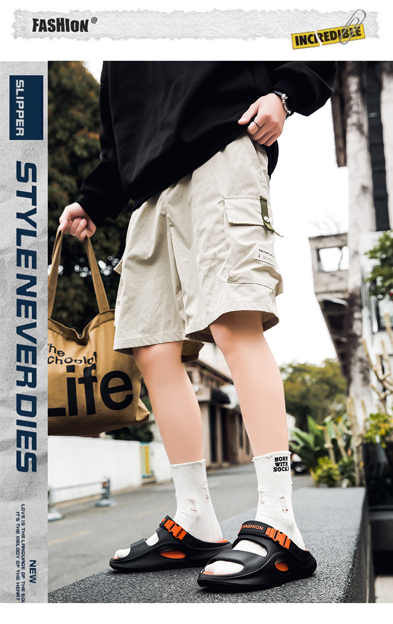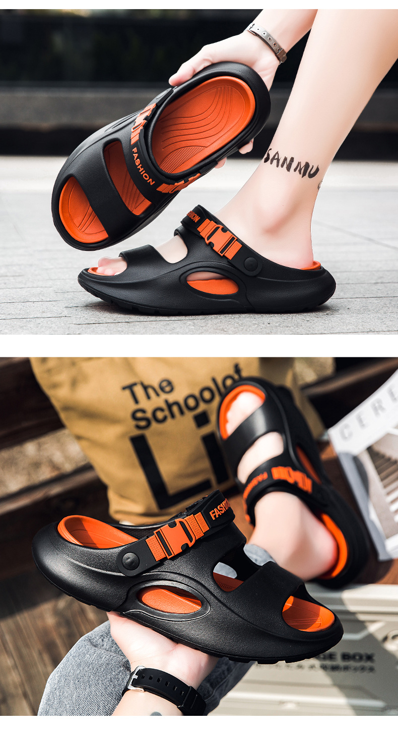 Pantuflas de dos colores para hombres en verano, antideslizante, pisando mierda, chanclas de suela gruesa, sandalias de playa de doble uso para conducción al aire libre