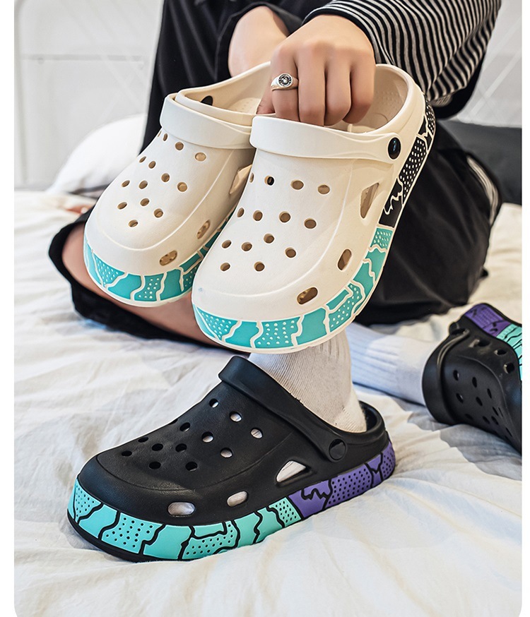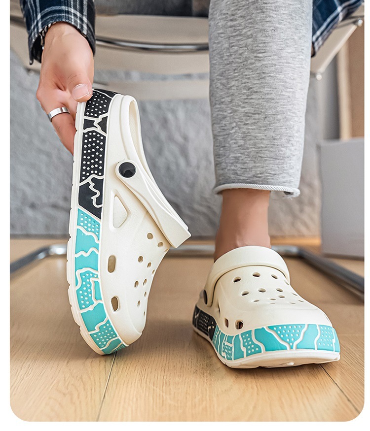 Pantuflas, ropa exterior de marca de moda de verano para hombres, sandalias de oficina de dos desgaste, suela suave, antideslizante y desodorante, zapatos de 45 agujeros de gran tamaño