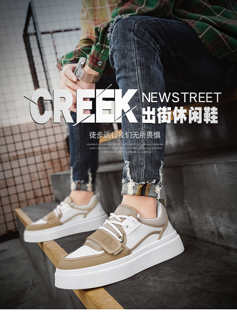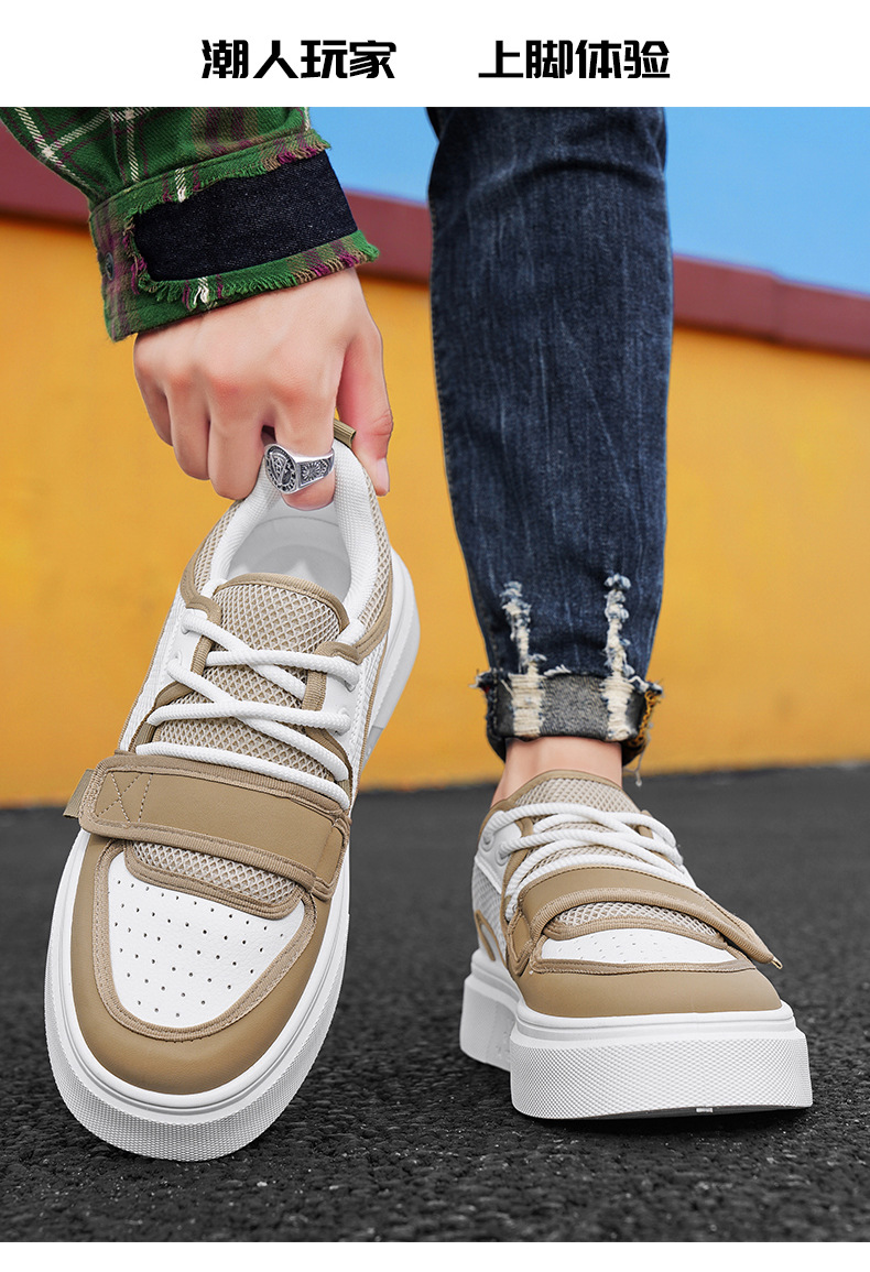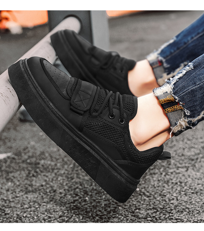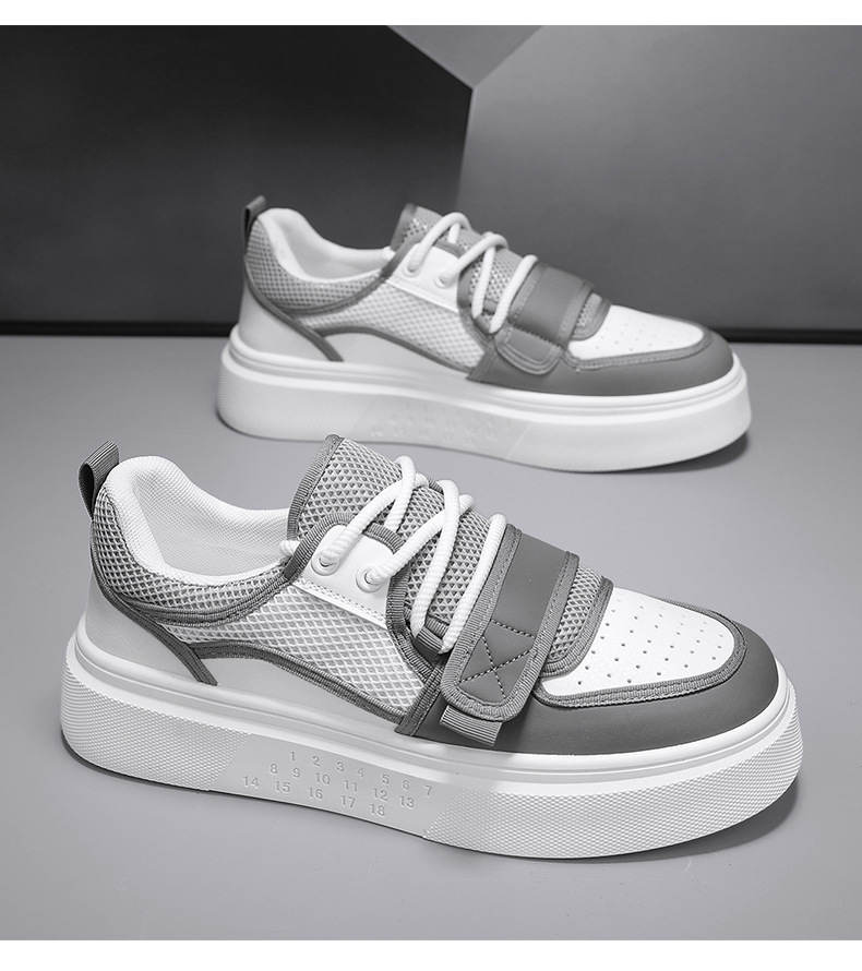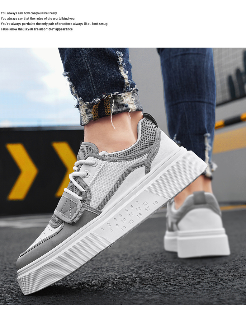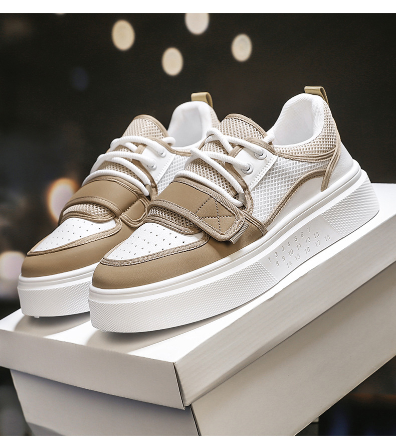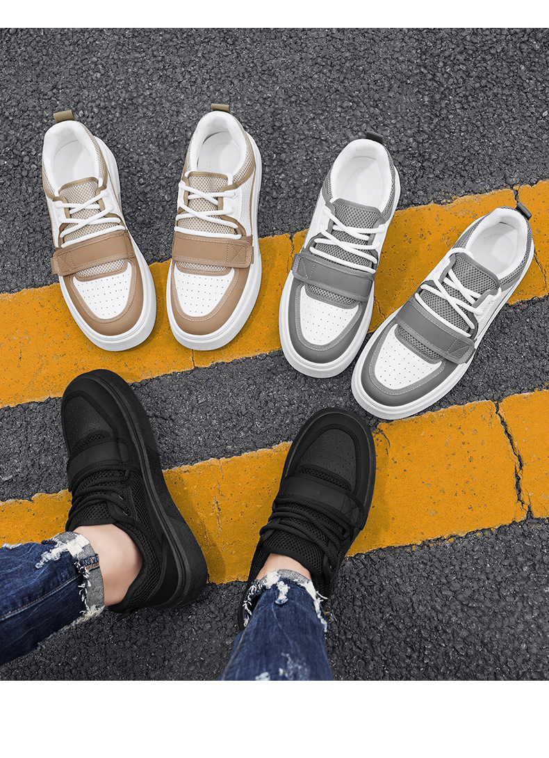 Zapatos de deporte de moda para hombre con hebilla de corte bajo, suela gruesa, zapatos casuales de aumento, malla para hombre, zapatos blancos deportivos para estudiantes transpirables