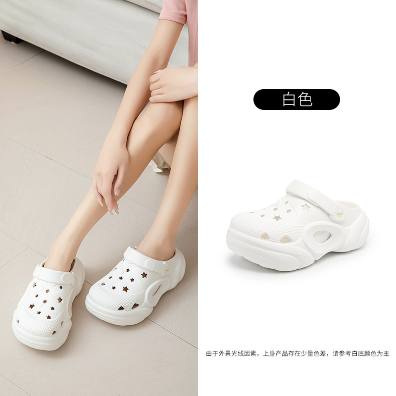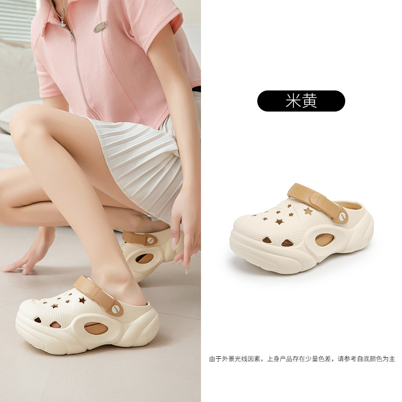 Zapatos con agujeros para mujeres, uso externo, aumento de verano, pies no apestosos, antideslizantes, arrastre de Baotou, sandalias y zapatillas huecas resistentes al desgaste de todo fósforo