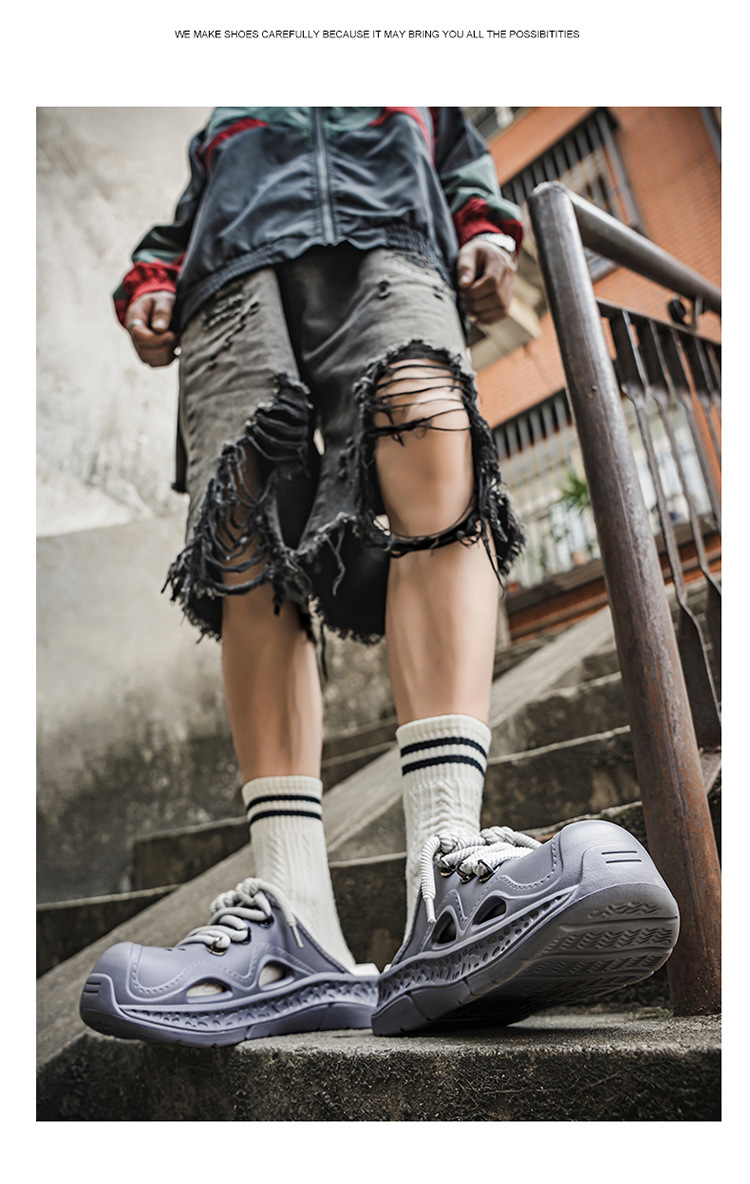 Comercio exterior transfronterizo 2025 nuevos zapatos con agujeros de playa, sandalias sin tacón para hombre, transpirable, antideslizante de verano al por mayor