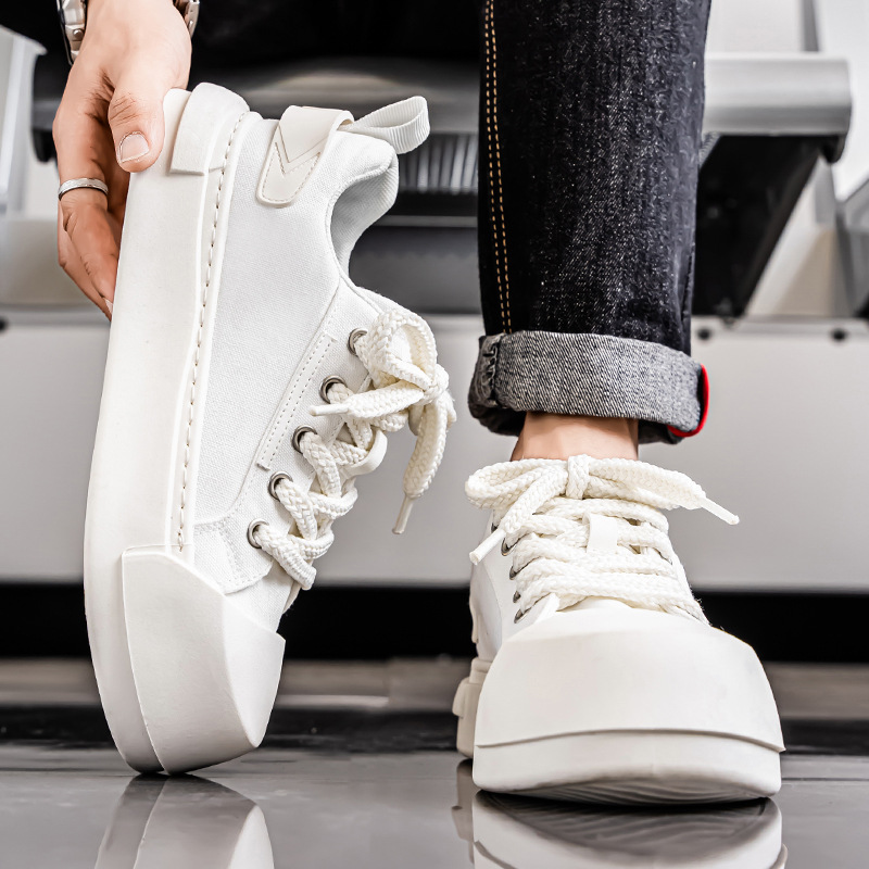 Una pieza de zapatos casuales de generación de cabello 2025 verano transfronterizo nuevos zapatos para hombres zapatos de lona zapatos blancos de aumento para hombres