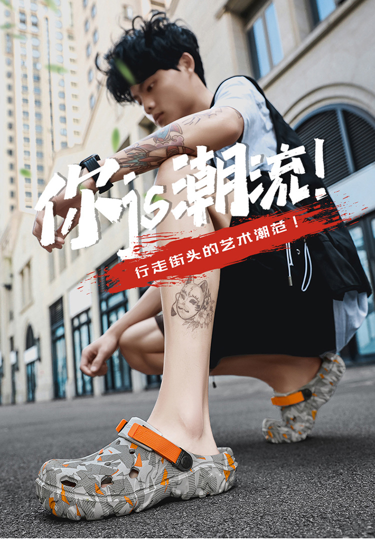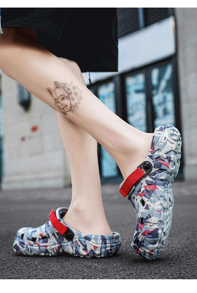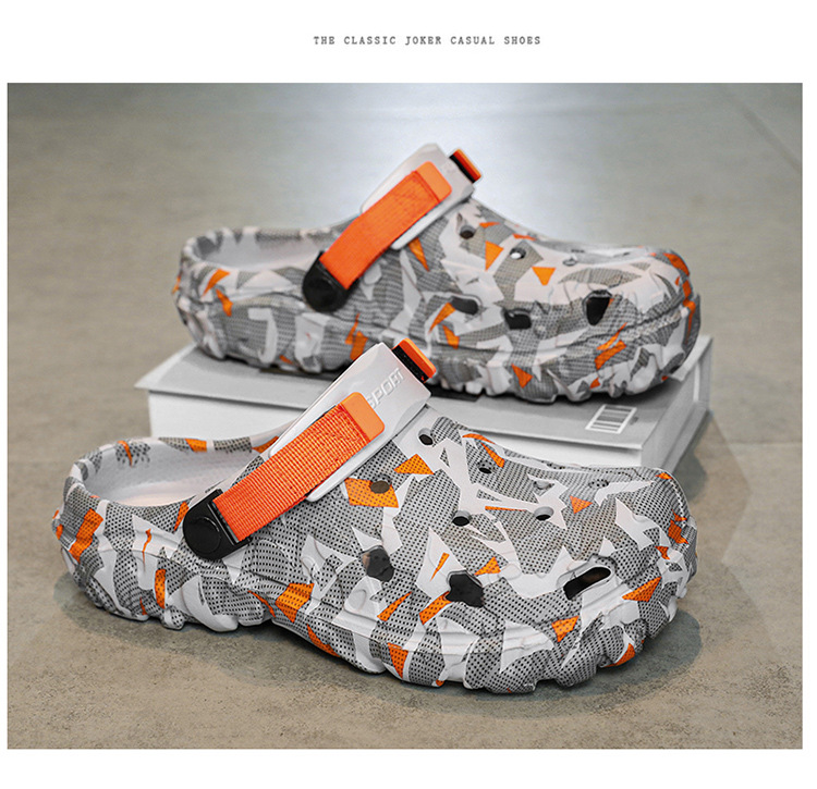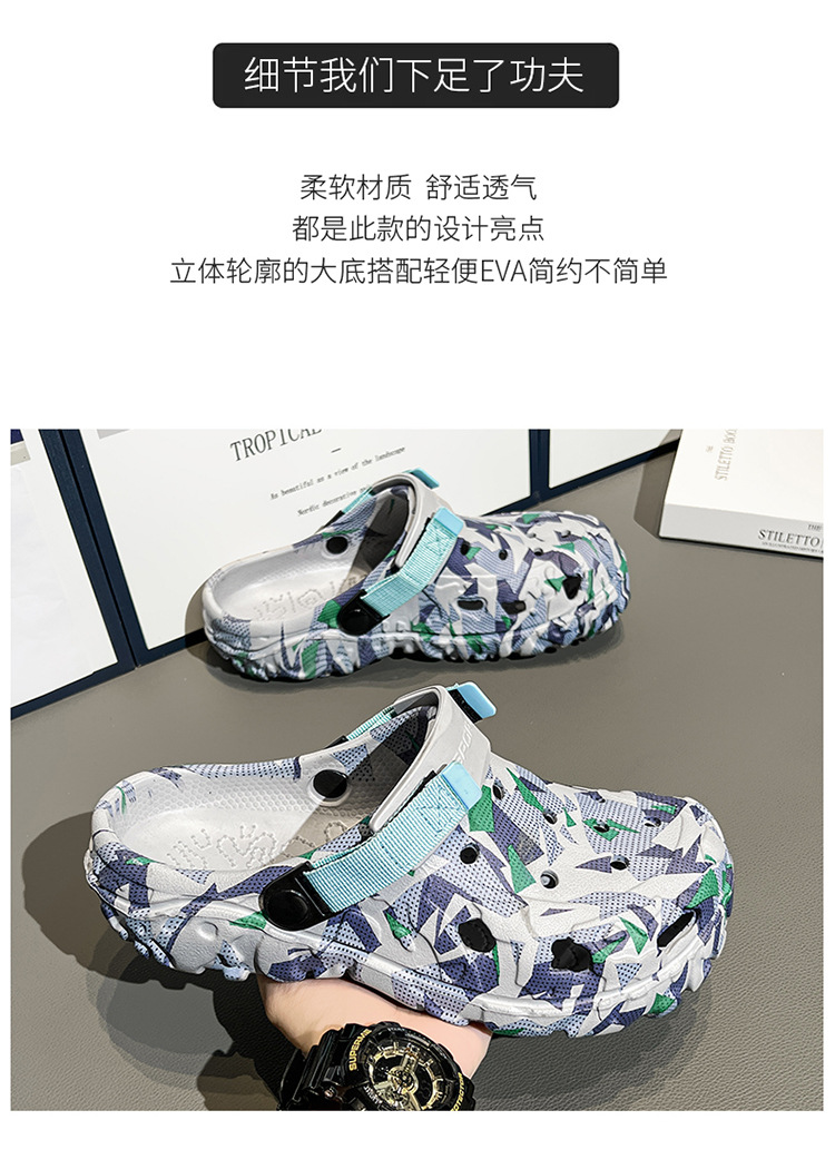 2025 nuevas sandalias de verano con agujeros, zapatos de playa casuales de fondo suave estampados, sandalias de todo fósforo de moda, una generación