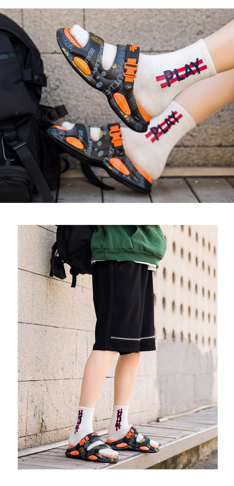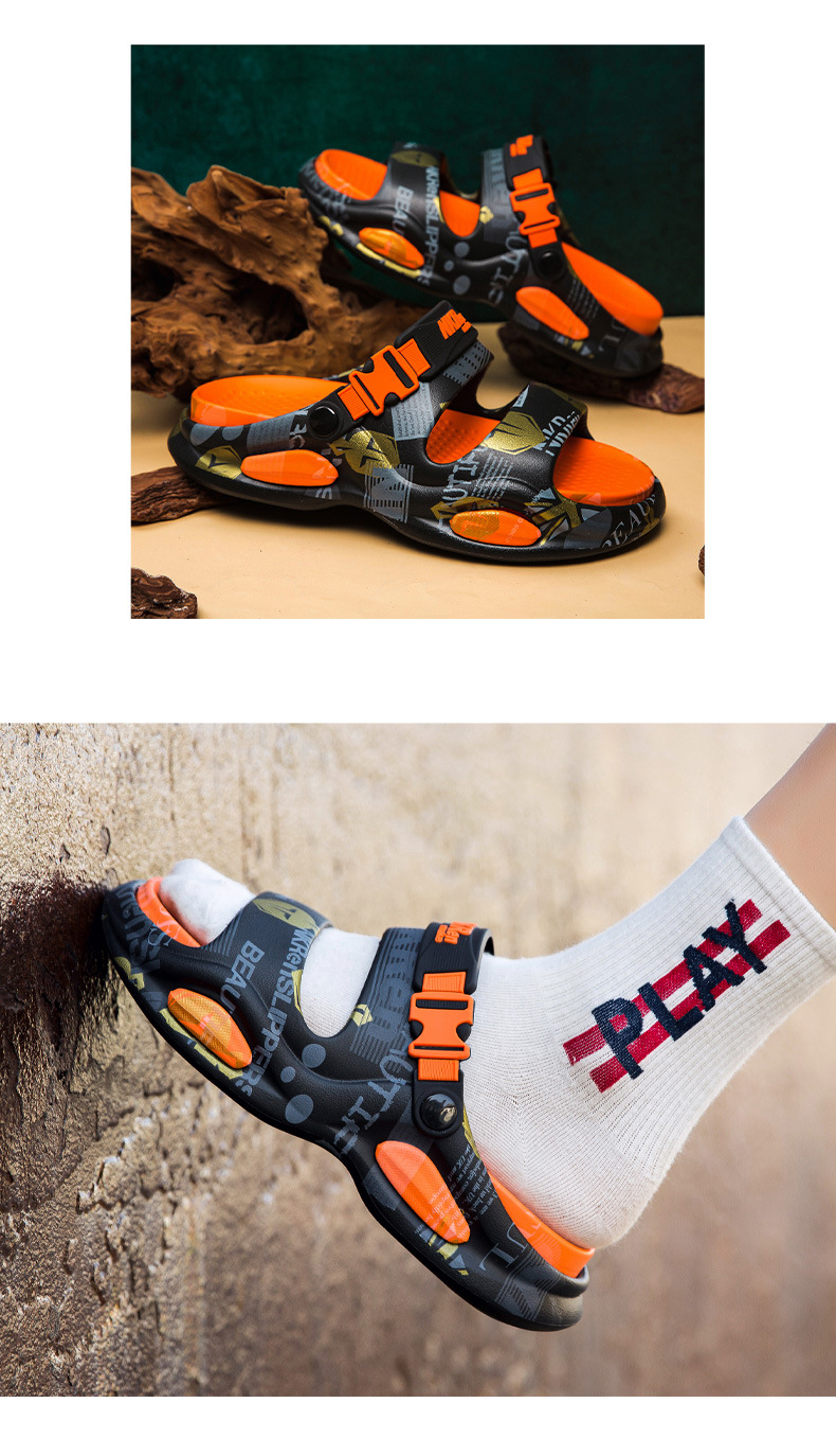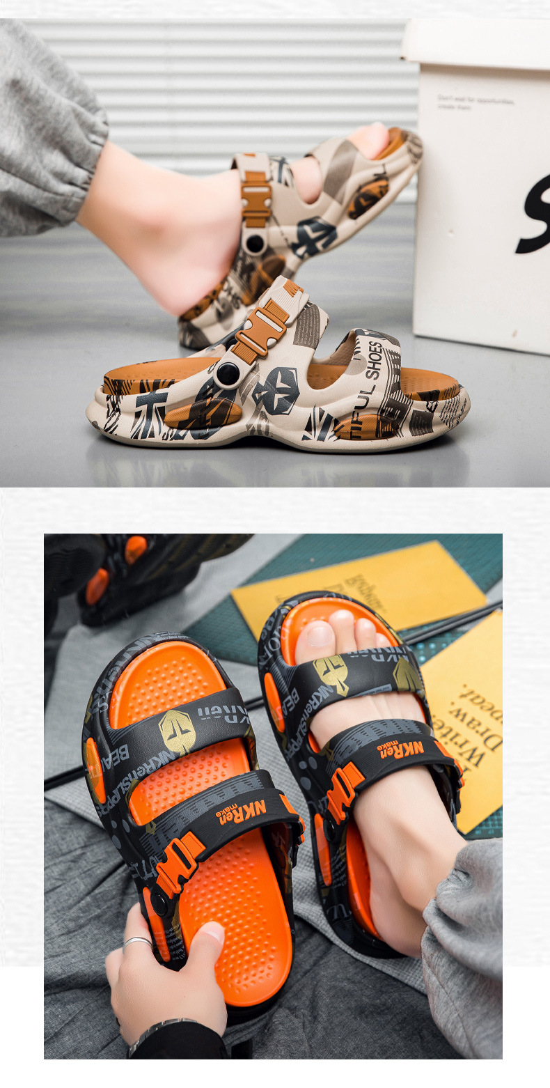 Sandalias de playa para hombres que usan en verano para conducir sandalias de suela gruesa de doble uso para jóvenes deportes de ocio pisando heces sandalias y zapatillas