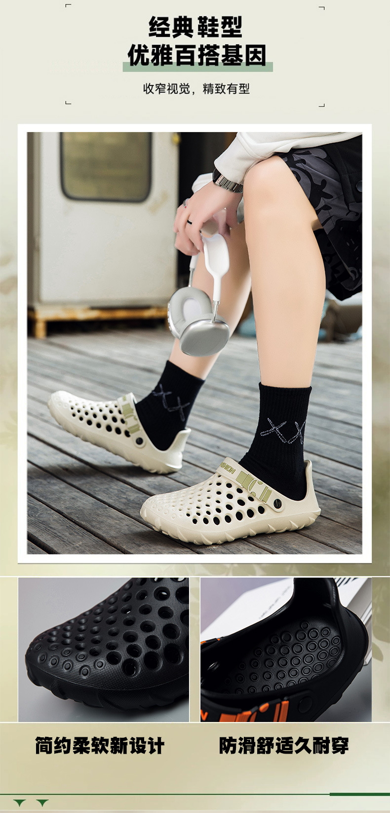 2025 verano transfronterizo nuevos zapatos con agujeros sandalias de playa para hombres Baotou hueca suela suave sandalias y zapatillas de exterior de gran tamaño