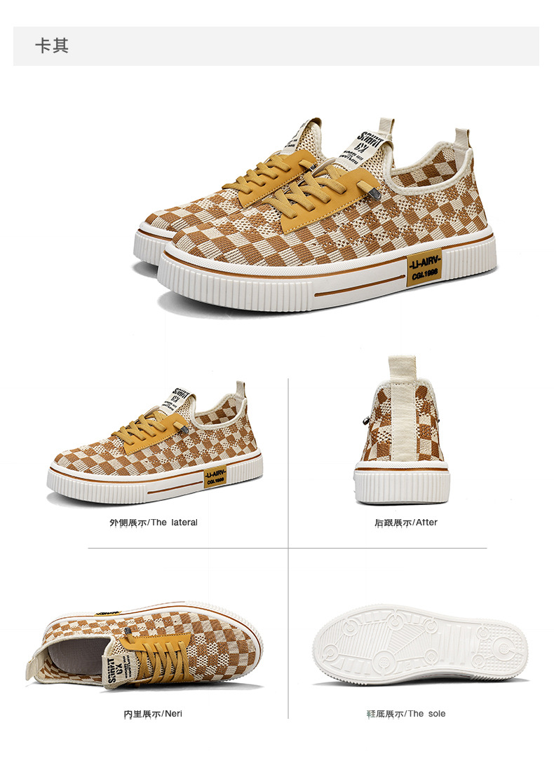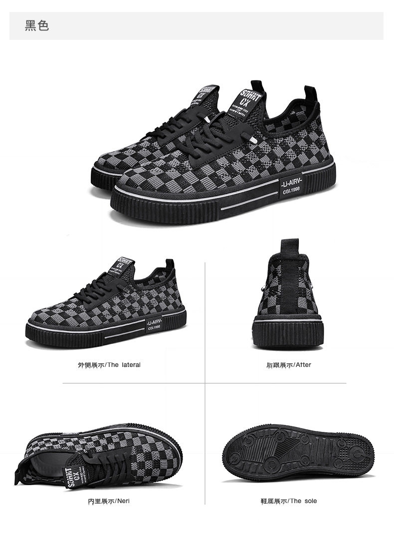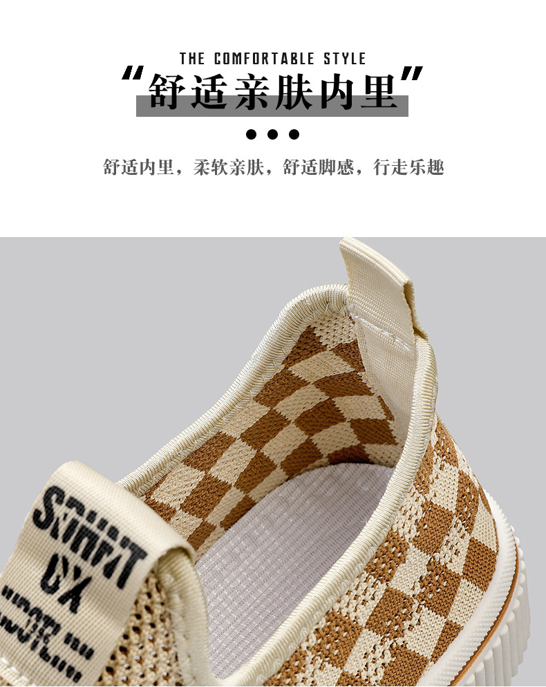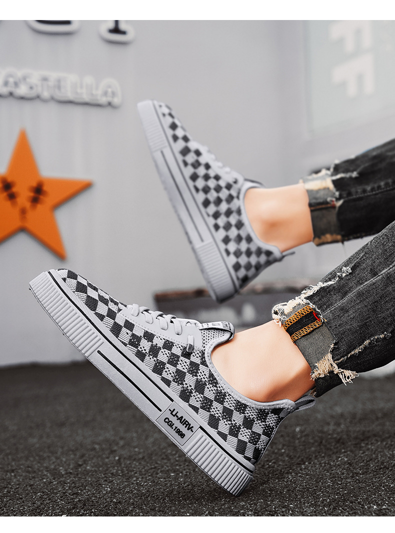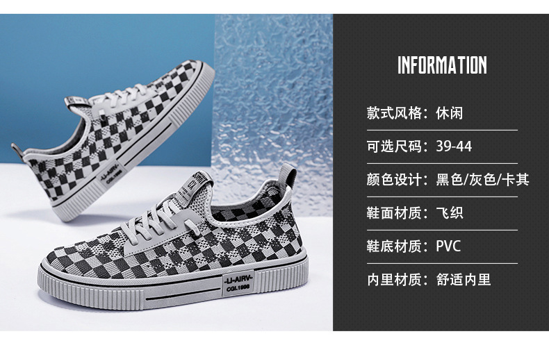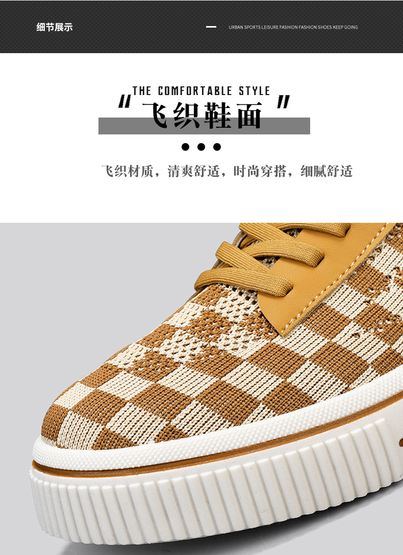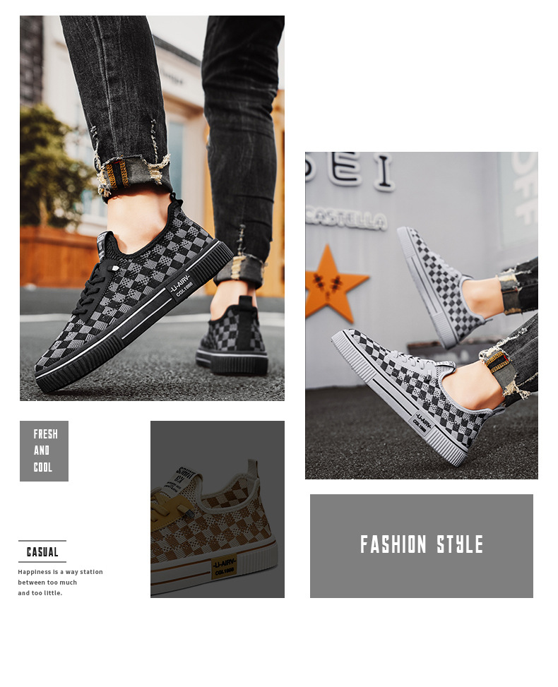 Zapatillas transpirables tejidas voladoras deportivas de verano de diseño, ligeras, de ojos grandes, zapatos de música en vivo para hombre a cuadros al aire libre