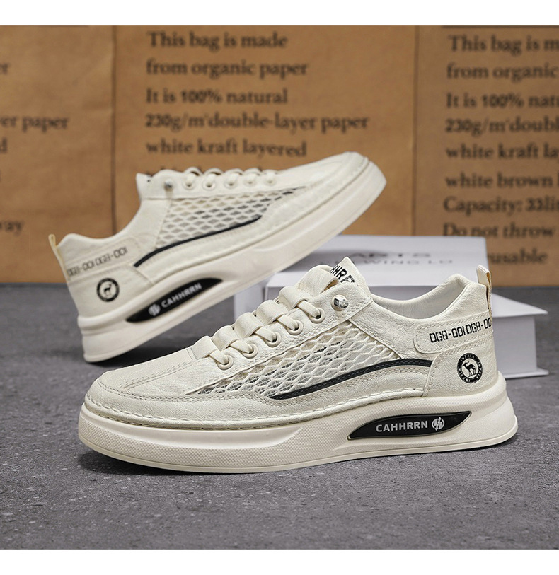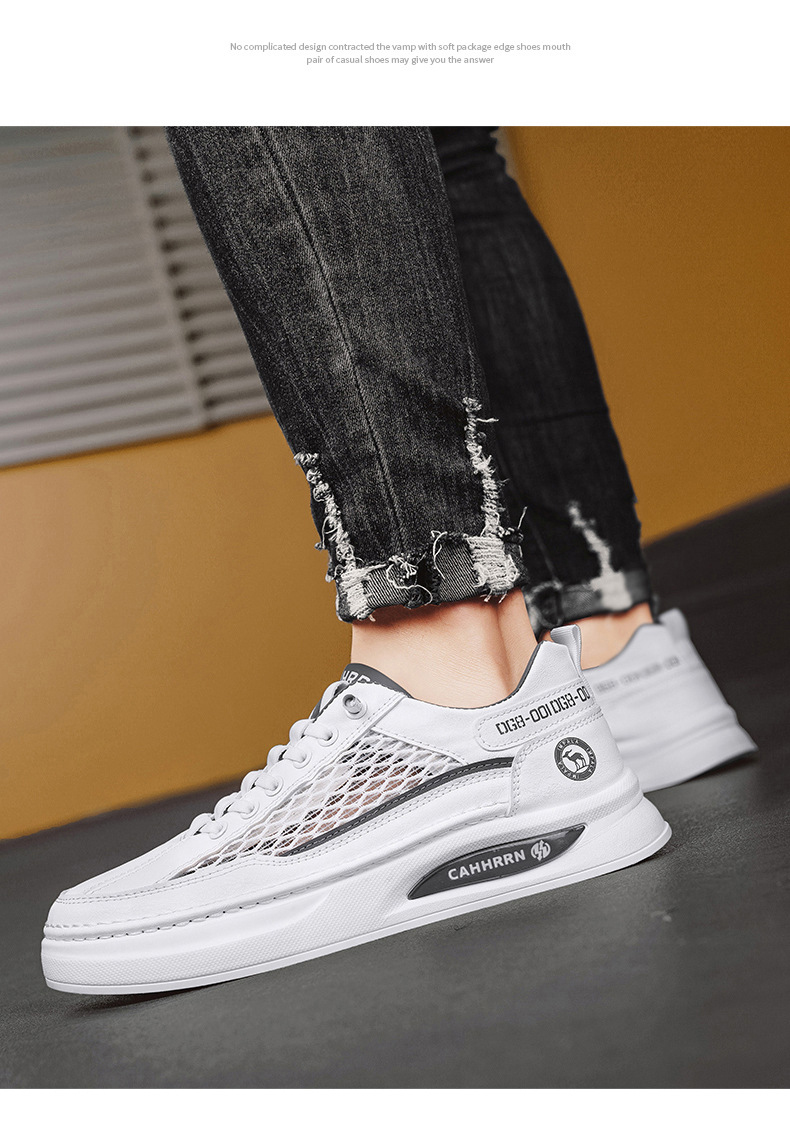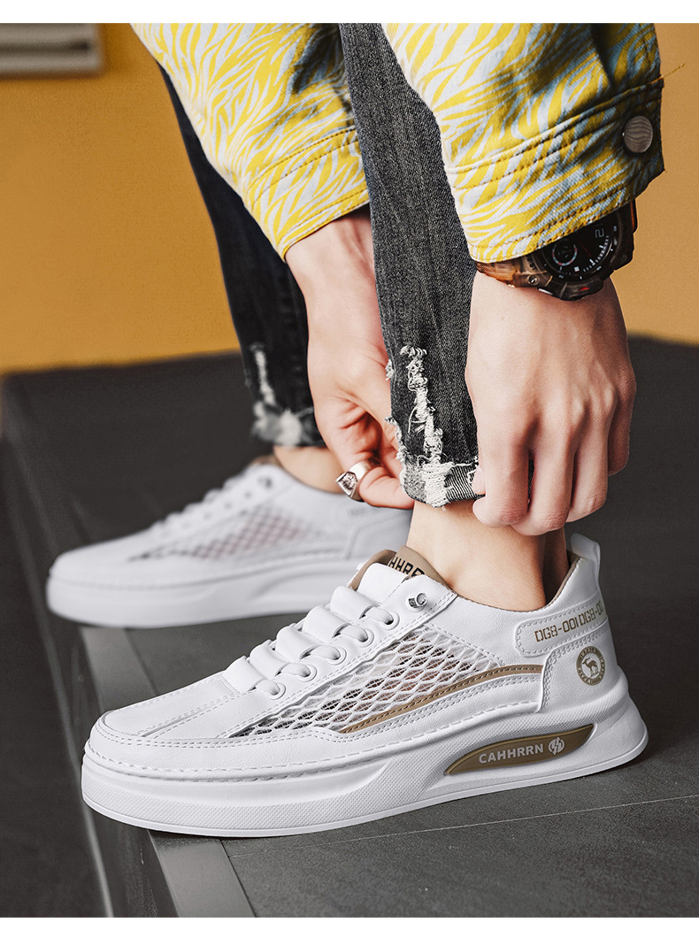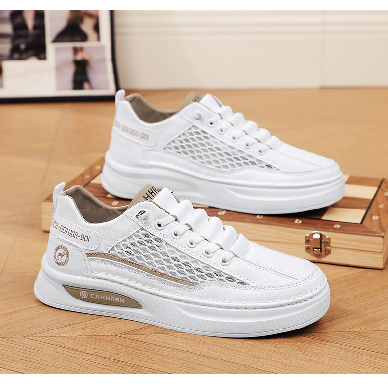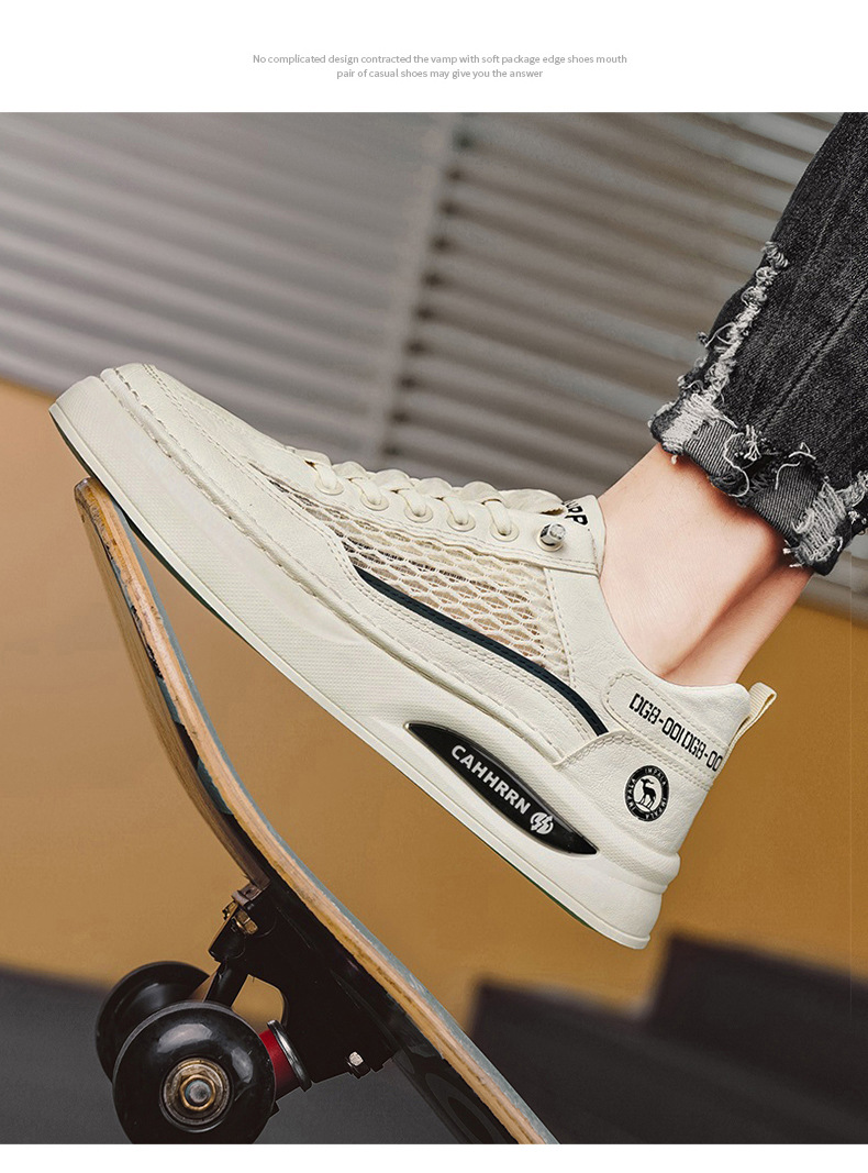 Zapatos de hombre de primavera y verano, zapatos de tablero de tela de malla transpirable, zapatos blancos para jóvenes estudiantes, zapatos deportivos de ocio para hombres, nuevo estilo 2025