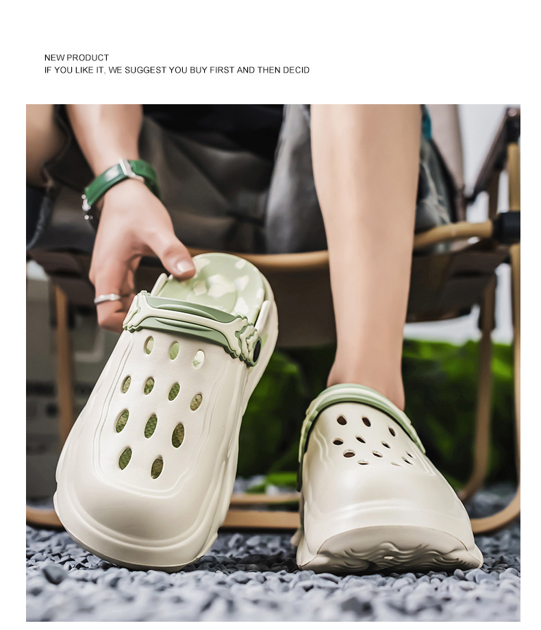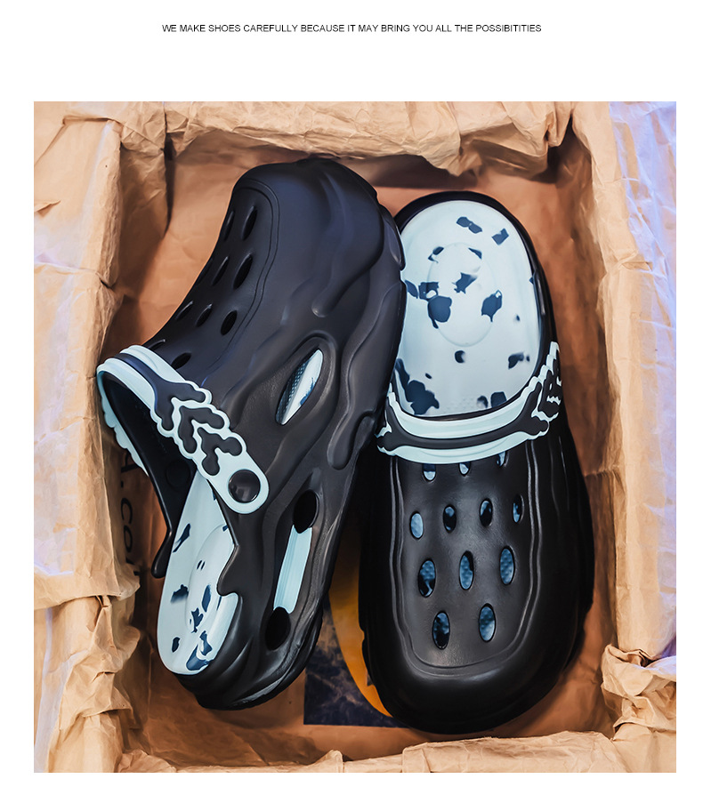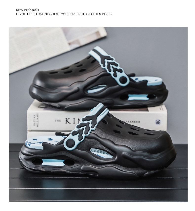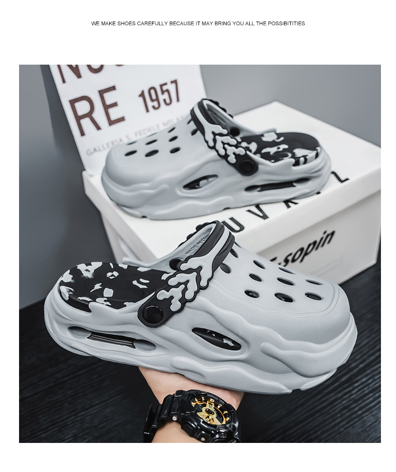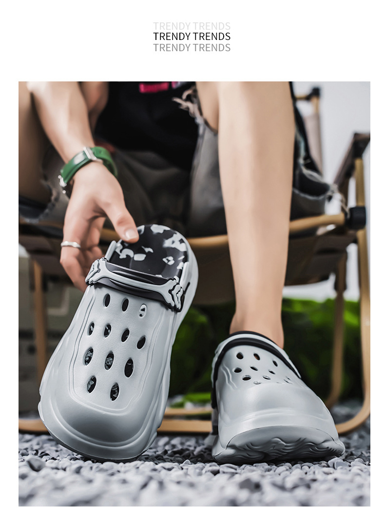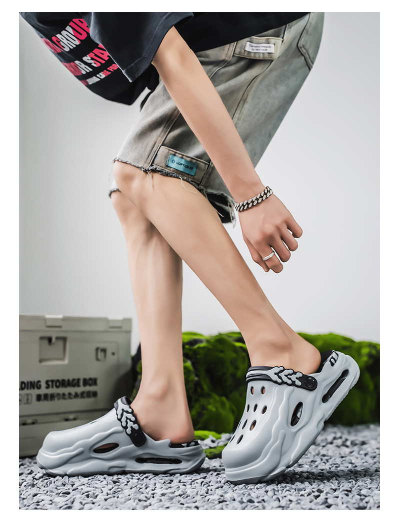 Zapatos con agujeros para hombres y mujeres, suela gruesa antideslizante, zapatillas de dos desgaste Baotou, sandalias calientes de celebridades de Internet Douyin de verano para hombres