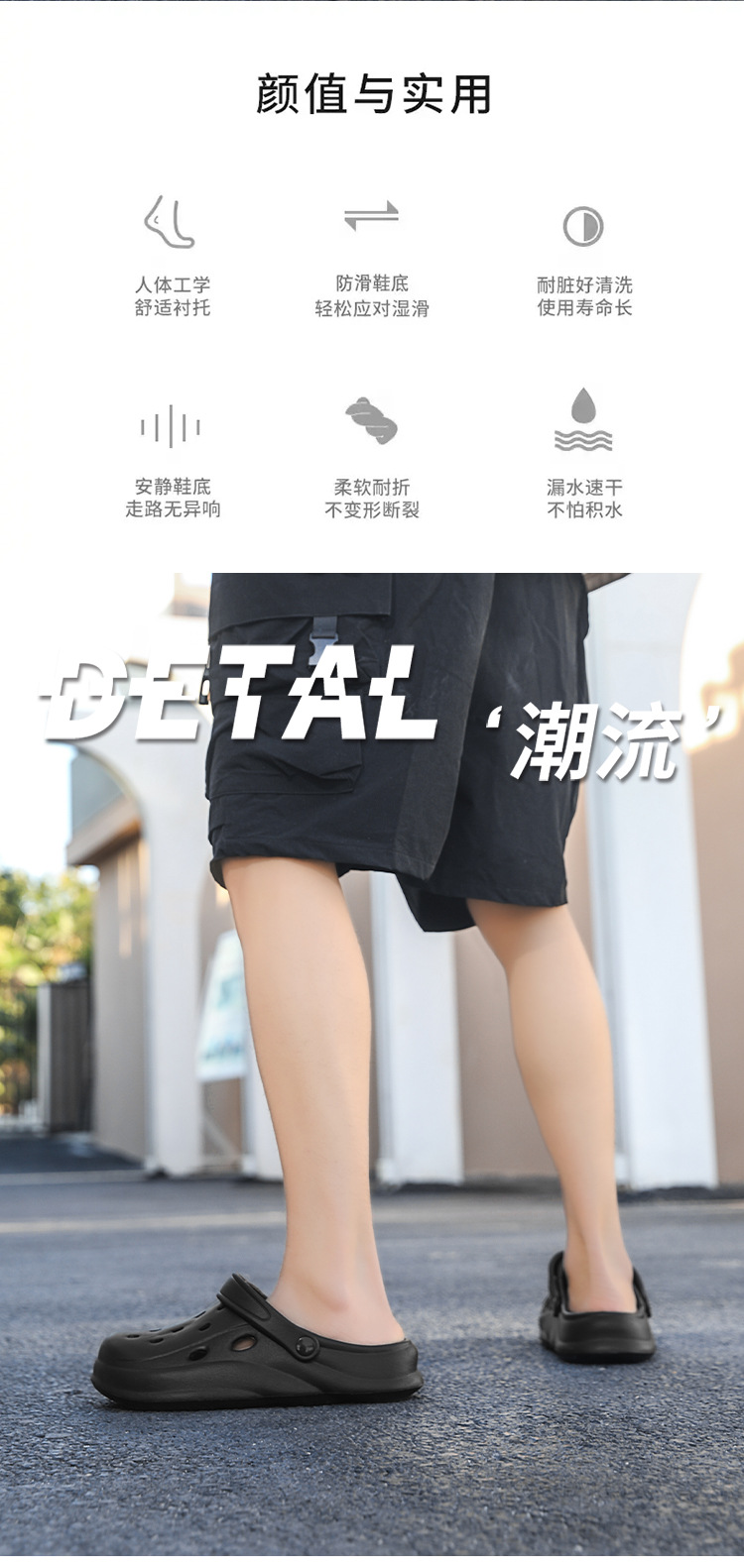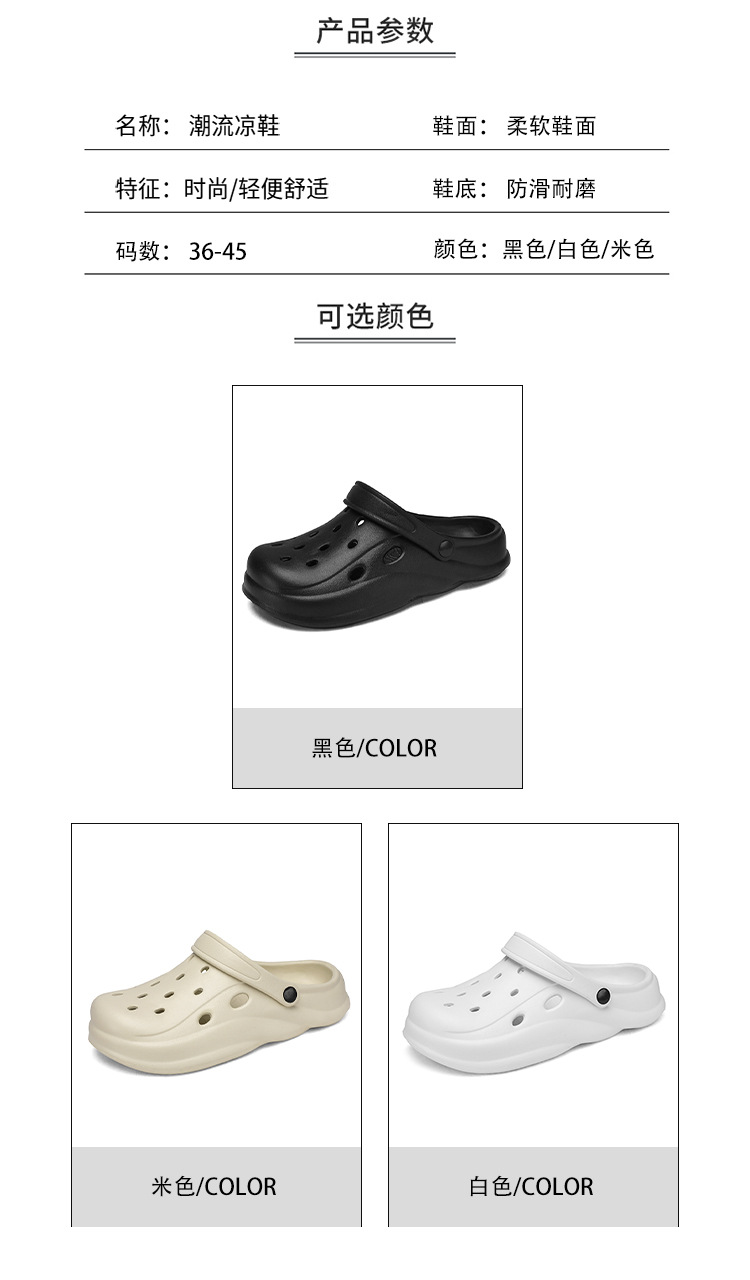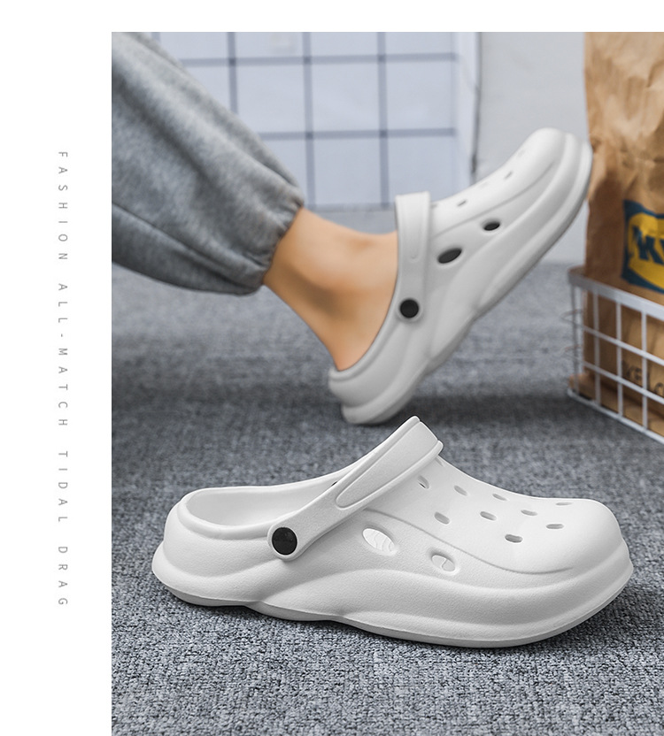 Zapatos con agujeros para hombres en verano, pantuflas semi-Baotou, zapatos de jardín para mujeres, sandalias y pantuflas de plataforma, zapatos de playa antideslizantes para parejas