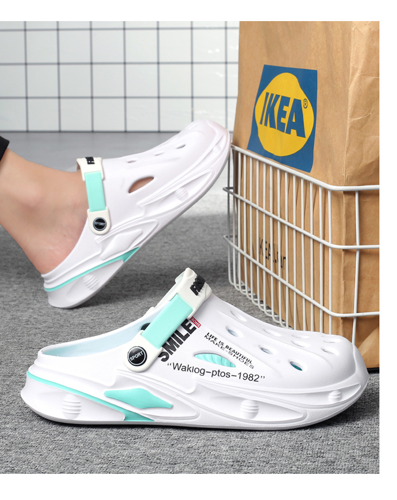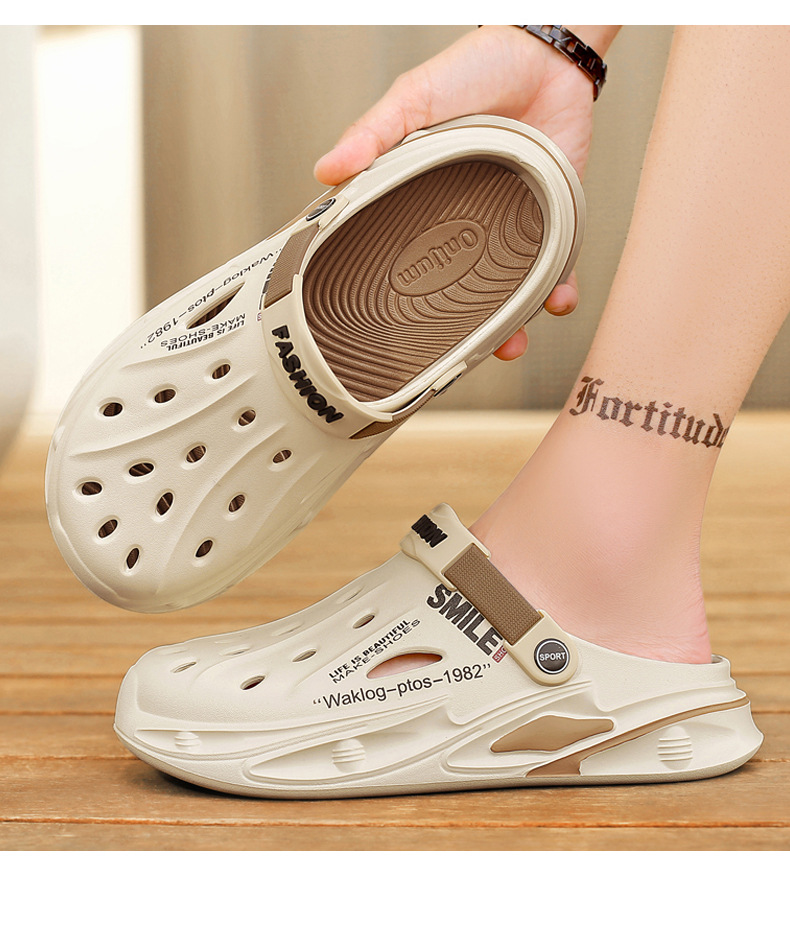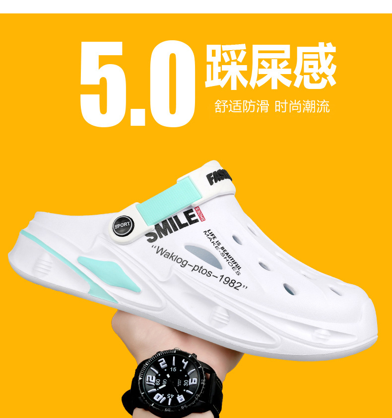 Zapatos con agujeros para hombres, uso exterior de verano, red antideslizante, zapatillas de Baotou rojas, ejercicio, pisando mierda, conduciendo sandalias de playa de doble uso