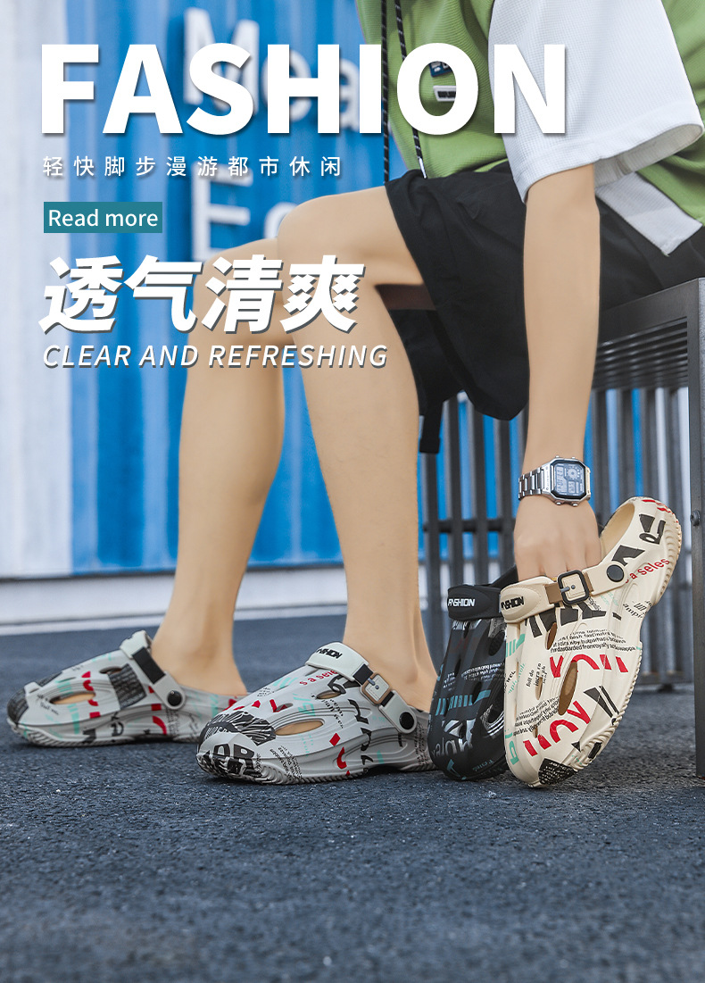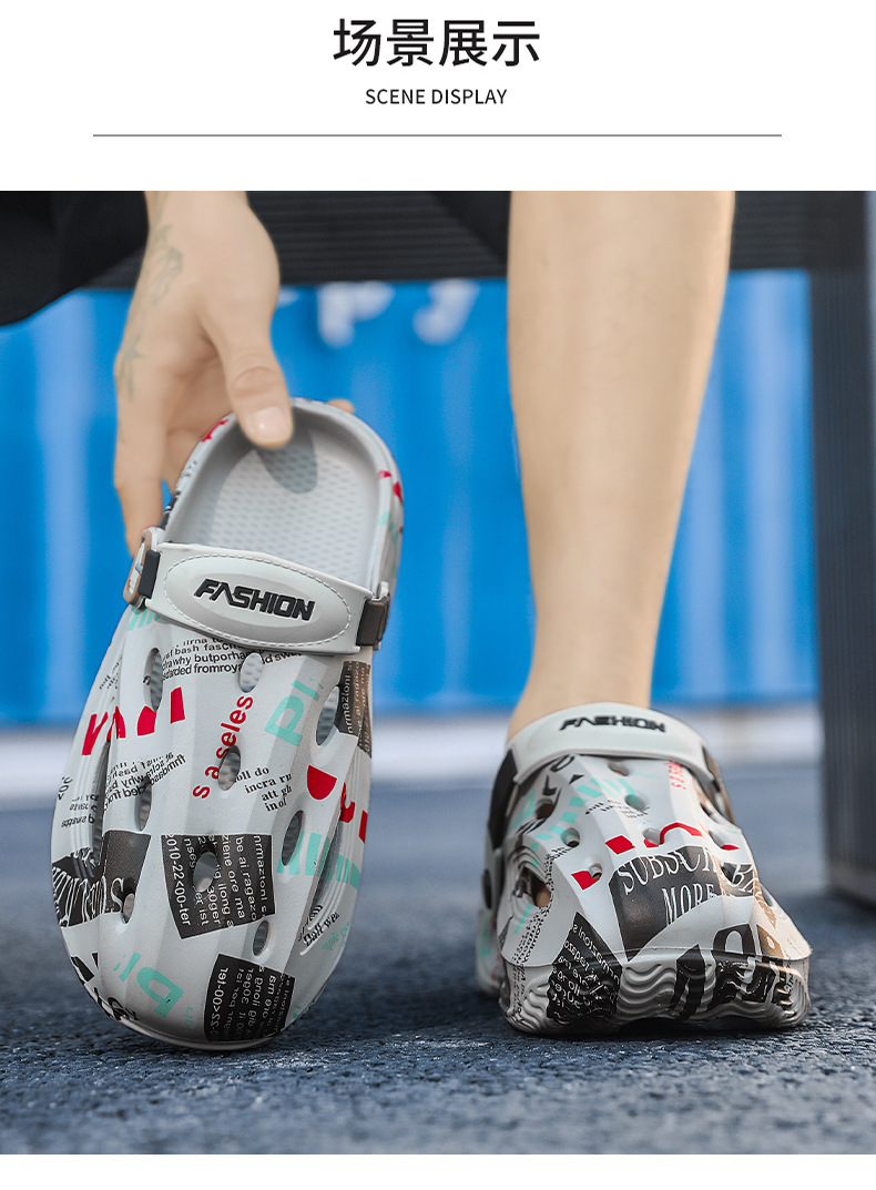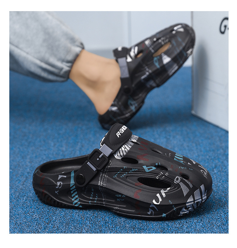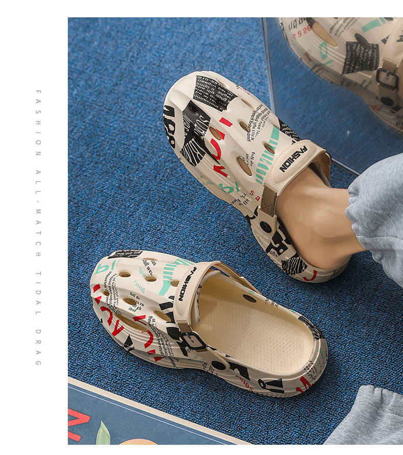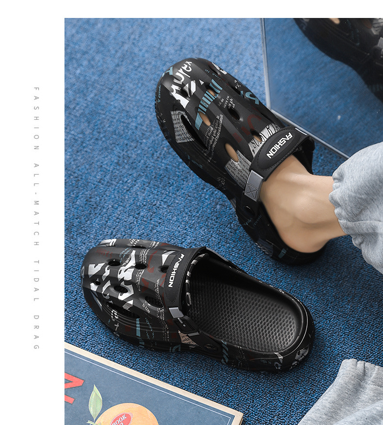 Zapatos con agujeros para hombres en verano, medias pantuflas, pisando mierda, sandalias Baotou de doble uso, sandalias deportivas antideslizantes y desodorantes, sandalias de playa deportivas