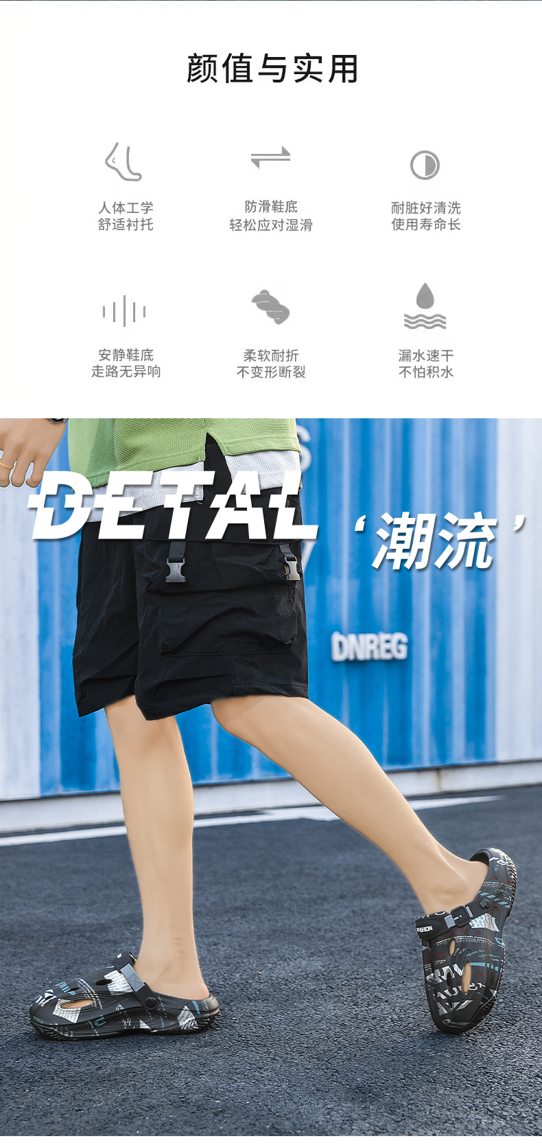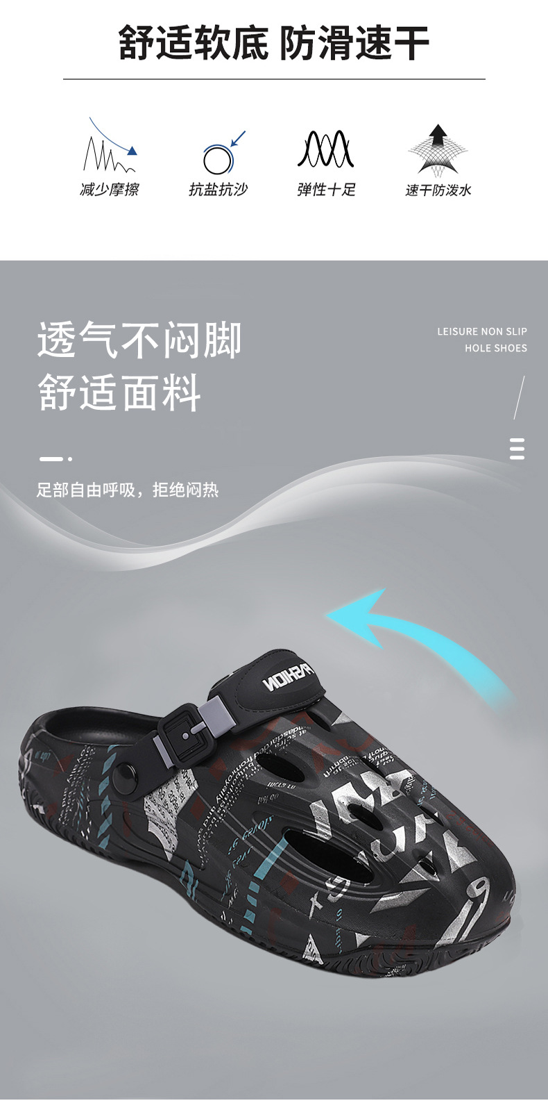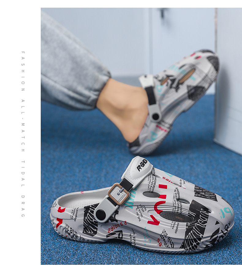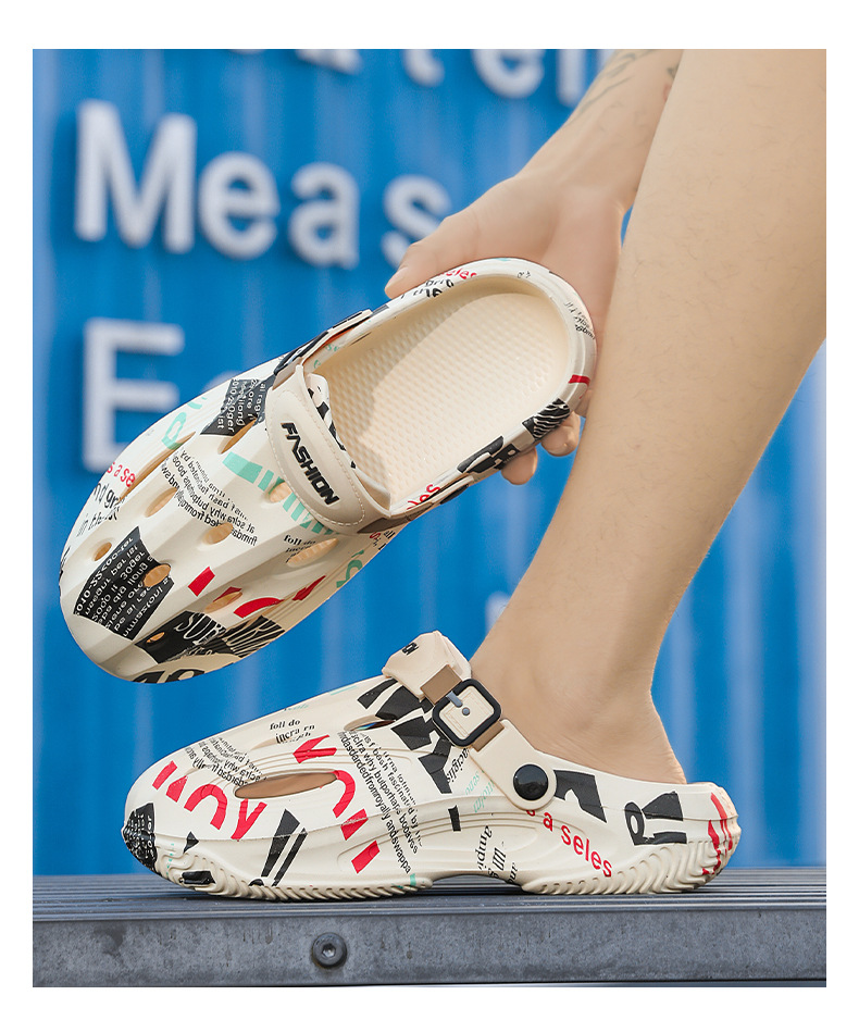 Zapatos con agujeros para hombres en verano, medias pantuflas, pisando mierda, sandalias Baotou de doble uso, sandalias deportivas antideslizantes y desodorantes, sandalias de playa deportivas