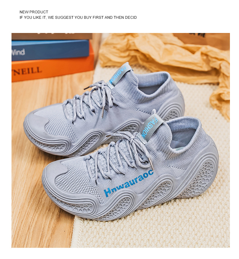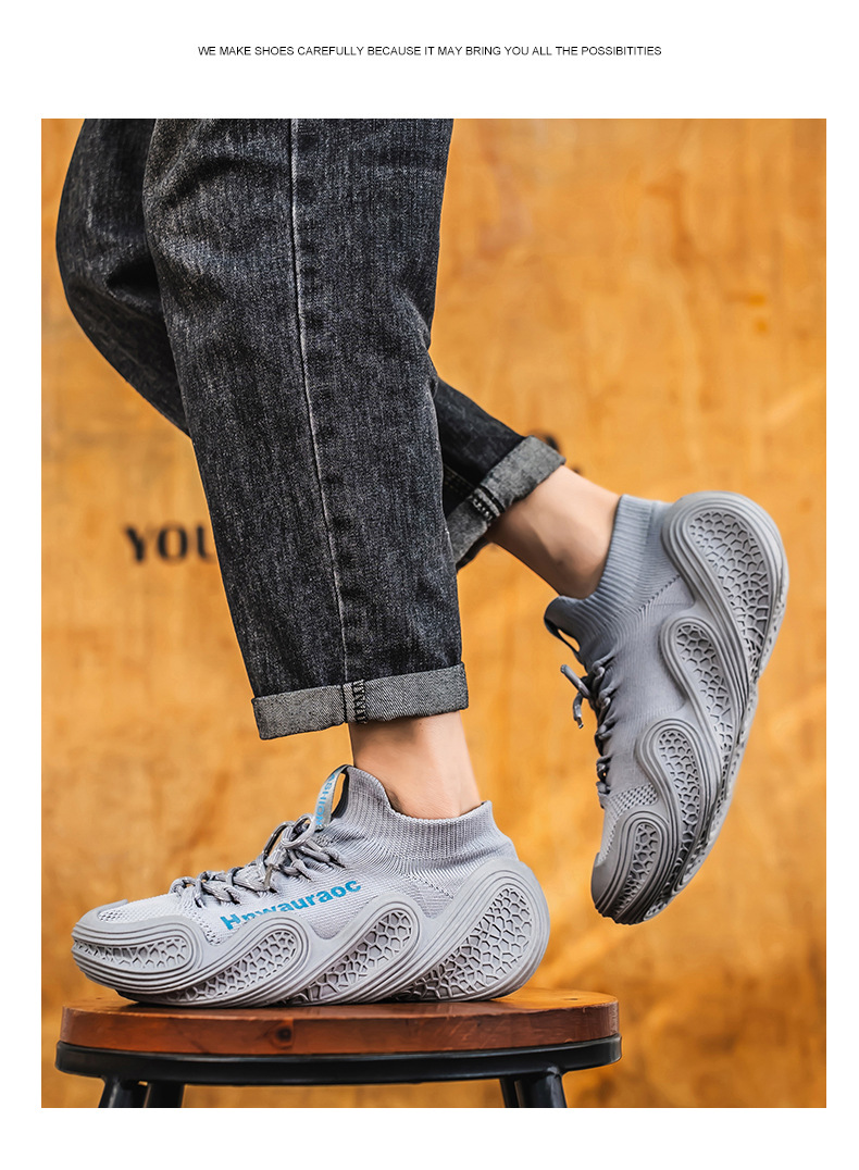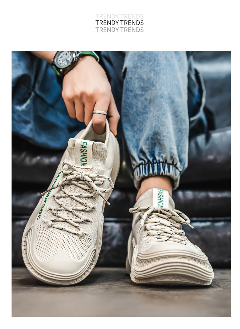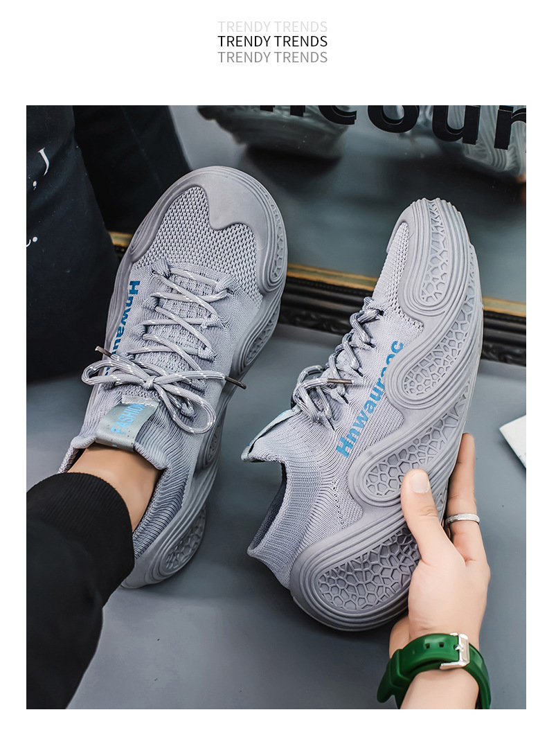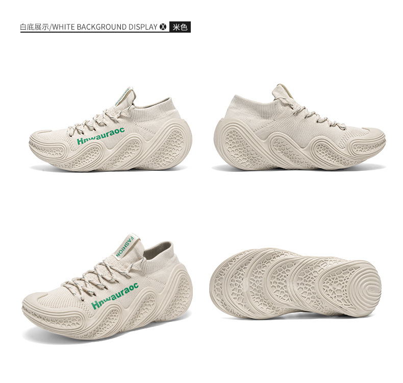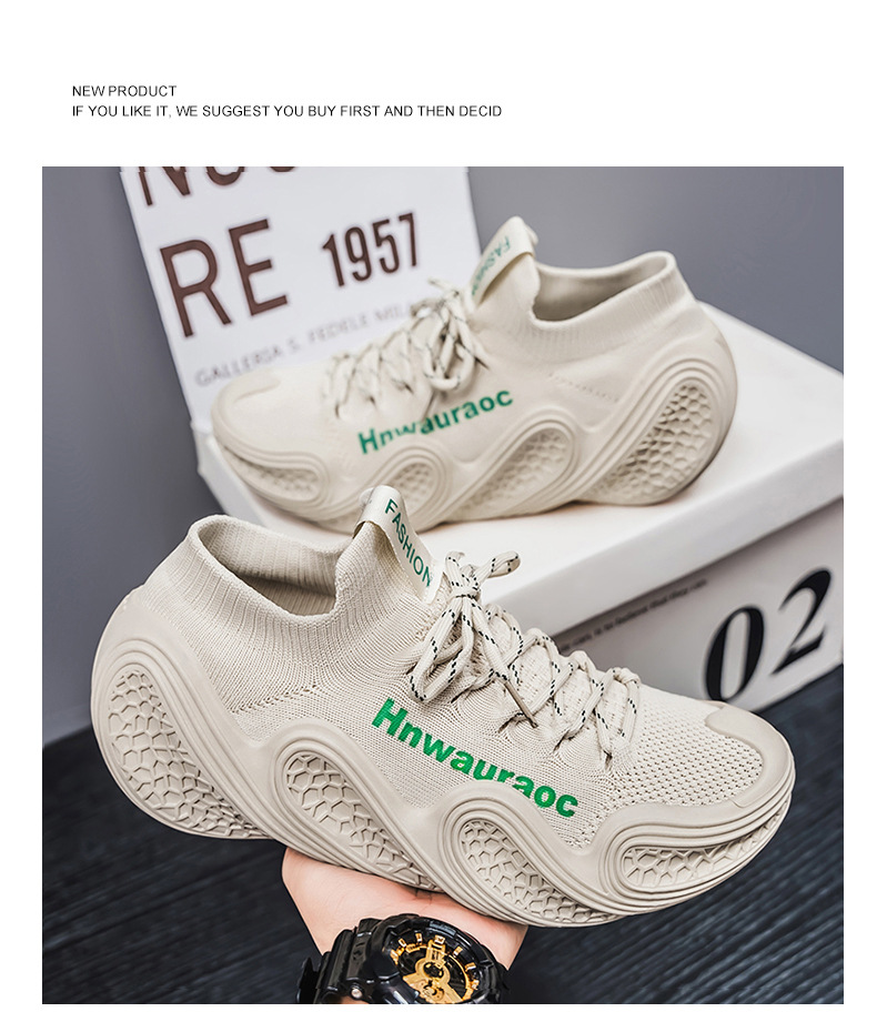 Verano nuevo estilo transpirable antideslizante zapatos de tejido volador calcetines cómodos zapatos deportivos transpirables simples de suela gruesa de corte bajo todo fósforo para hombres