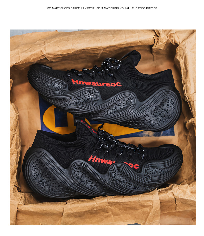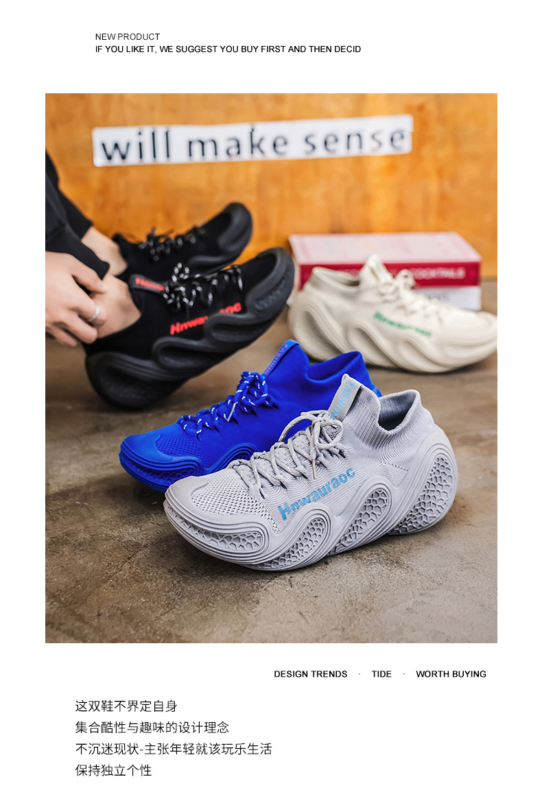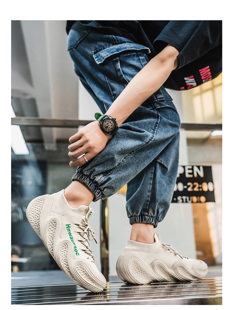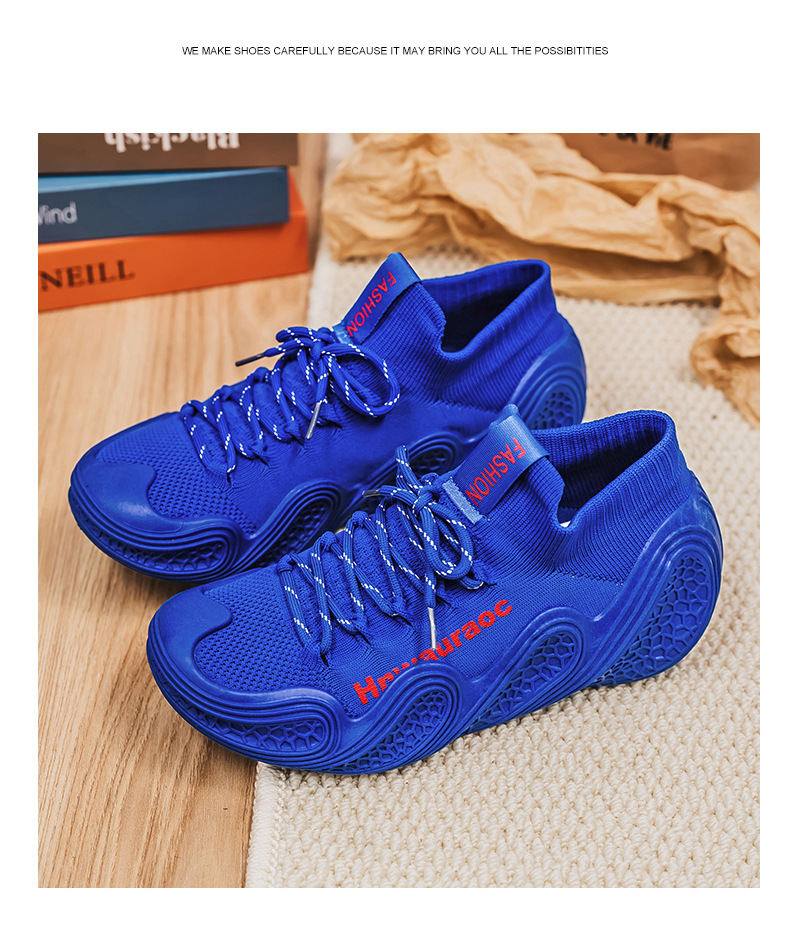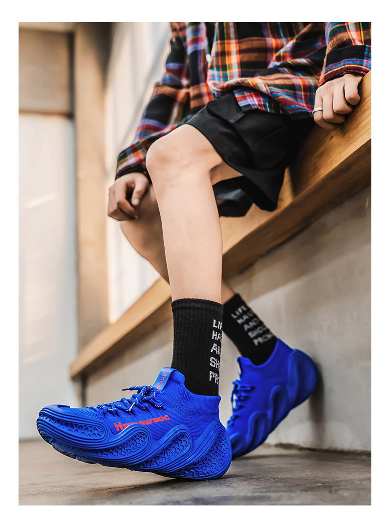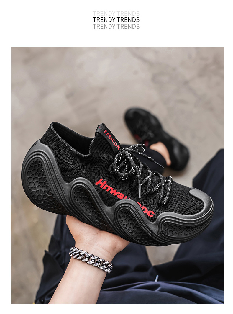 Verano nuevo estilo transpirable antideslizante zapatos de tejido volador calcetines cómodos zapatos deportivos transpirables simples de suela gruesa de corte bajo todo fósforo para hombres