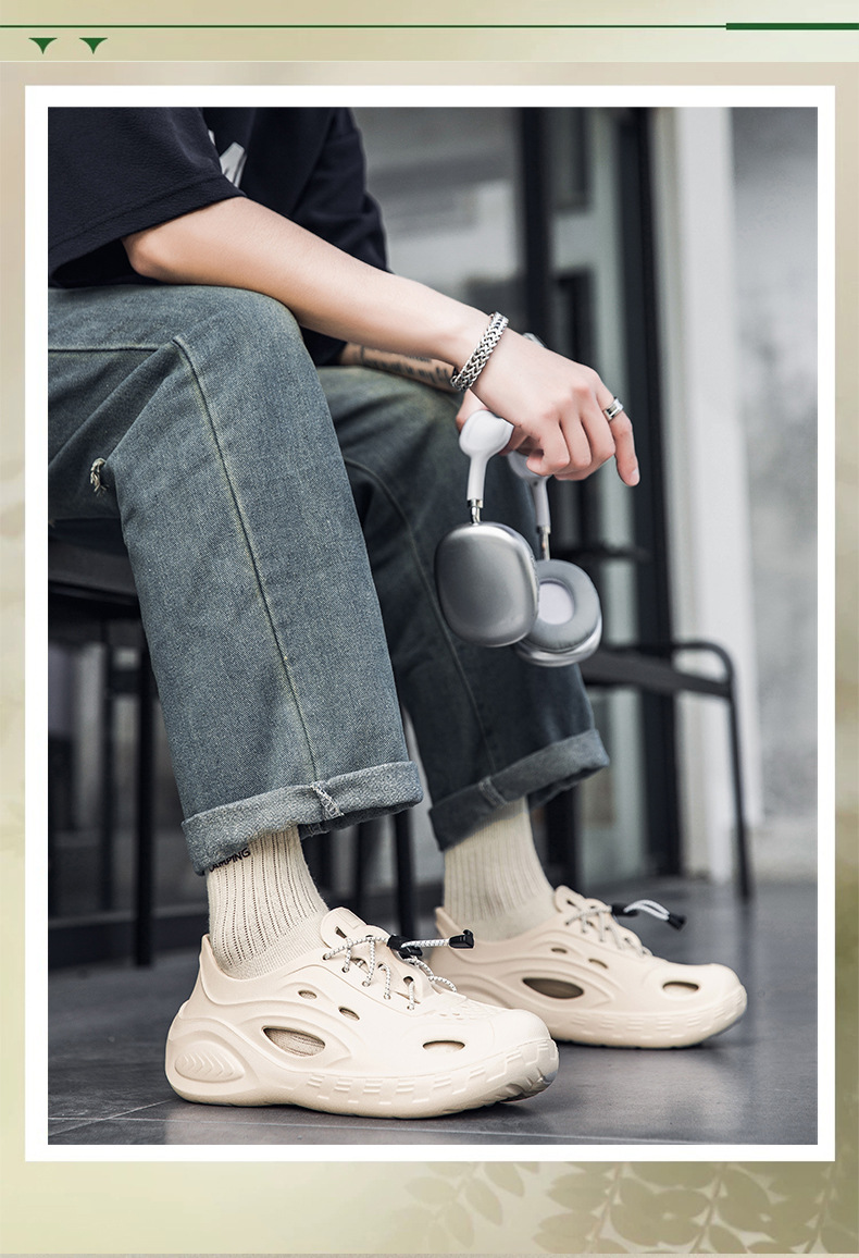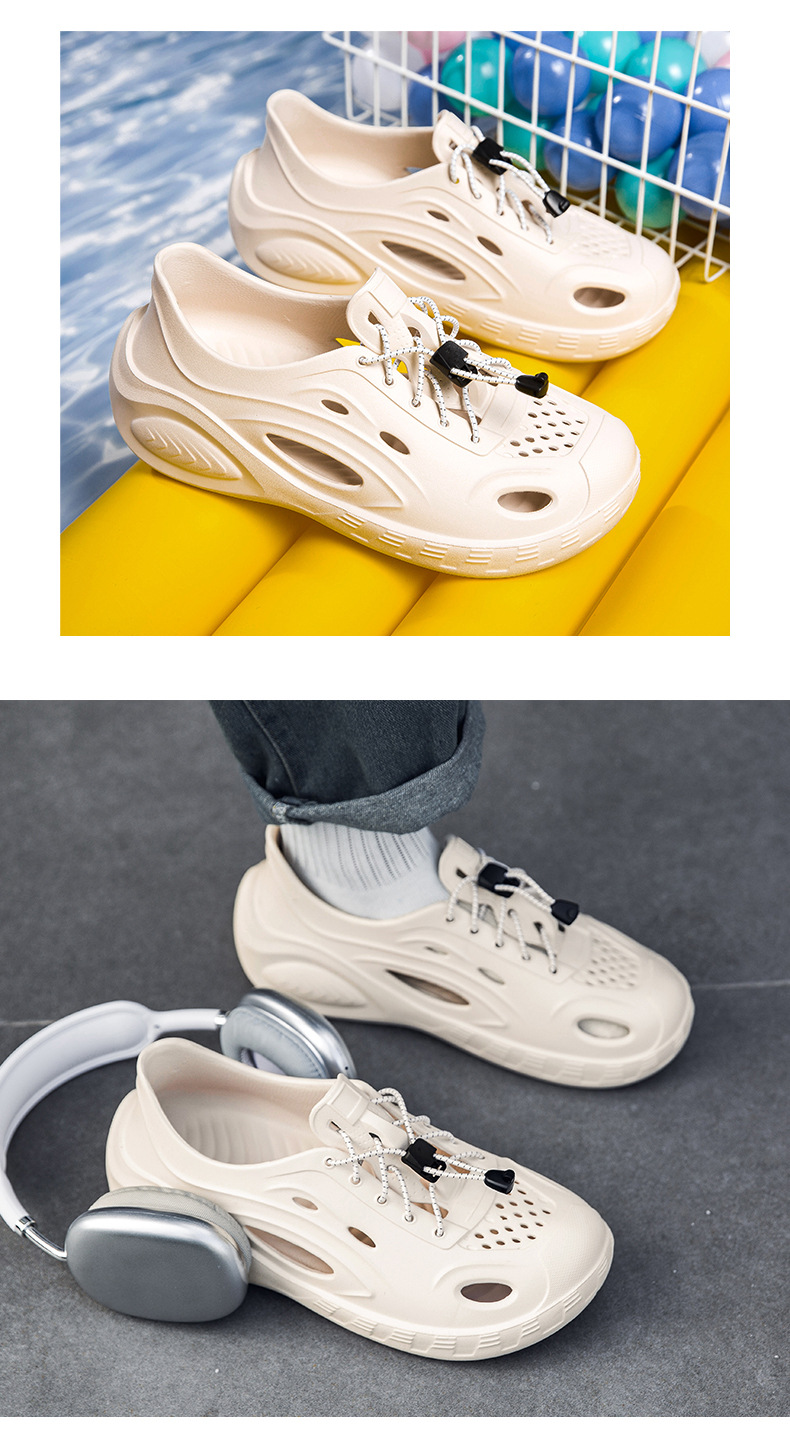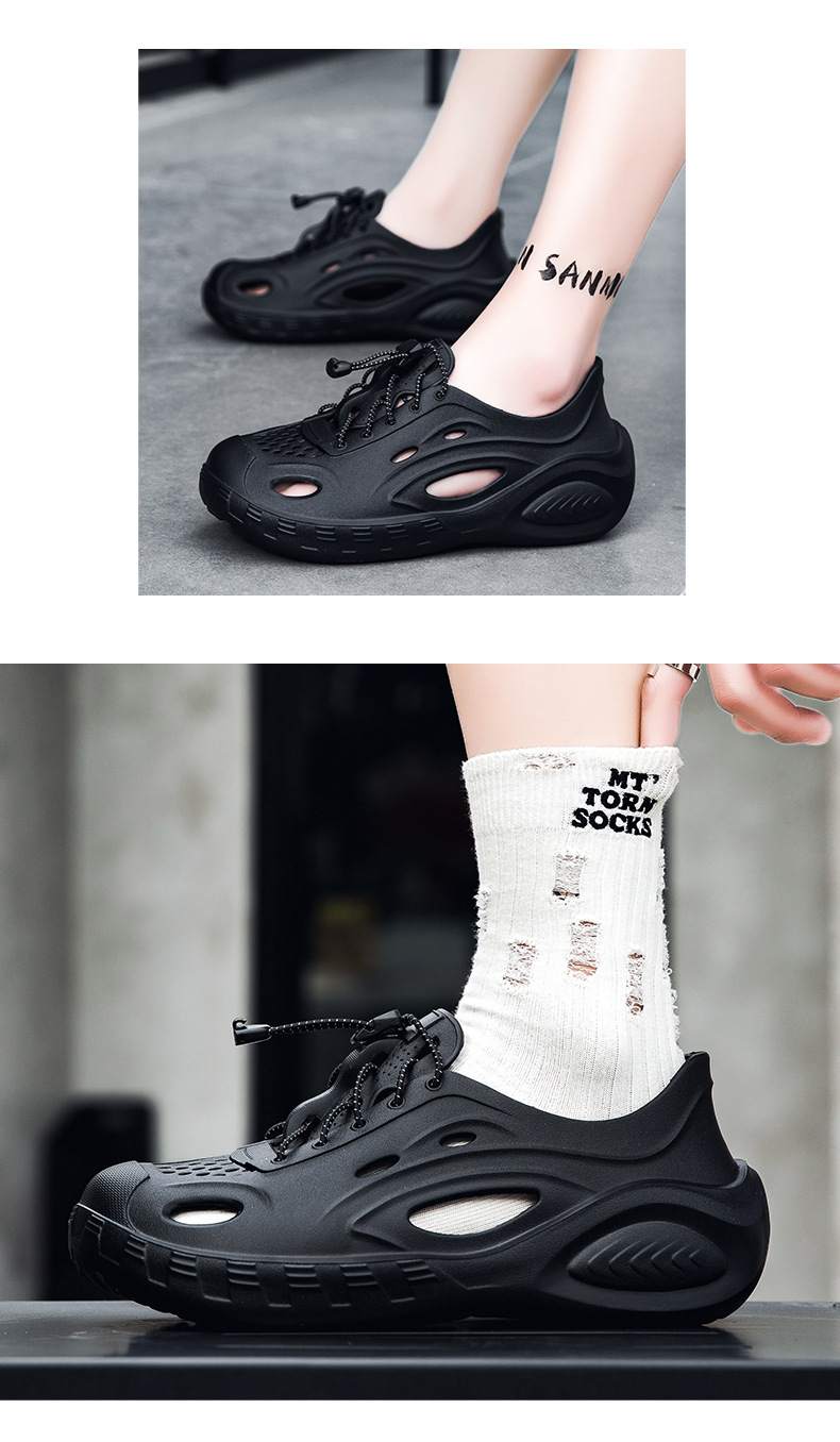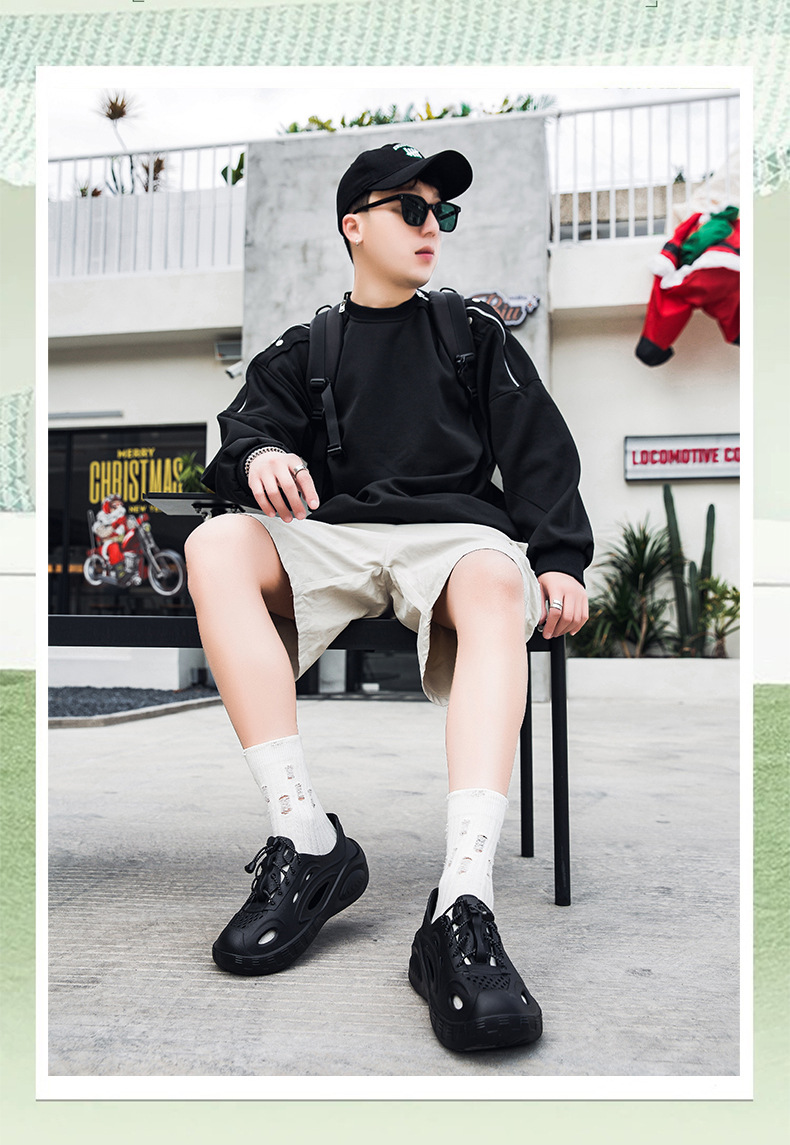 Zapatos con agujeros de color sólido para hombre, nuevas sandalias de tendencia de moda de verano, ropa exterior hueca, zapatos de tacón de suela gruesa