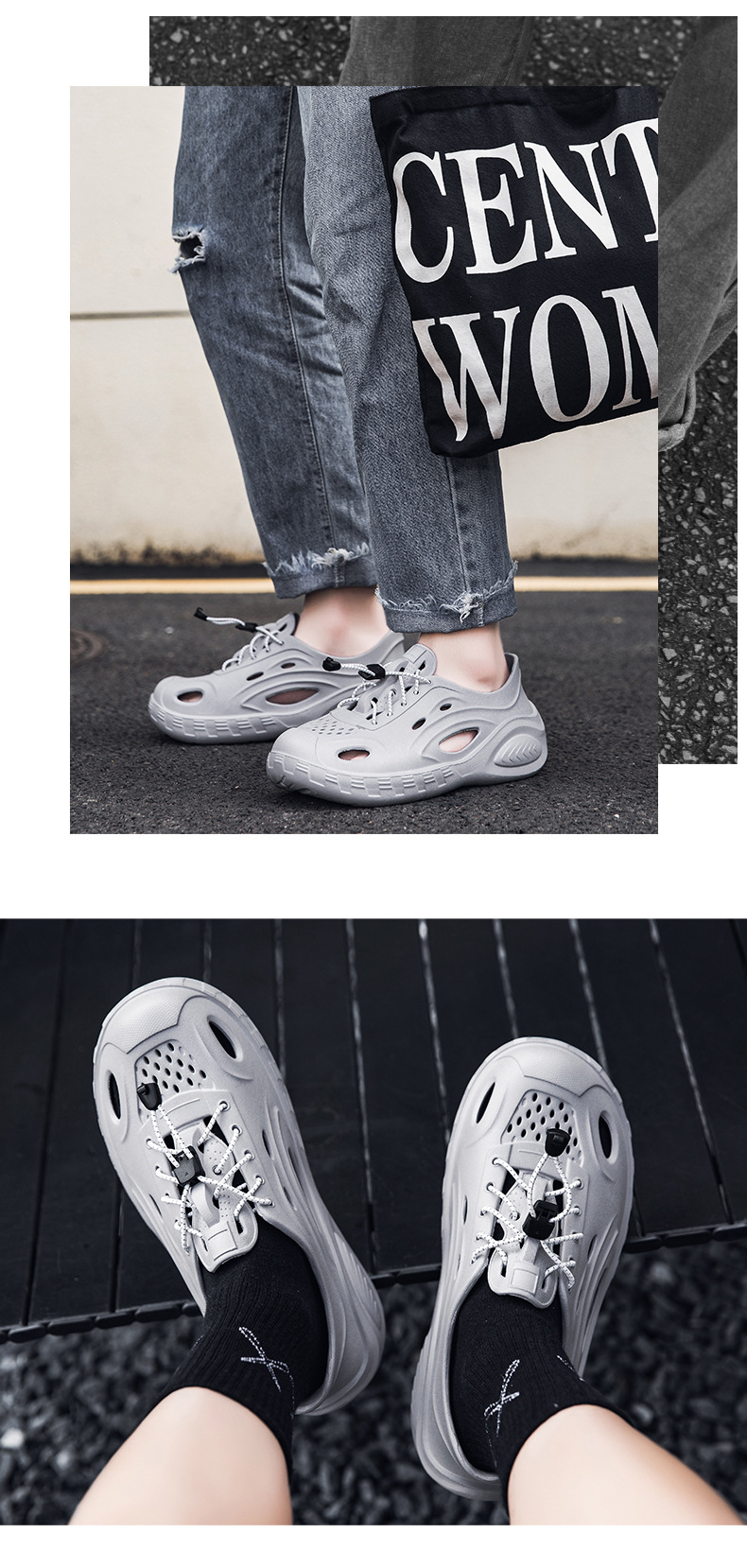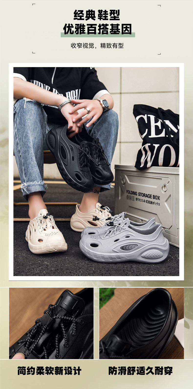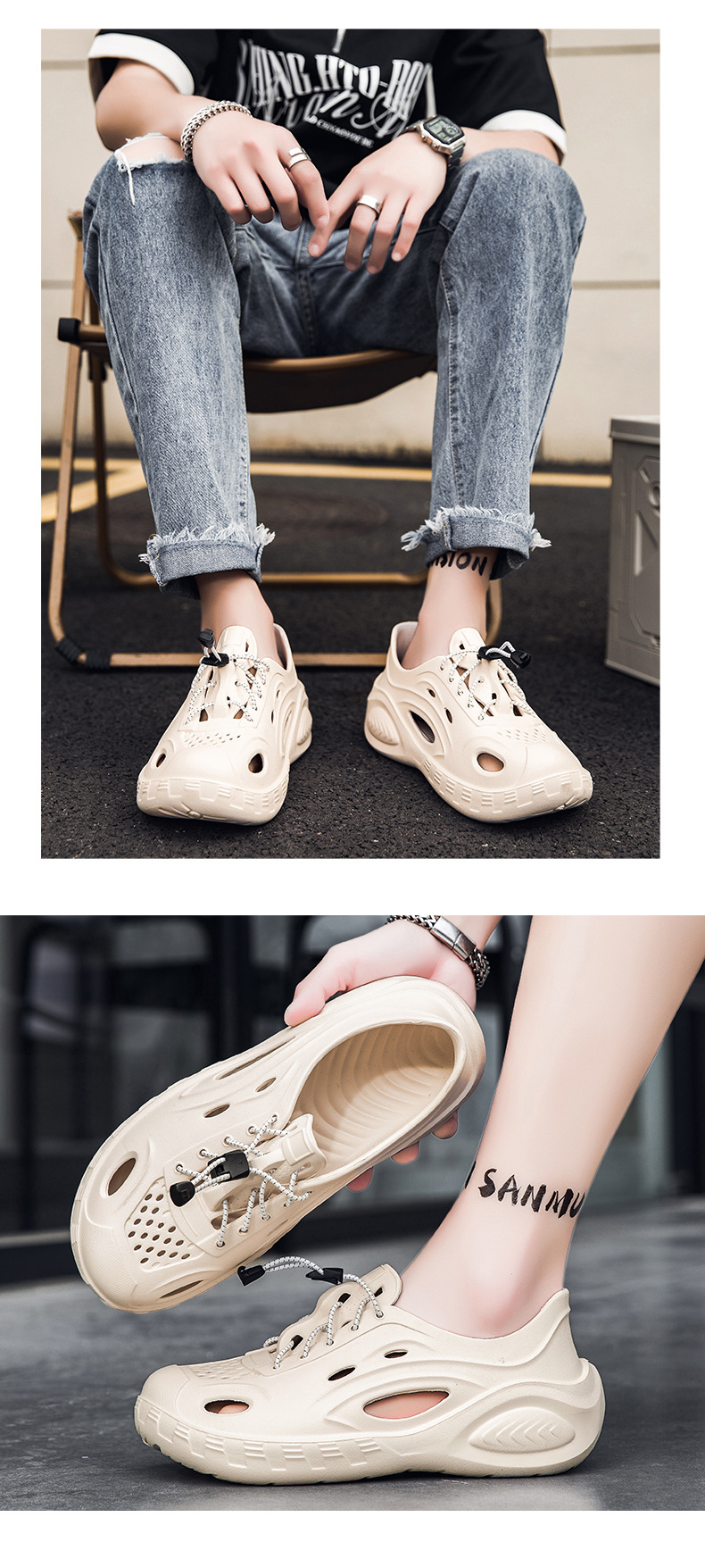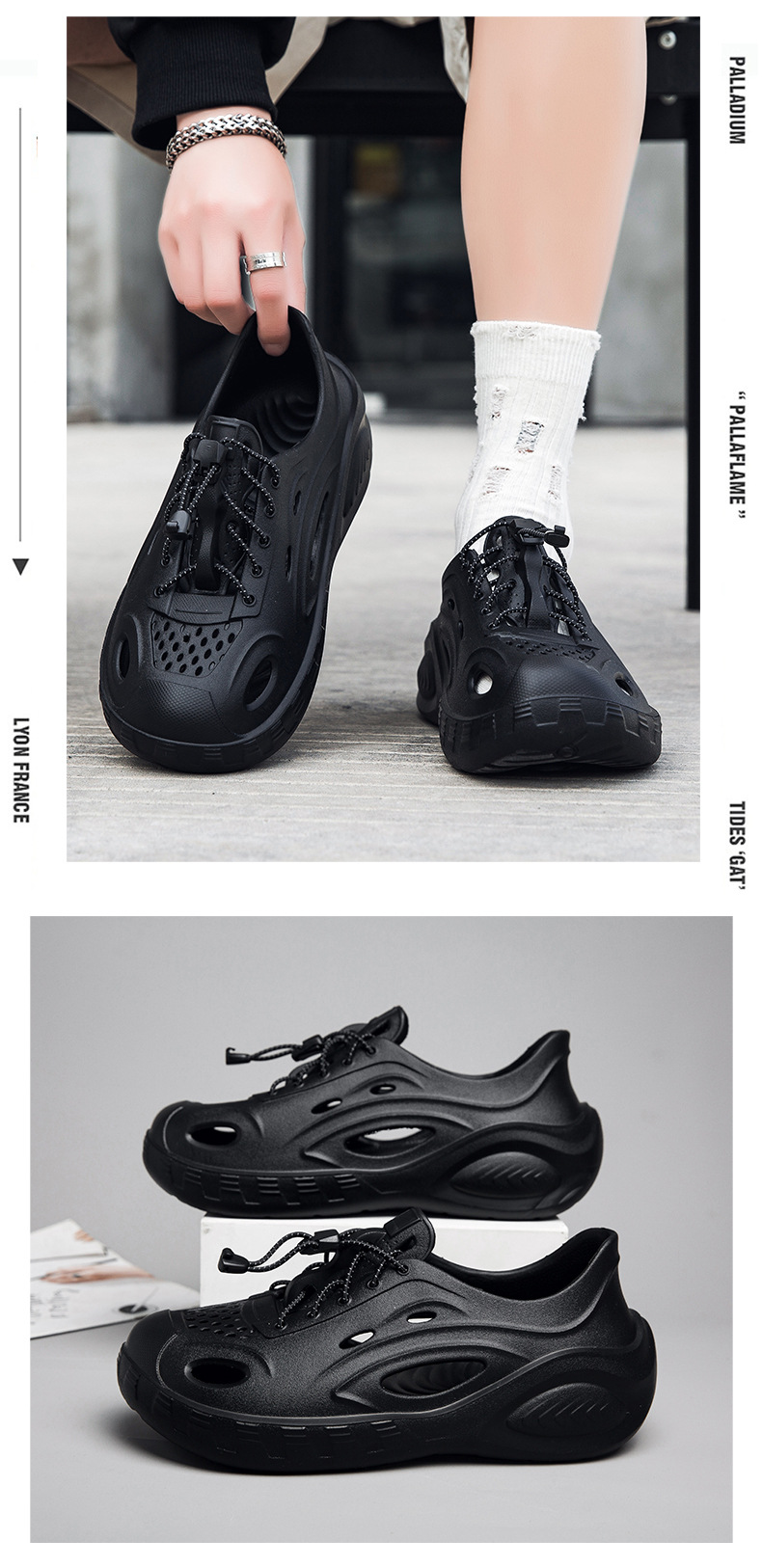 Zapatos con agujeros de color sólido para hombre, nuevas sandalias de tendencia de moda de verano, ropa exterior hueca, zapatos de tacón de suela gruesa