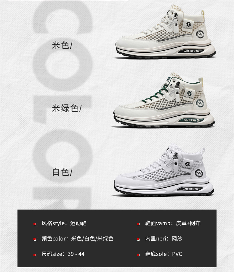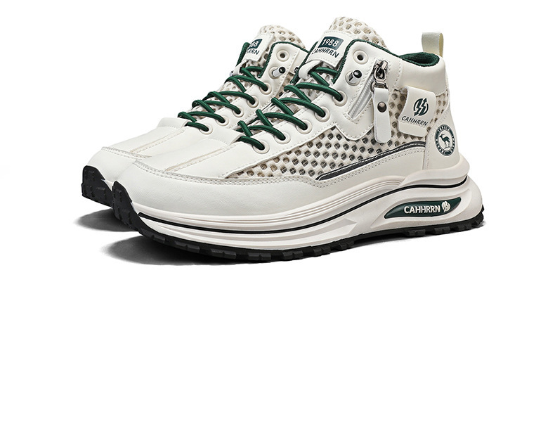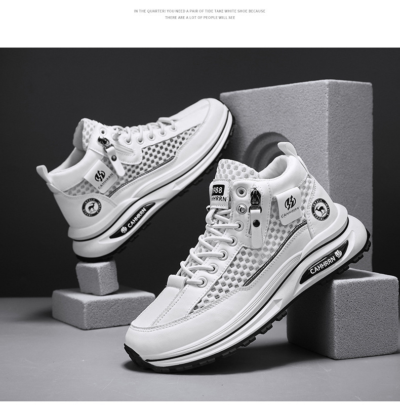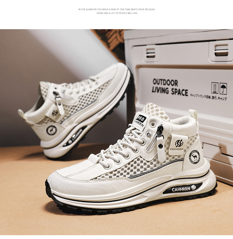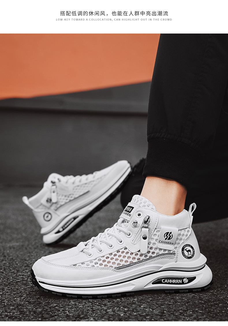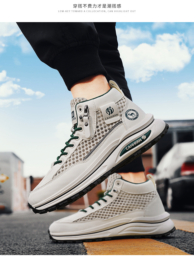 2025 nuevos zapatos deportivos de malla hueca de caña alta zapatos de hombre de verano de suela gruesa zapatos de moda casuales transpirables adolescentes
