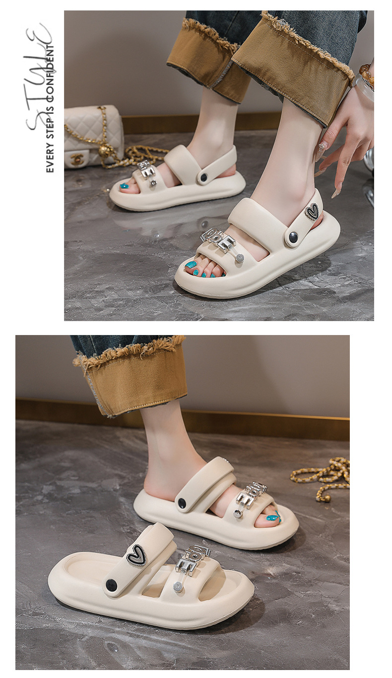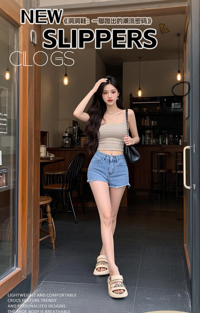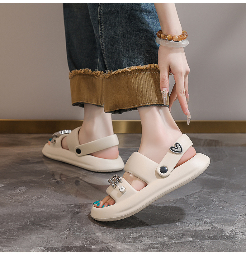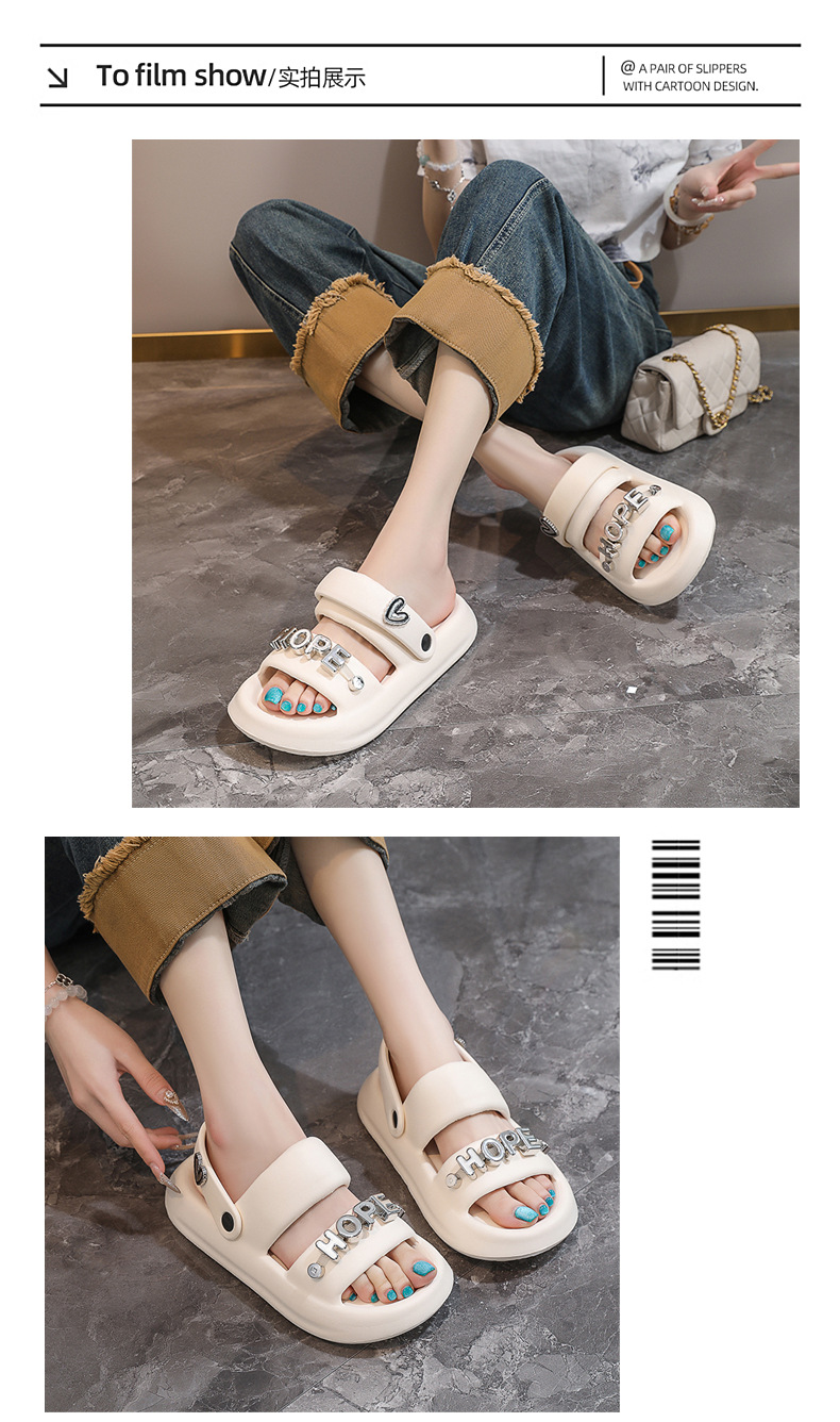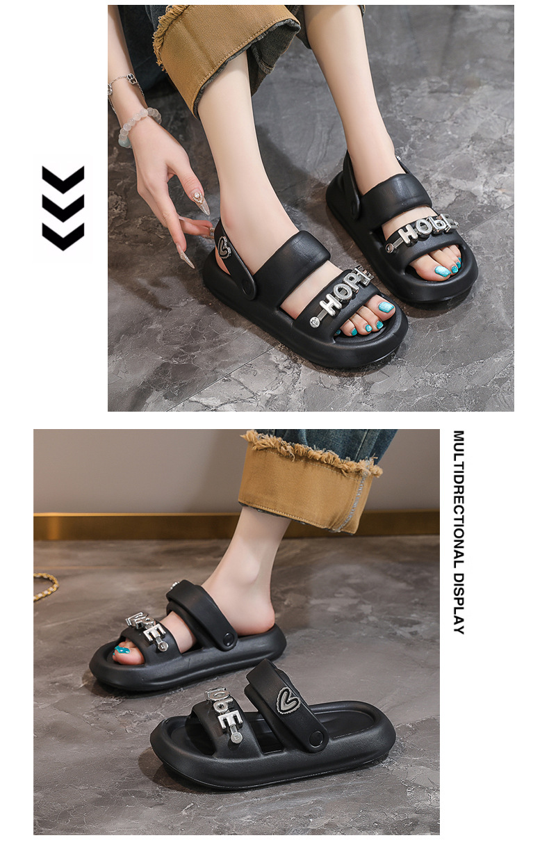 Sensación de mierda, pantuflas de una palabra, ropa exterior de verano para mujeres, suela gruesa, 2025 nuevo estilo, rojo neto, súper fuego, sandalias de diamantes de imitación de moda, en nombre del cabello