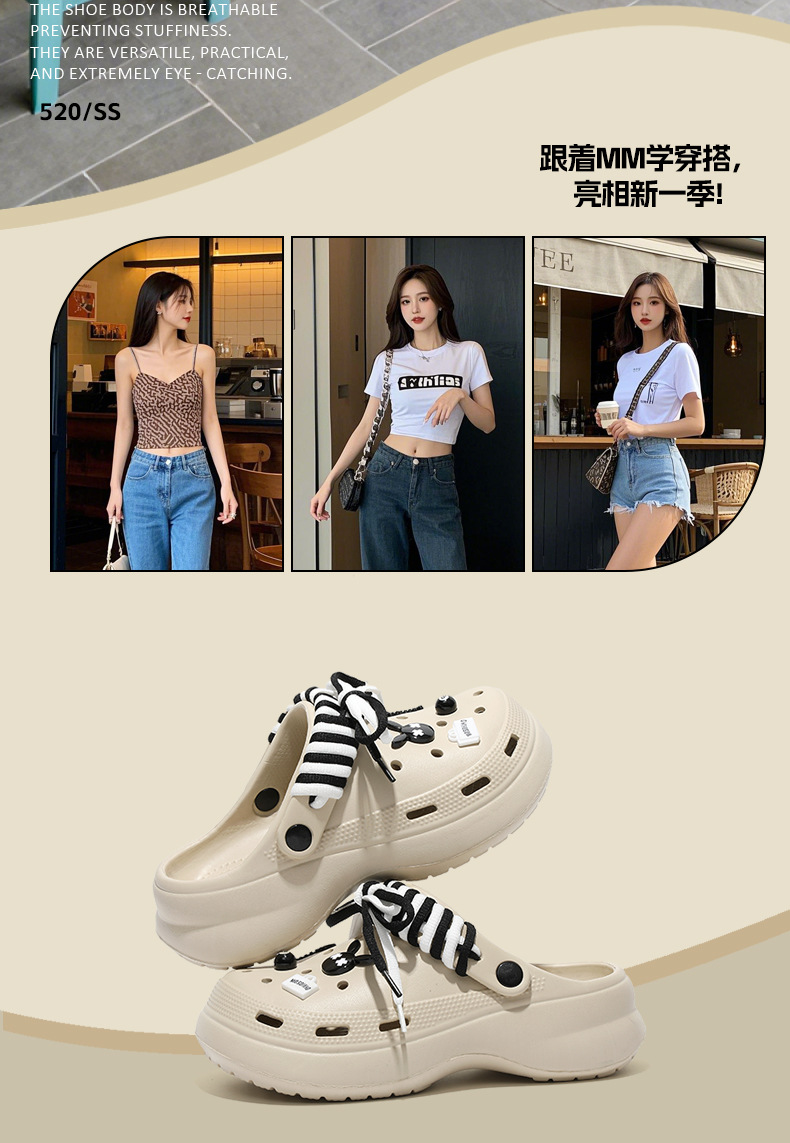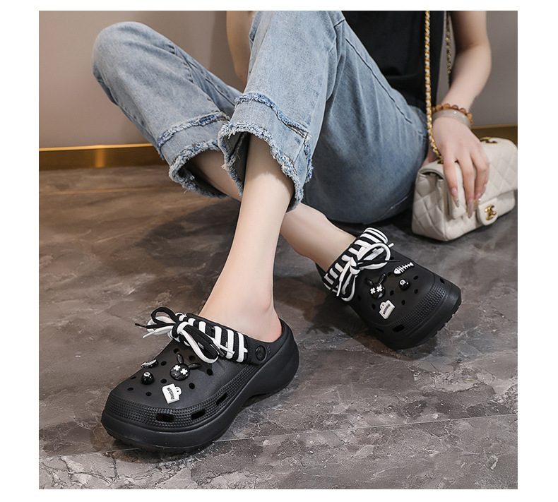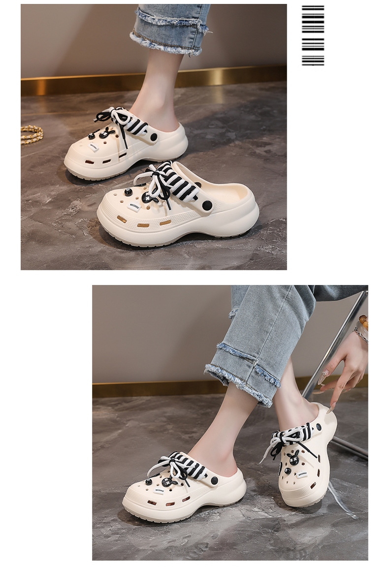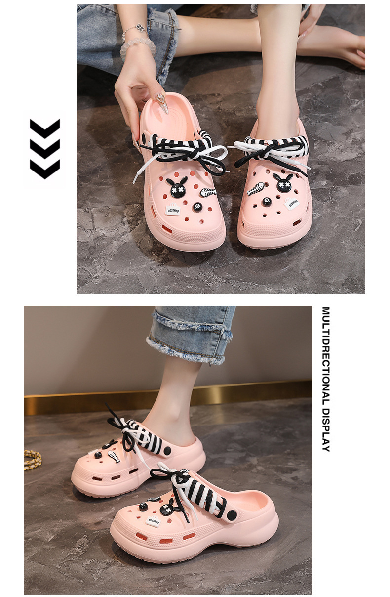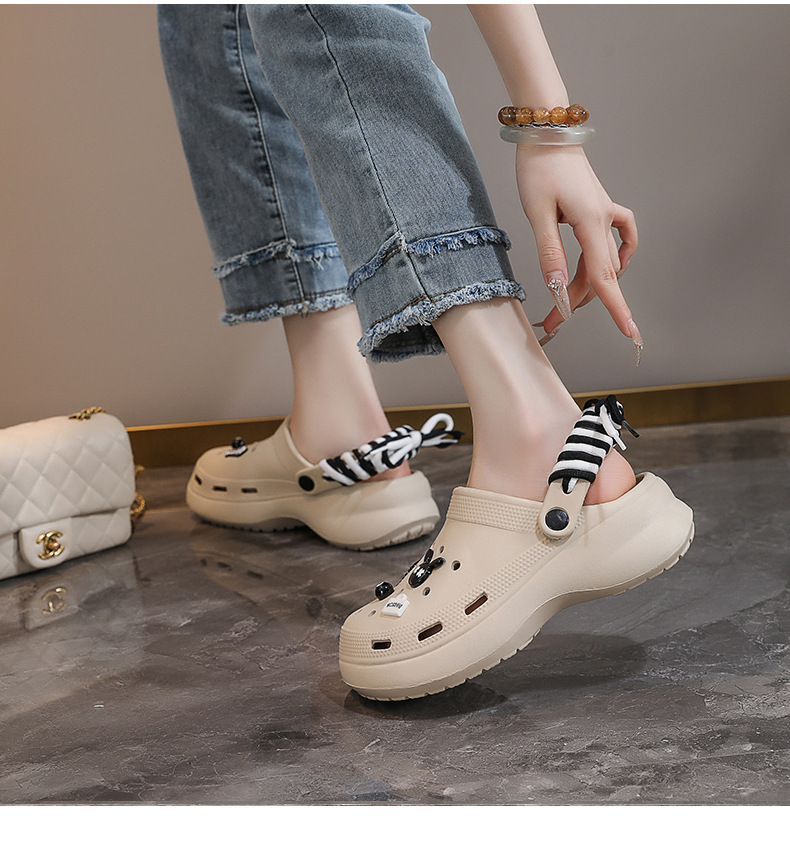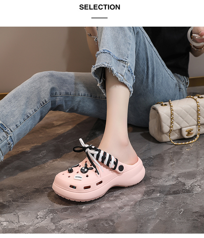 Pise en la mierda, zapatos con agujeros, ropa exterior de moda de verano para mujer, suela gruesa, transpirable, zapatillas Baotou, sandalias de playa antideslizantes