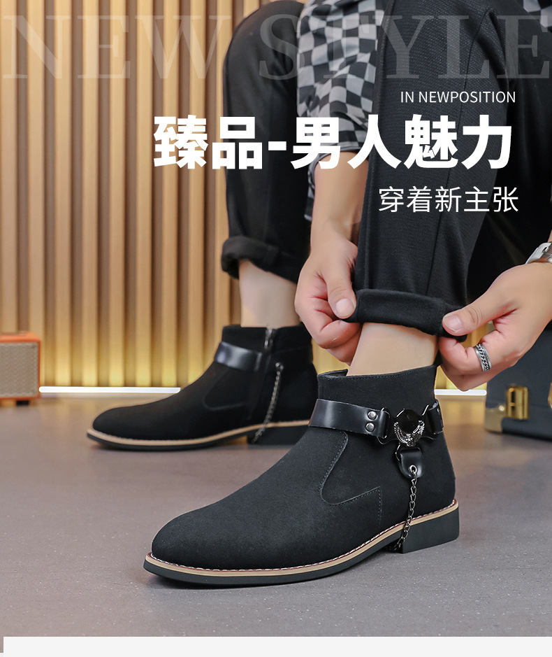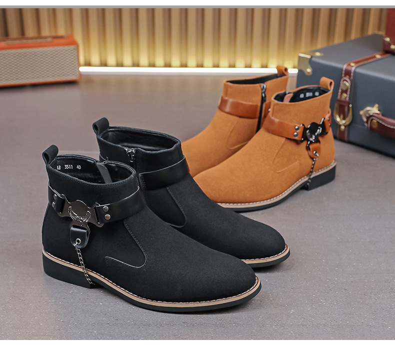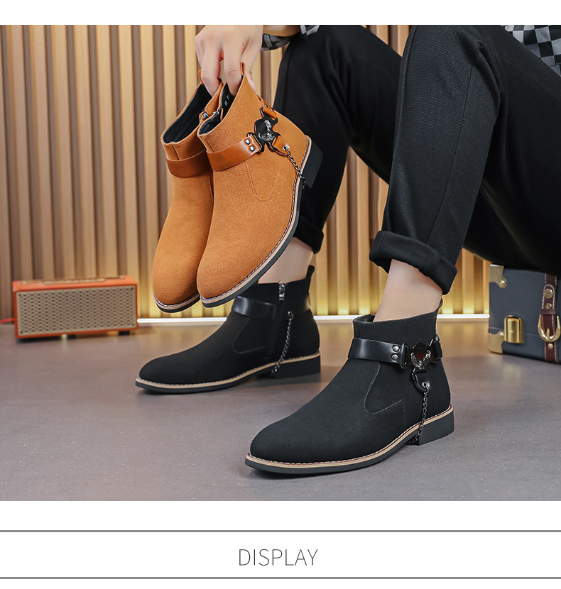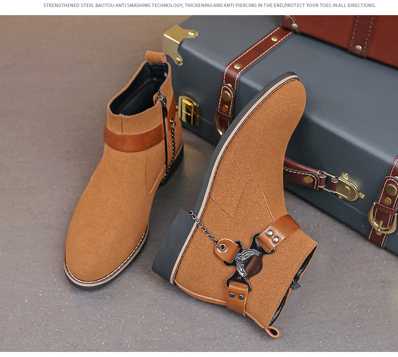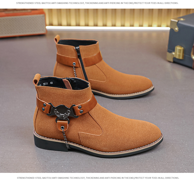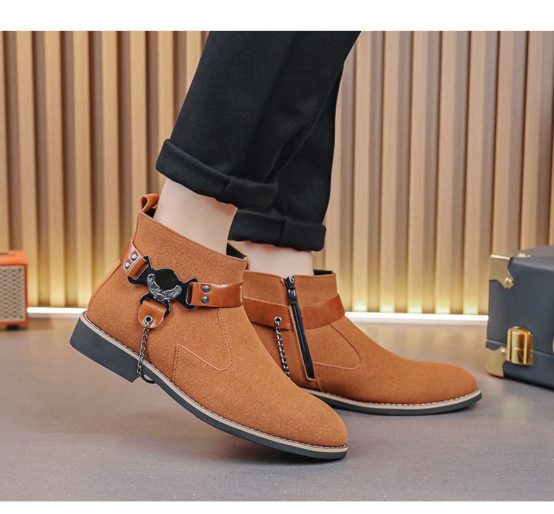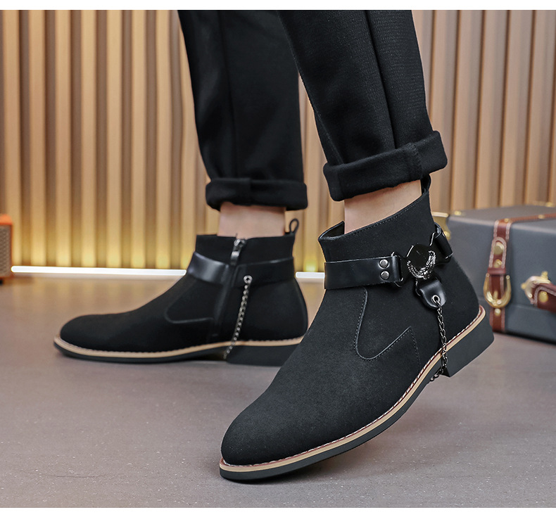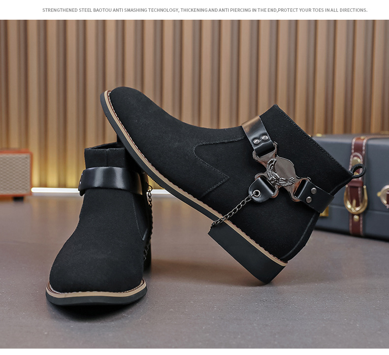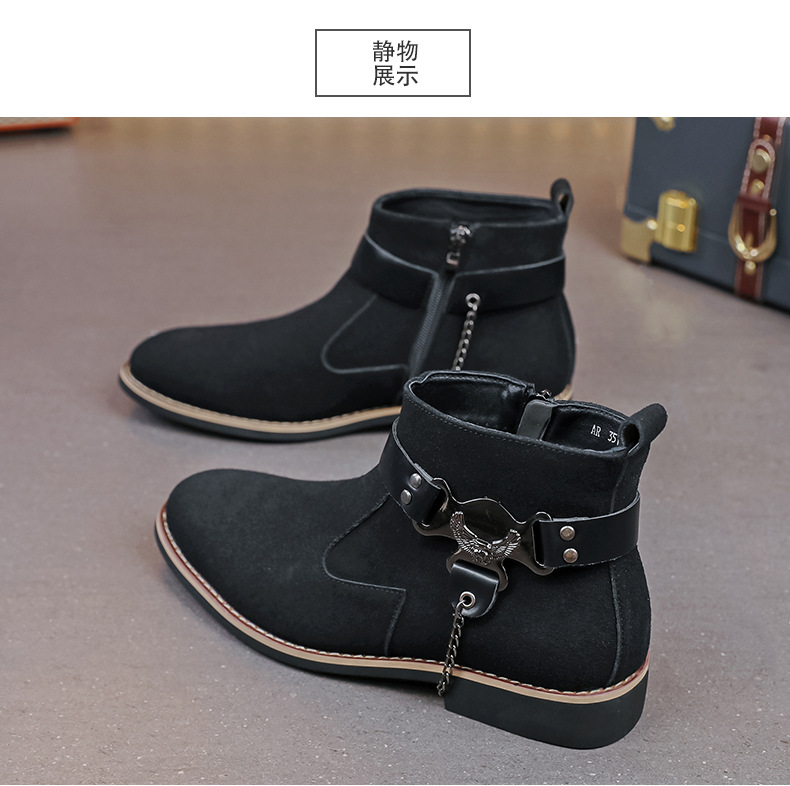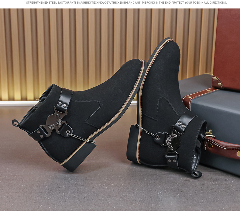 Otoño estilo británico moda cadena alta Martin botas retro casual color sólido botas cortas transfronterizas de gran tamaño botas de cuero para hombres