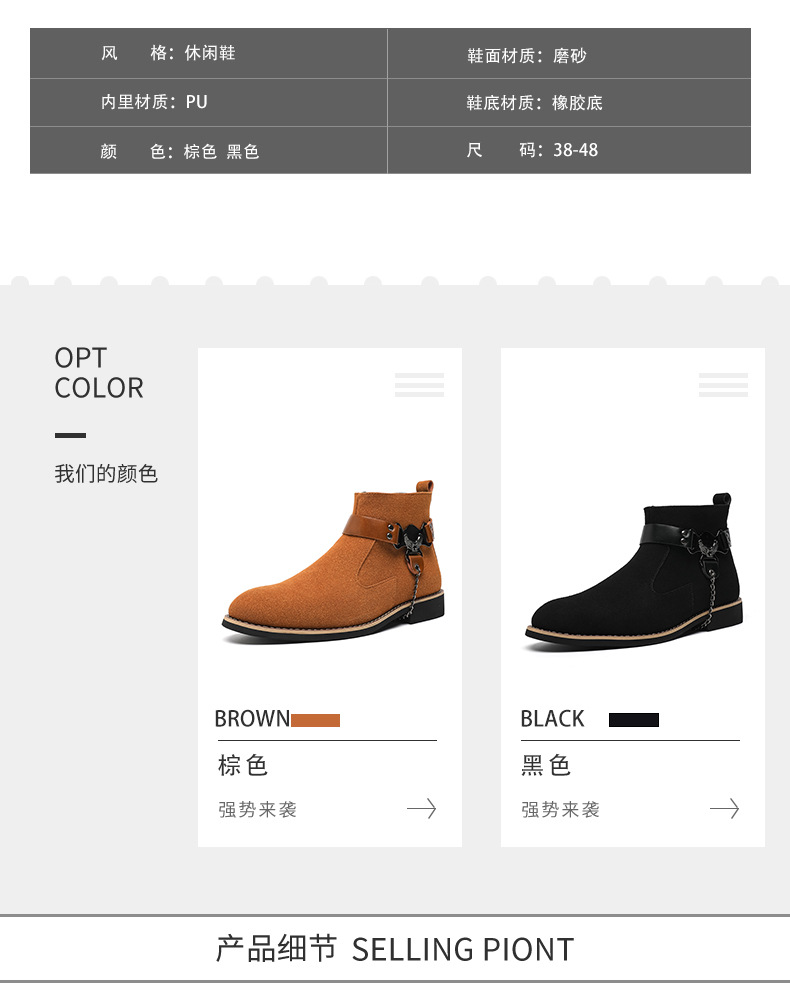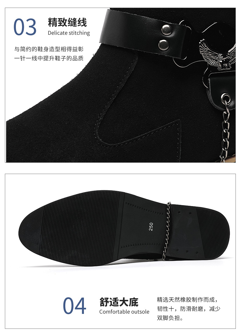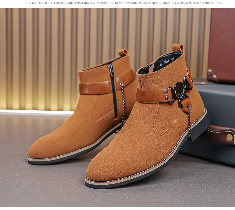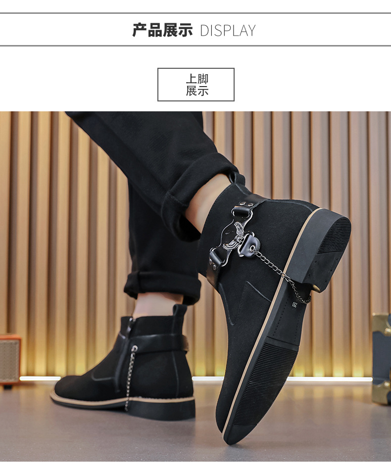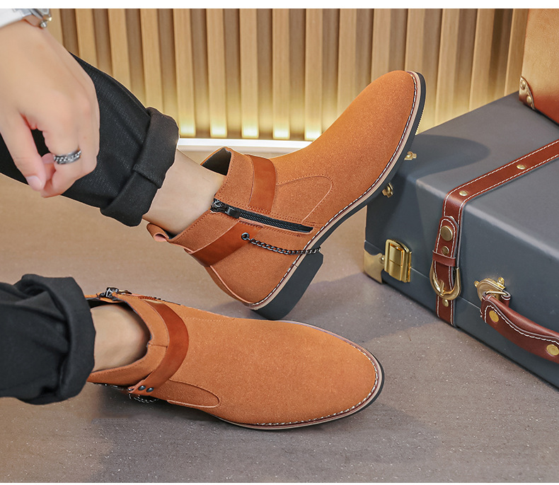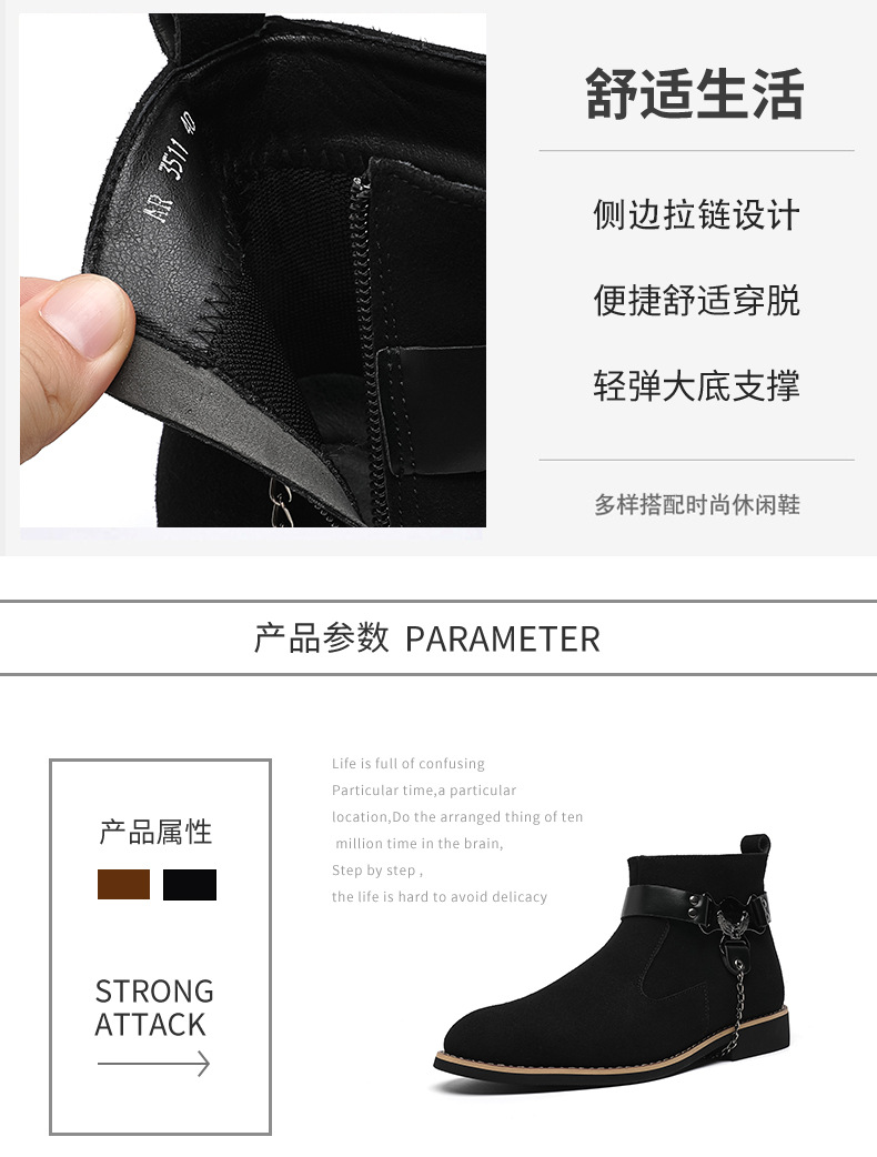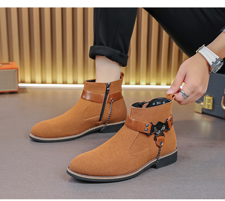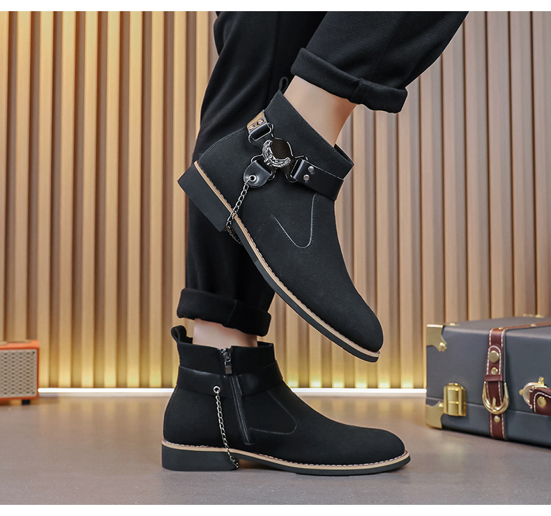 Otoño estilo británico moda cadena alta Martin botas retro casual color sólido botas cortas transfronterizas de gran tamaño botas de cuero para hombres
