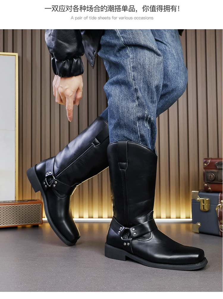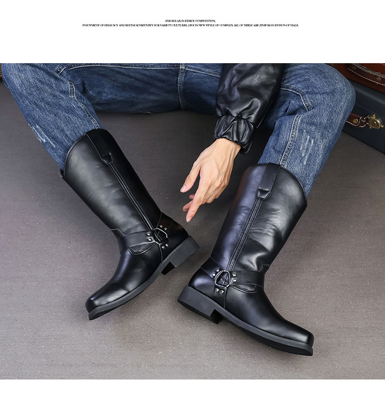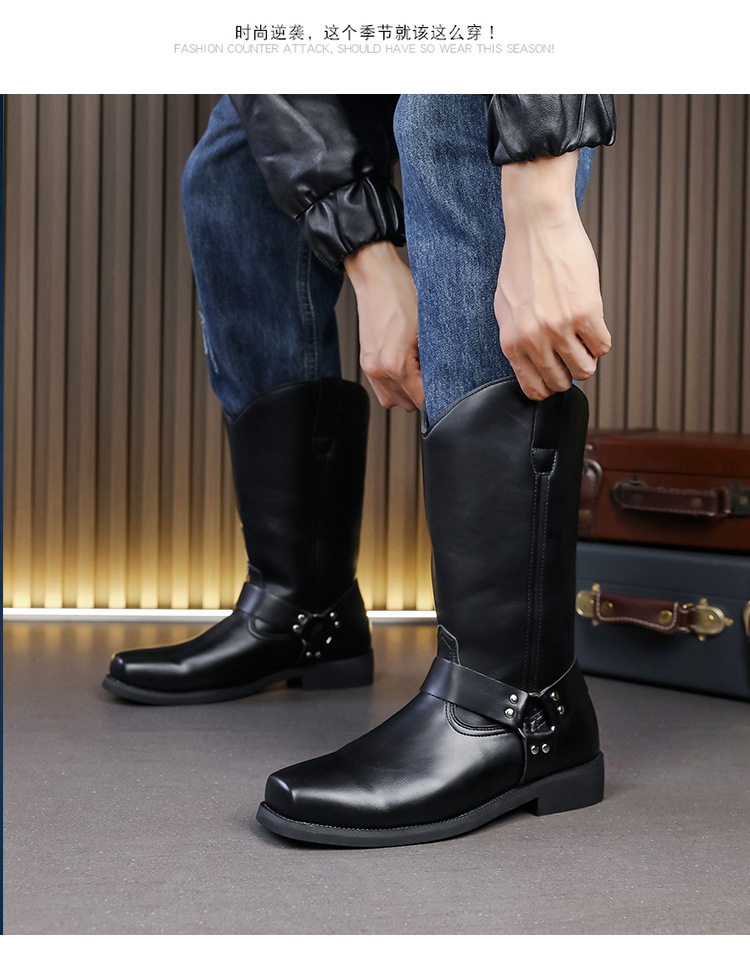 Botas de cuero para hombre de generación de cabello de una pieza, zapatos de cuero nuevos de gran tamaño transfronterizos, botas de caballero de caña alta para hombre de moda, estilo británico de moda