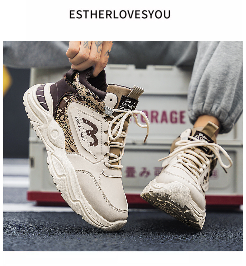 Zapatos de hombre de otoño nuevos zapatos de cuero para hombres, zapatos de deporte casuales al aire libre con suela gruesa, zapatos de moda universal.