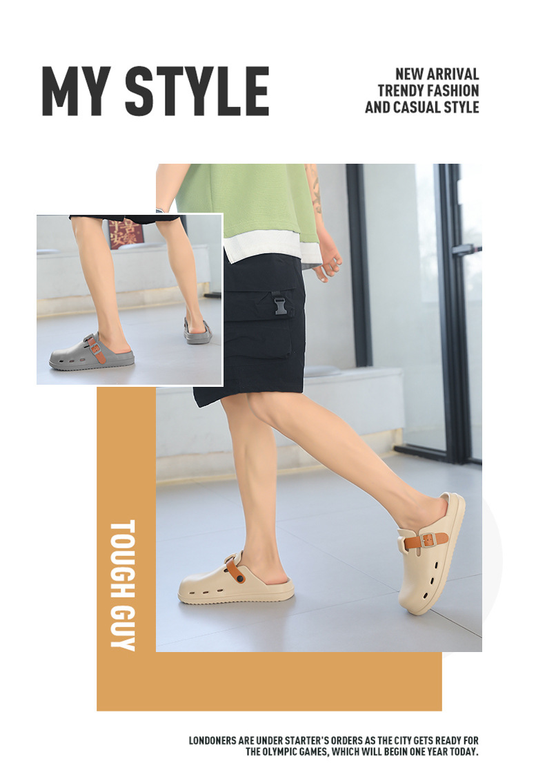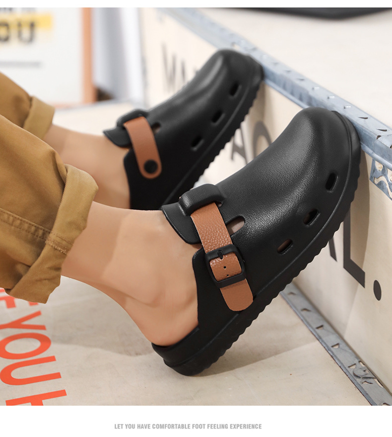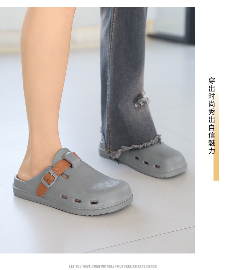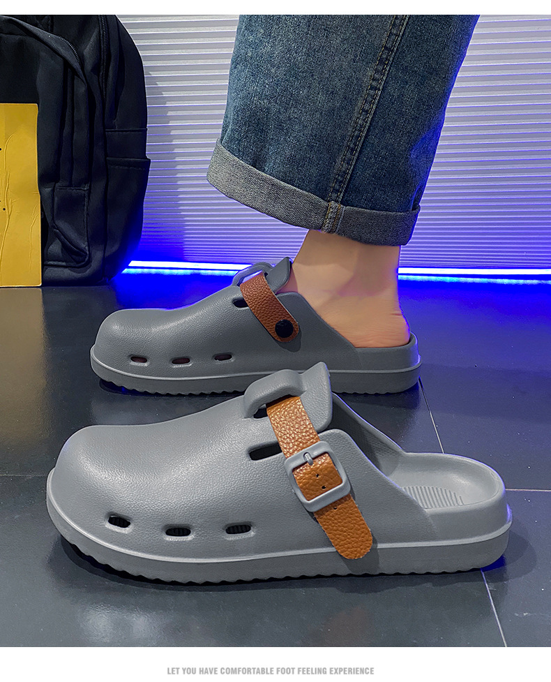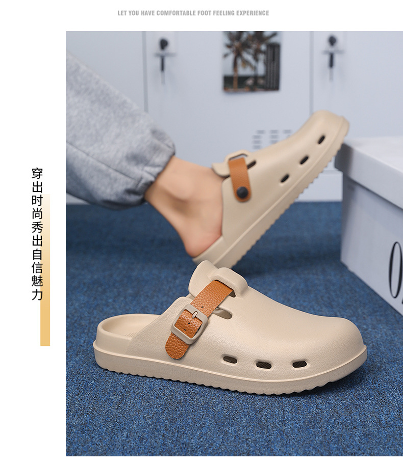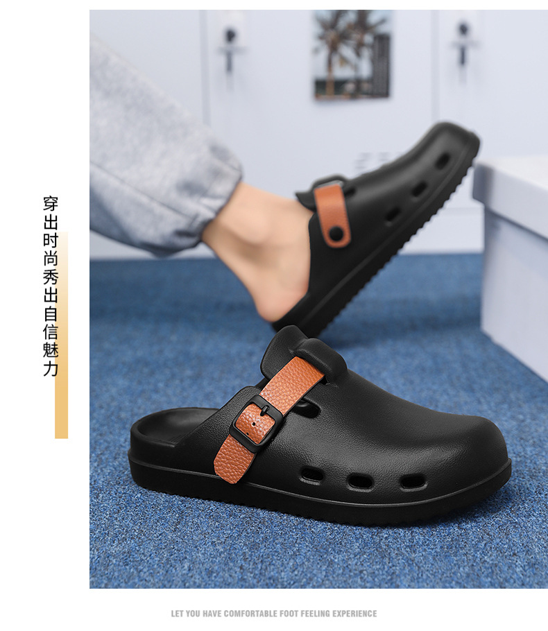 Boken Shoes Baotou Semi-pantuflas verano para hombres nuevo estilo moda europea y americana hebilla de cinturón zapatos perezosos zapatos con agujeros de un pie