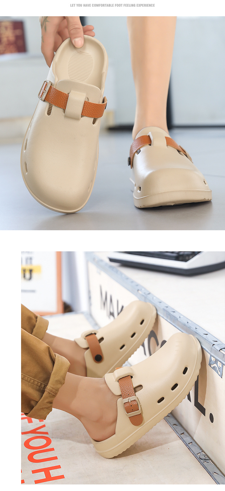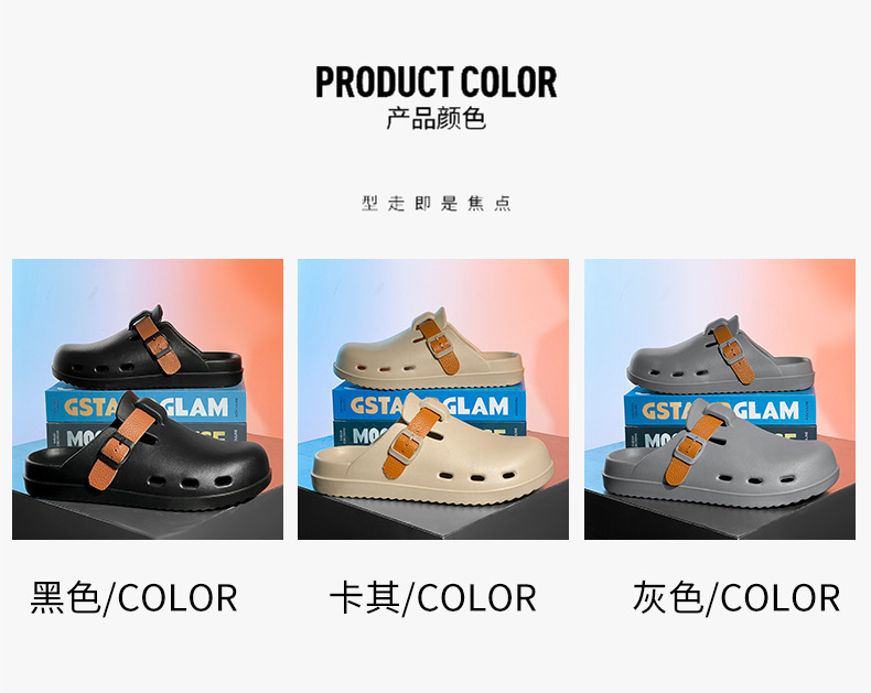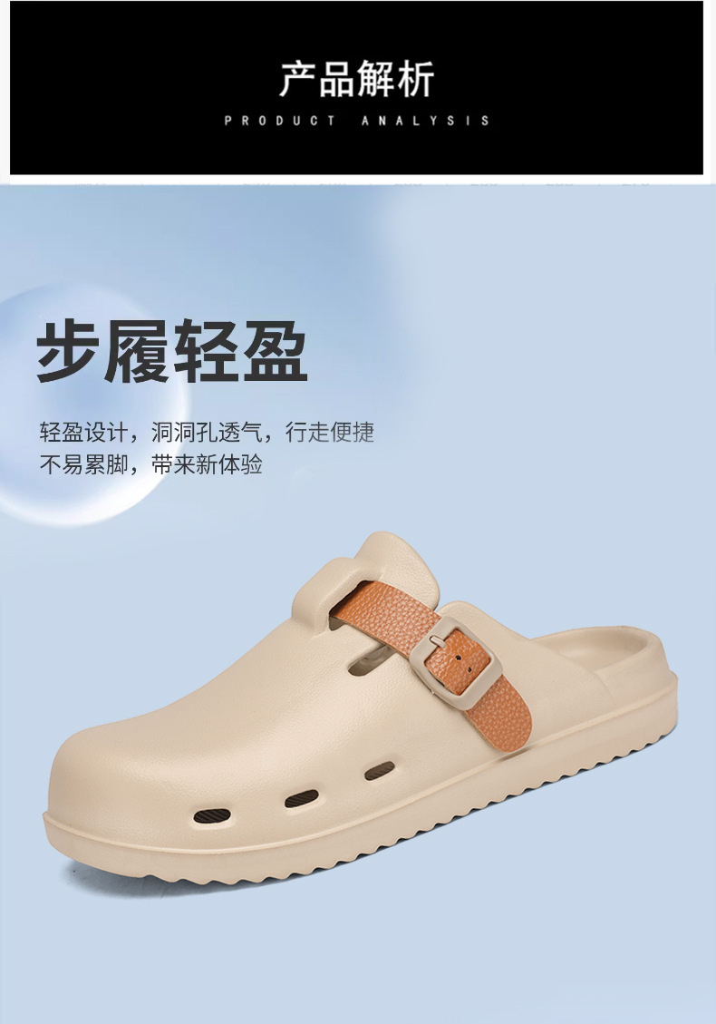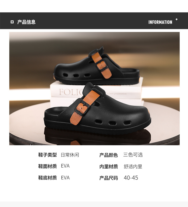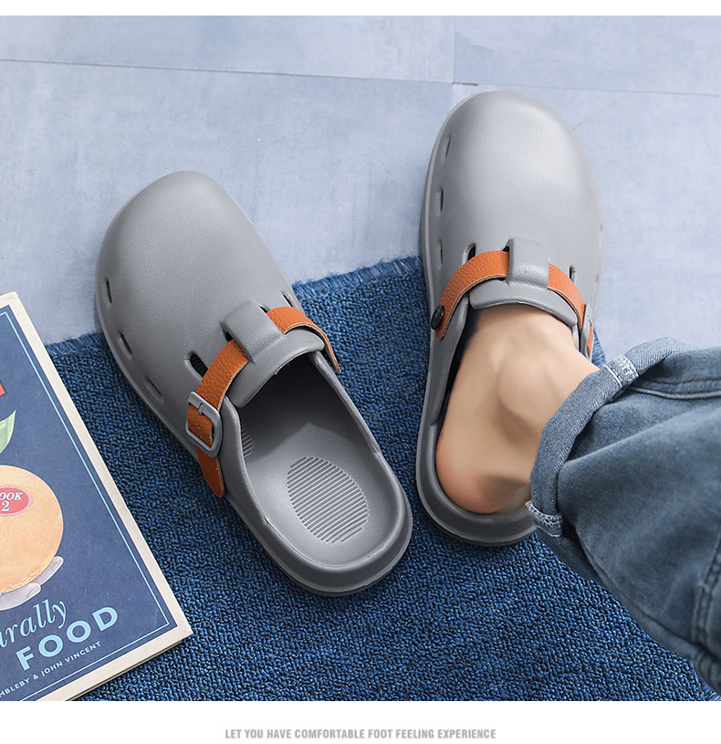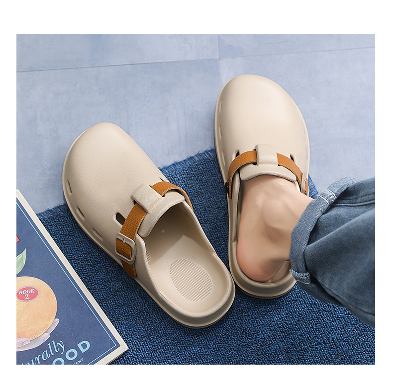 Boken Shoes Baotou Semi-pantuflas verano para hombres nuevo estilo moda europea y americana hebilla de cinturón zapatos perezosos zapatos con agujeros de un pie