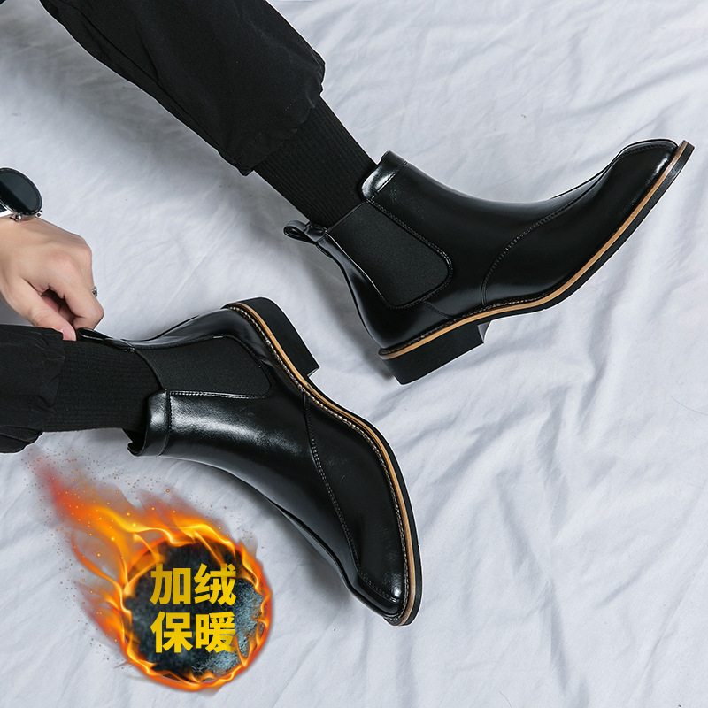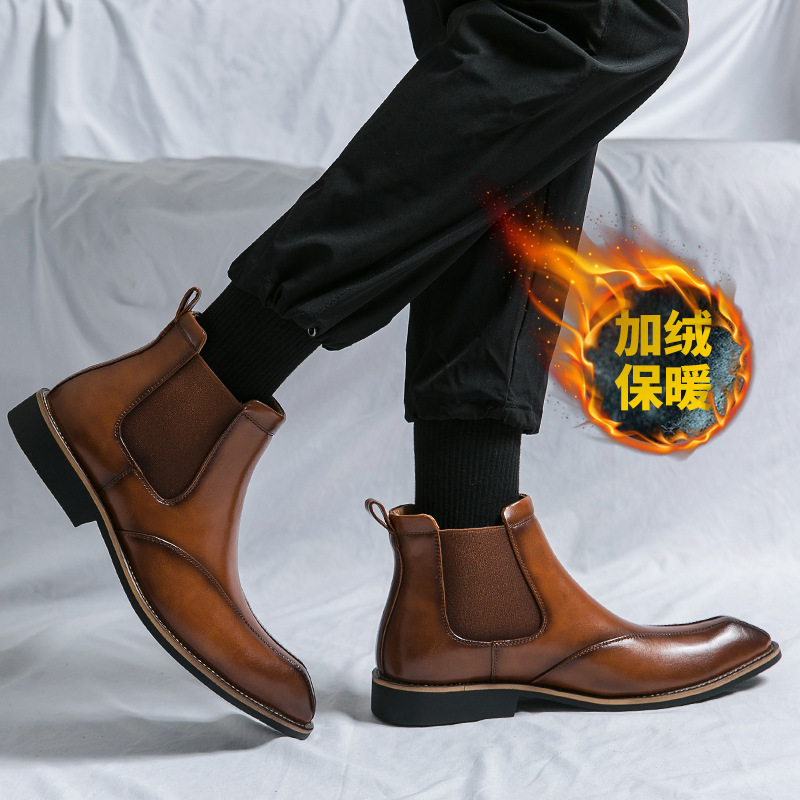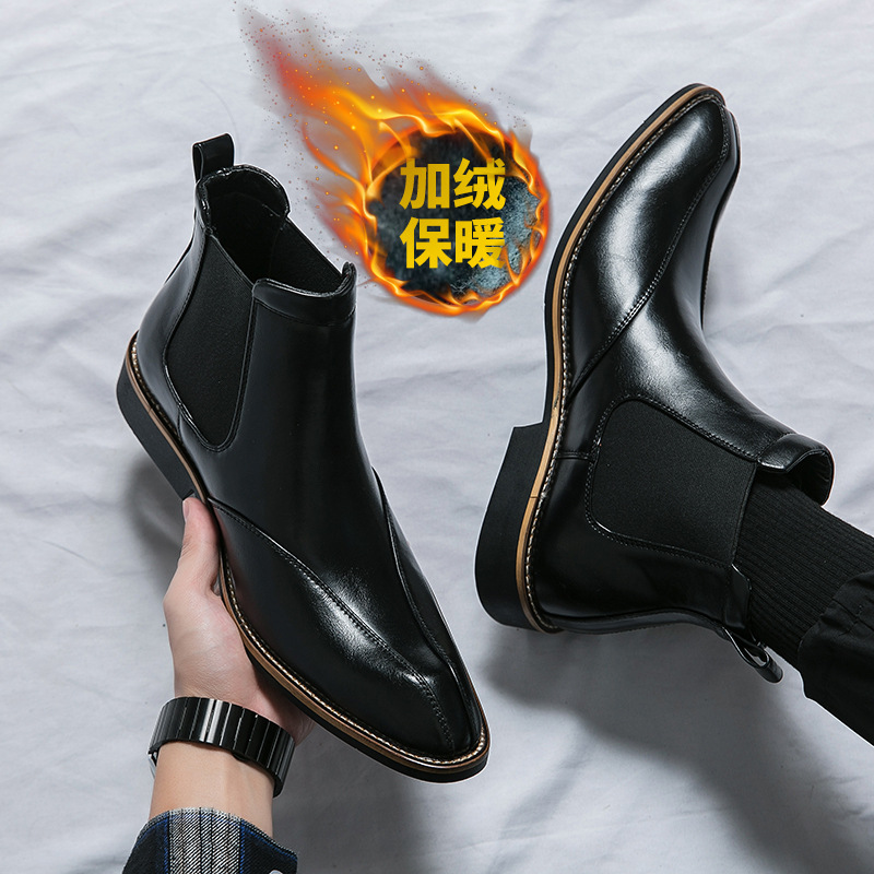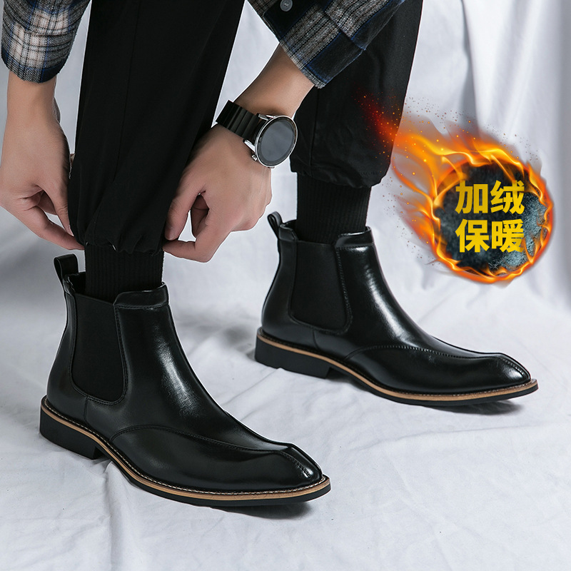 Botas Martin de invierno para hombres, zapatos de cuero de alto nivel para hombres, botas cortas de Chelsea británicas, botas de negocios para hombres casuales