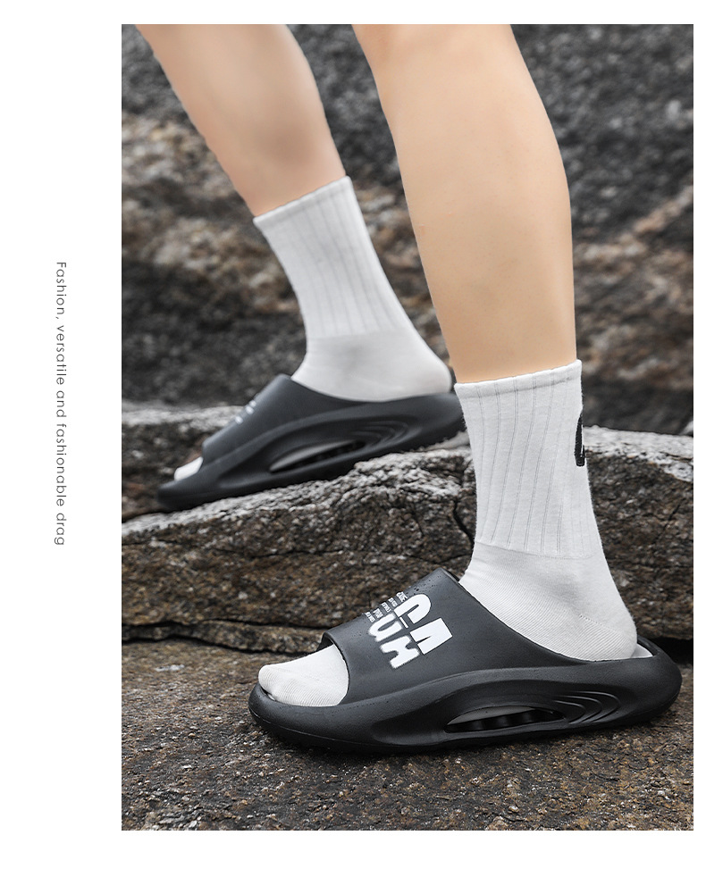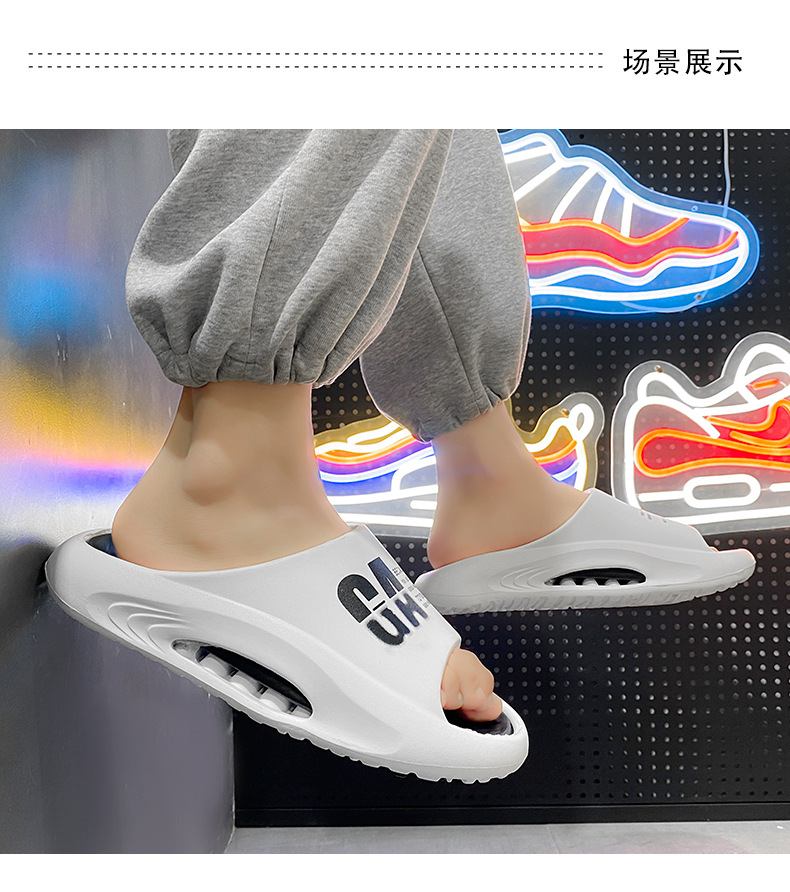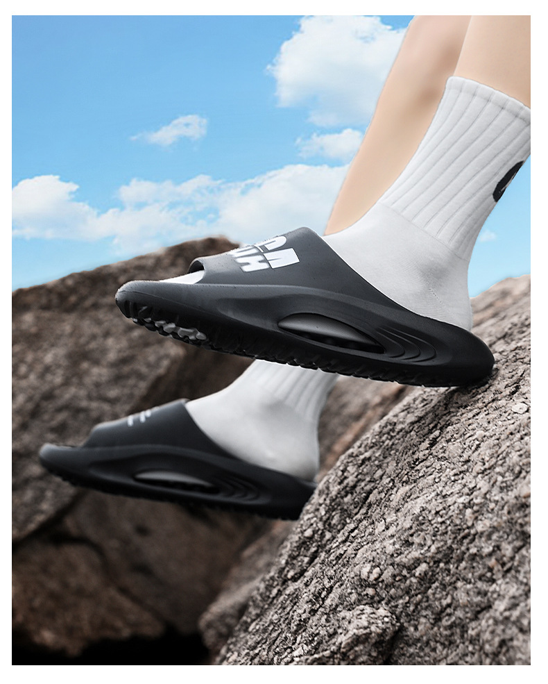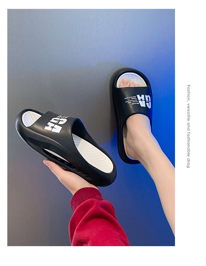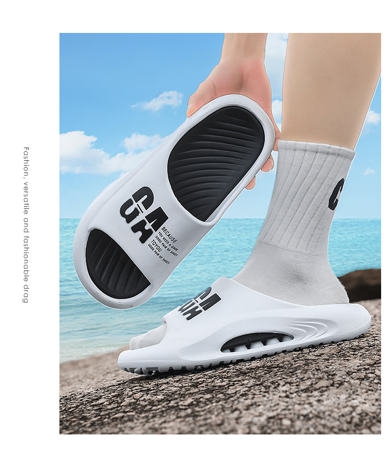 Los hombres de verano se ponen cómodos en el hogar, zapatillas de callejera para parejas.