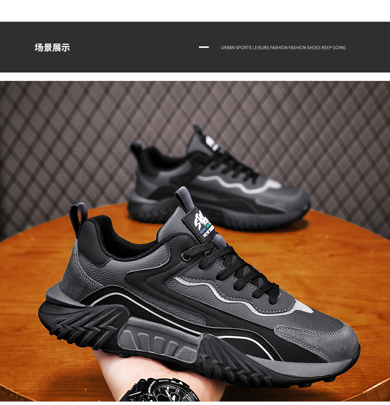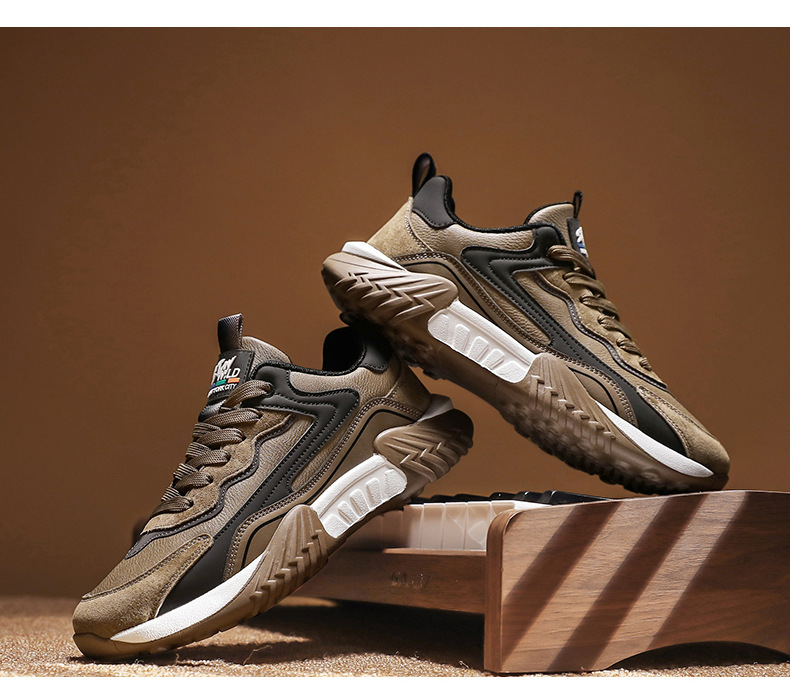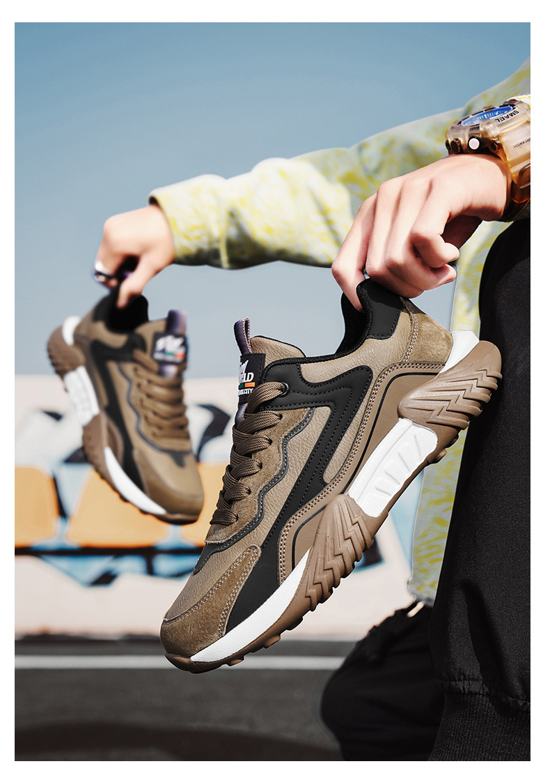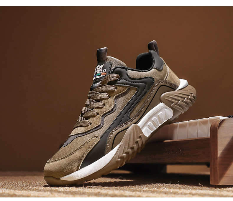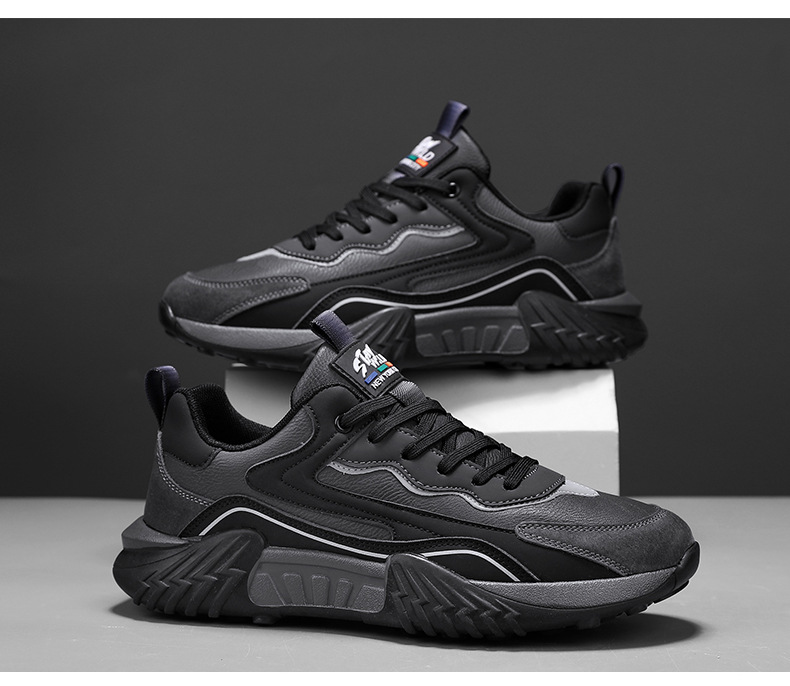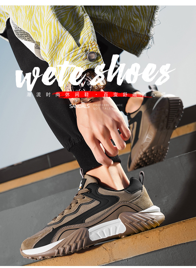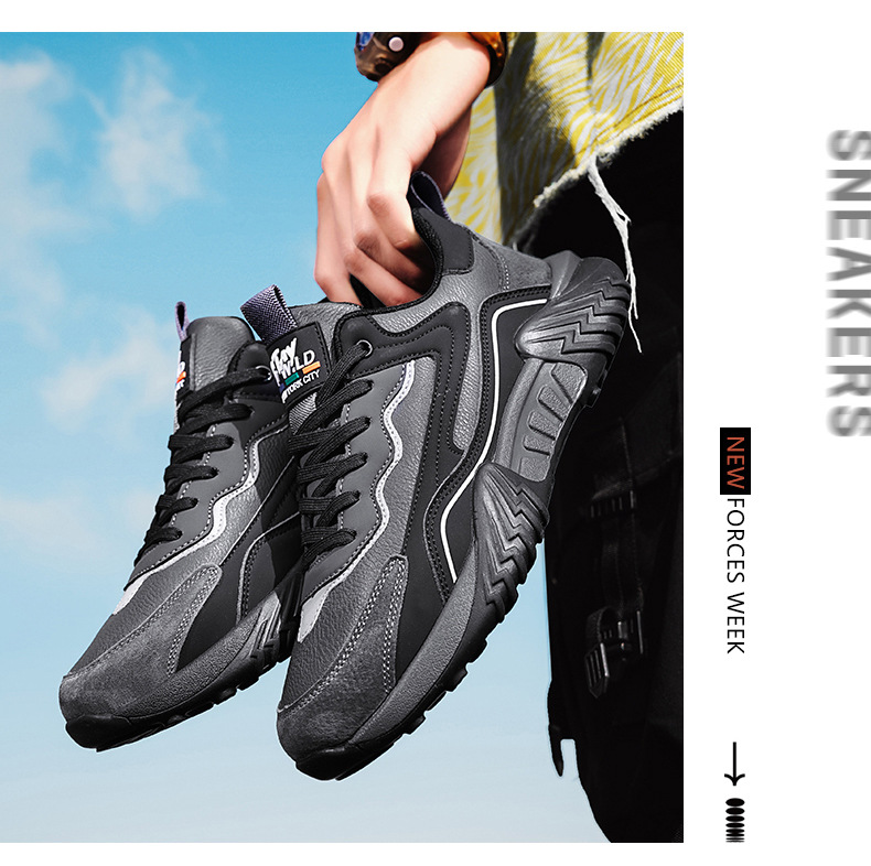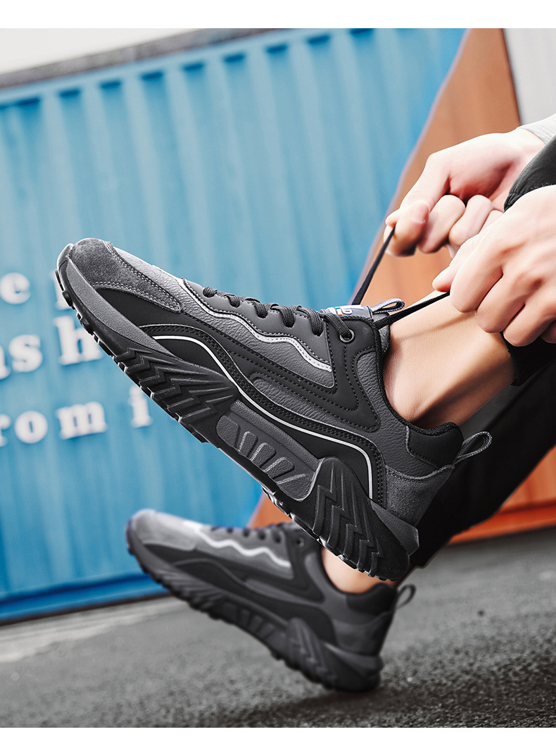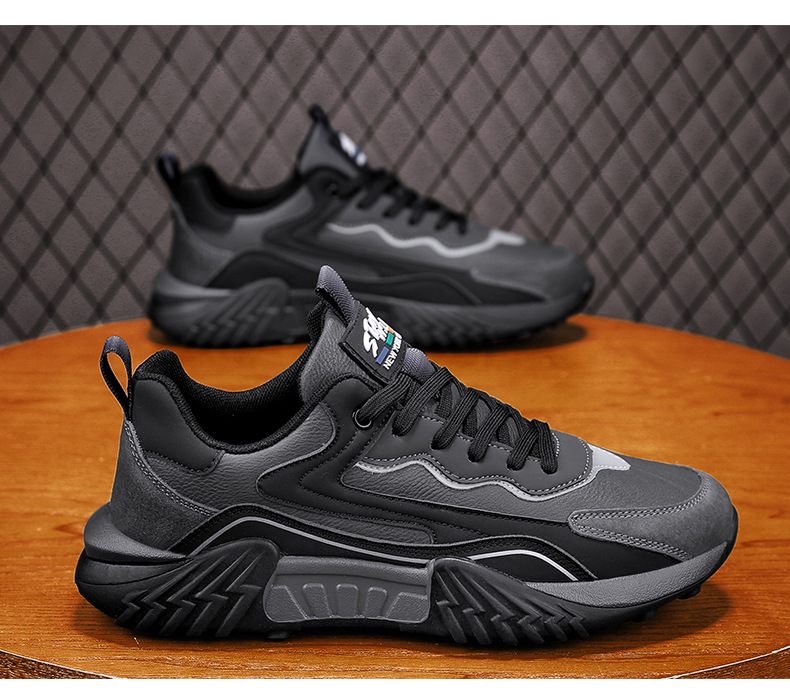 2025 primavera chatarra mano rápida transmisión en vivo Gump zapatos de cuero de suela gruesa impermeable zapatos deportivos para hombres casuales coreanos