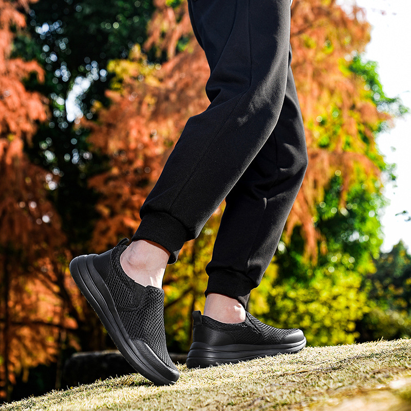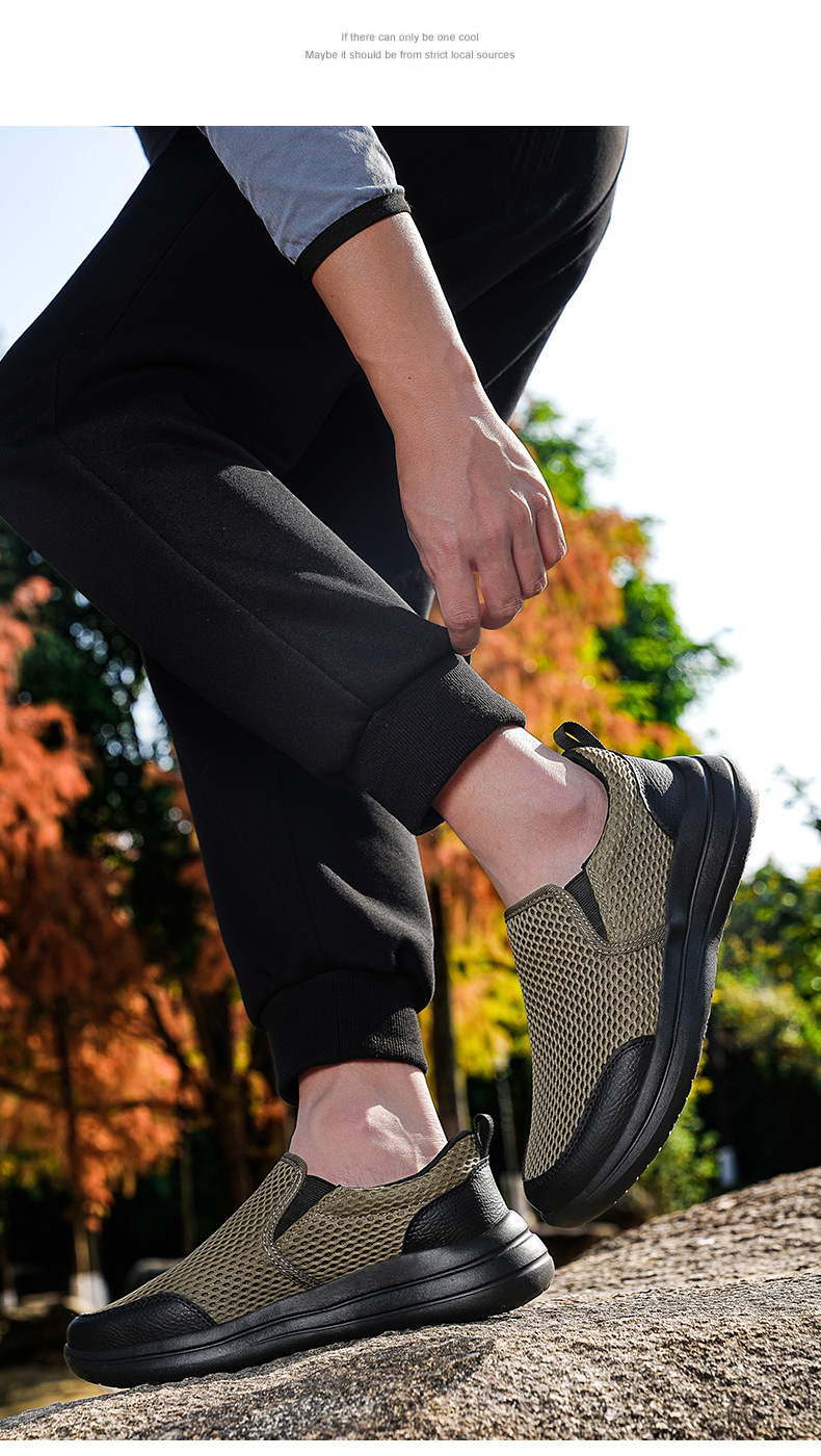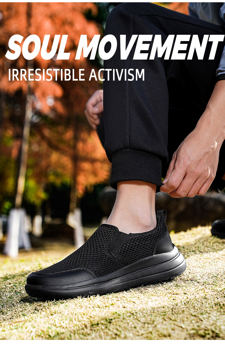 Nuevos zapatos de hombre de verano zapatos casuales de malla transpirables antideslizantes suela suave y elástica de mediana edad zapatos deportivos perezosos