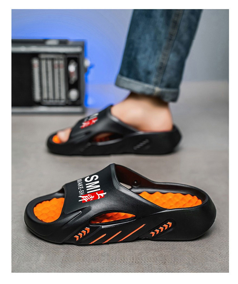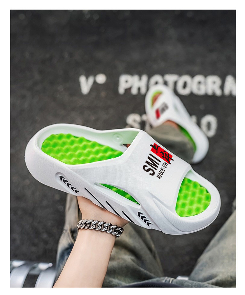Red celebridad en vivo de verano masaje fondo de dos colores EVA zapatillas frías usar una zapatilla transfronteriza zapatillas grandes para hombres y mujeres