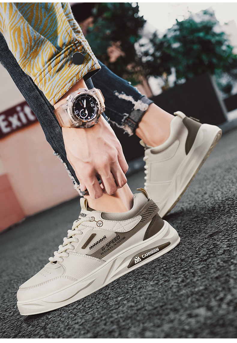 Zapatos de skate para hombres zapatos blancos de cuero casuales para hombres 2025 nuevos zapatos de primavera bajos de fondo plano de moda estudiantes adolescentes