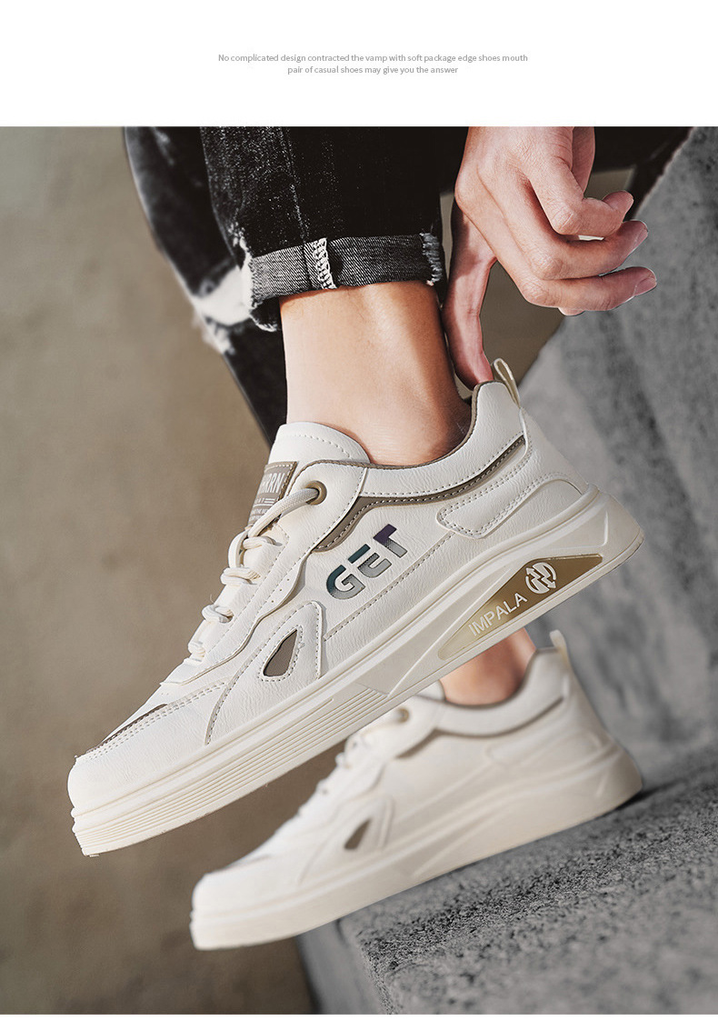 Zapatos de skate para hombres primavera 2025 nuevos zapatos de cuero para hombres zapatos blancos para estudiantes jóvenes zapatos de moda casuales para hombres