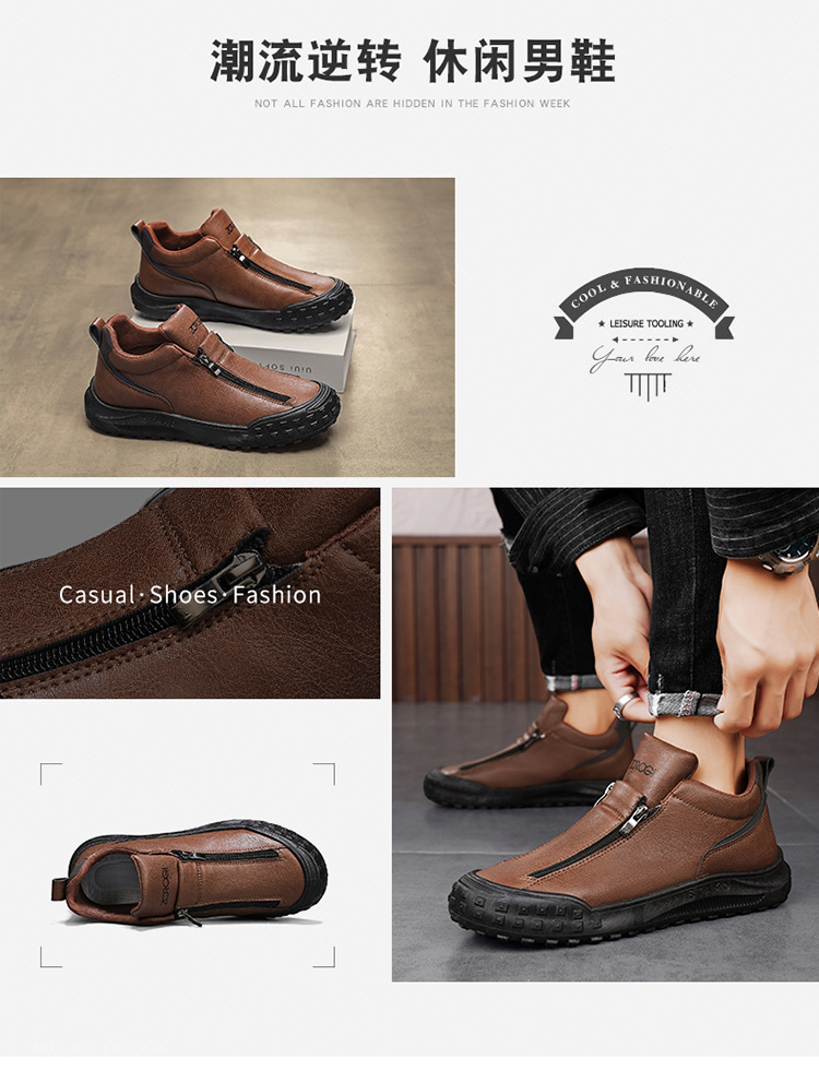 Transfronterizos primavera y otoño nuevos deportes ocio cremallera perezosos un pedazo impermeable antideslizante desgaste zapatos de moda de hombre