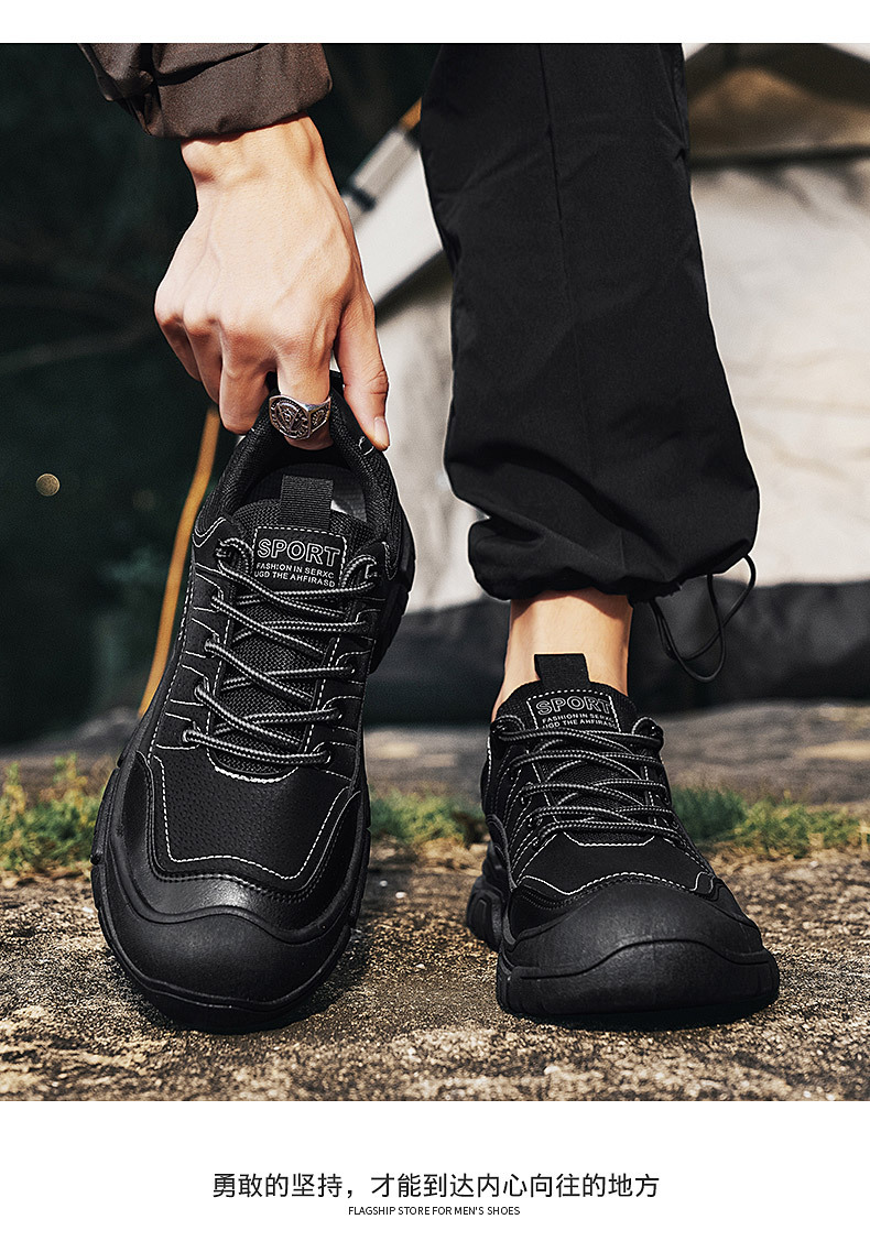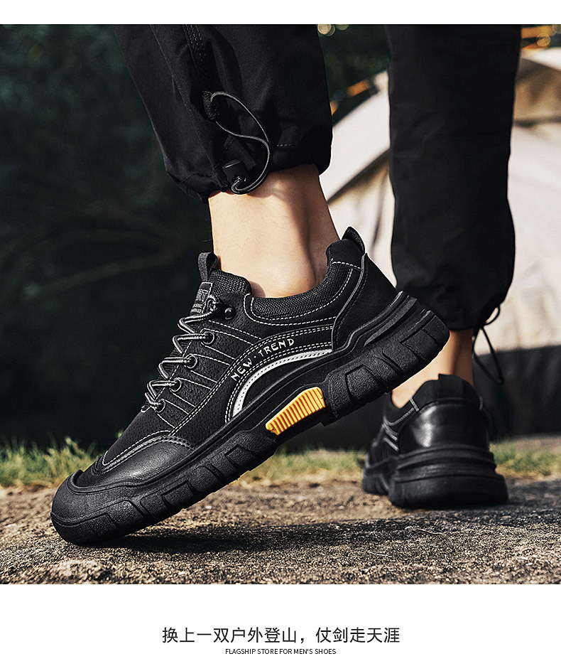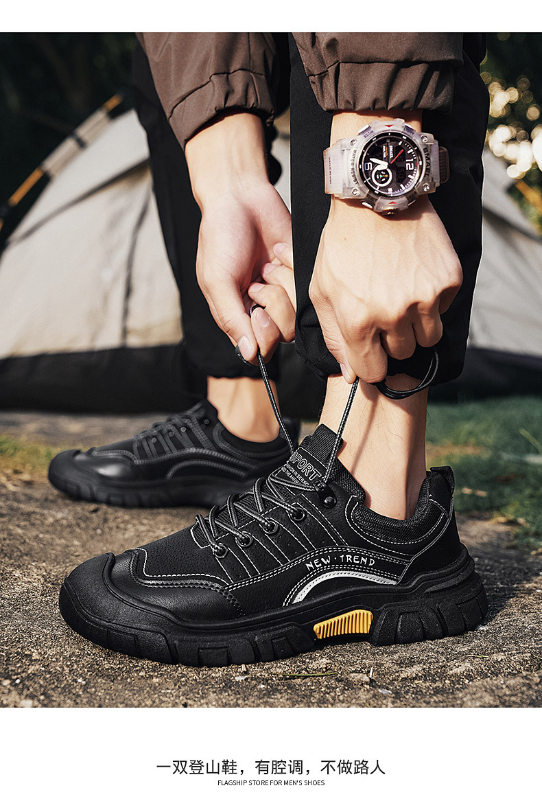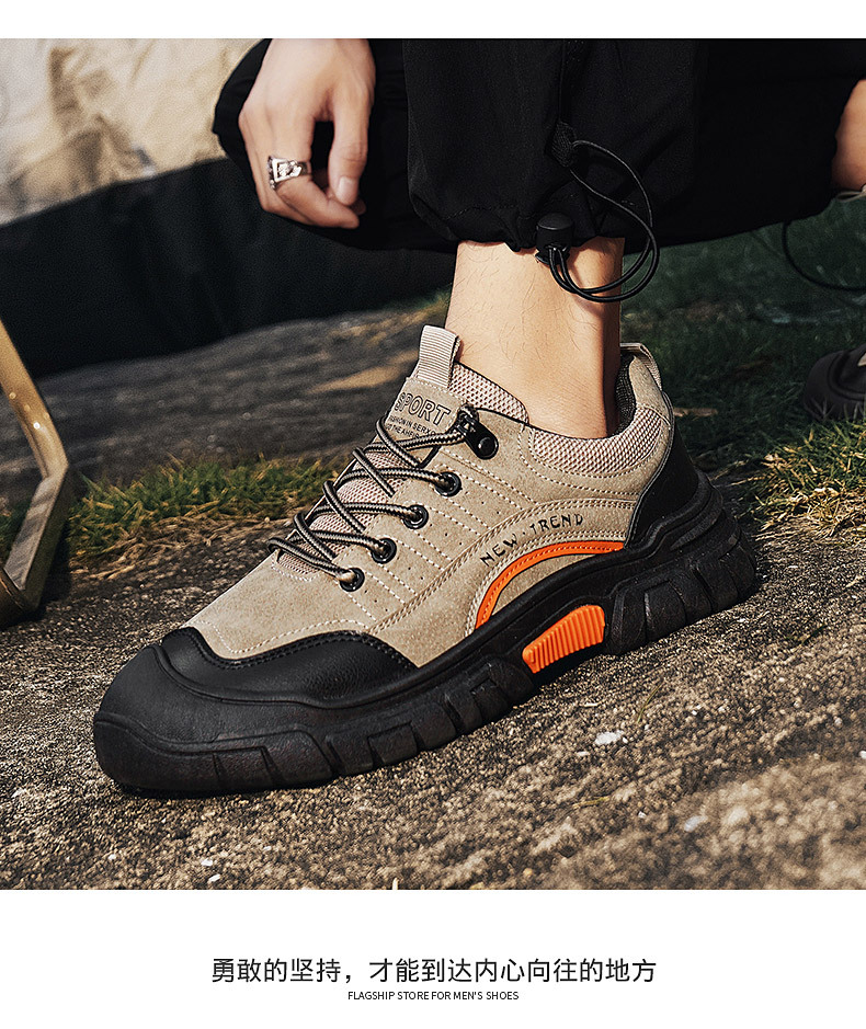 Otoño nuevo cuero de cabeza redonda al aire libre zapatos de montaña deportivos de ocio diarios para trabajar en el sitio de construcción zapatos de moda zapatos de hombre