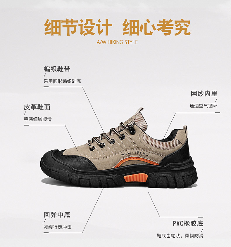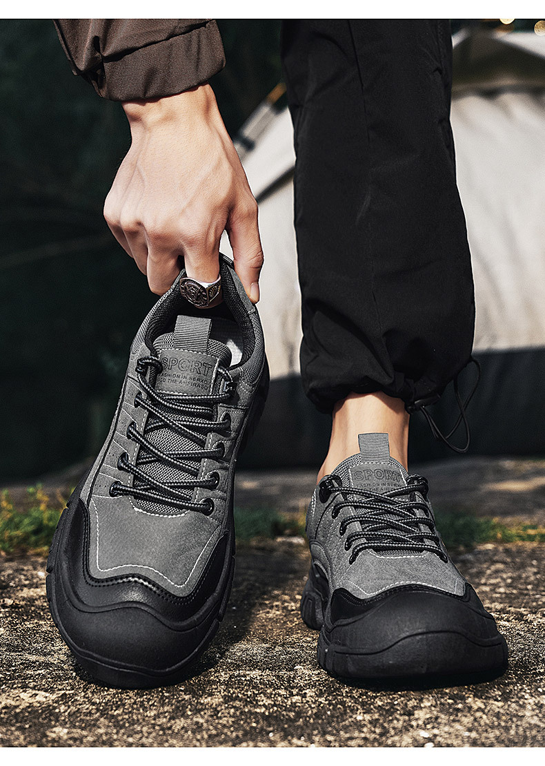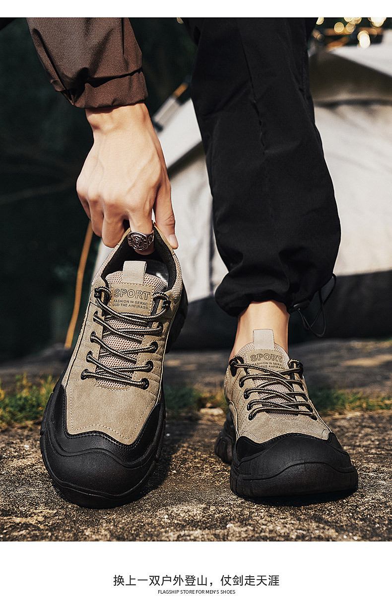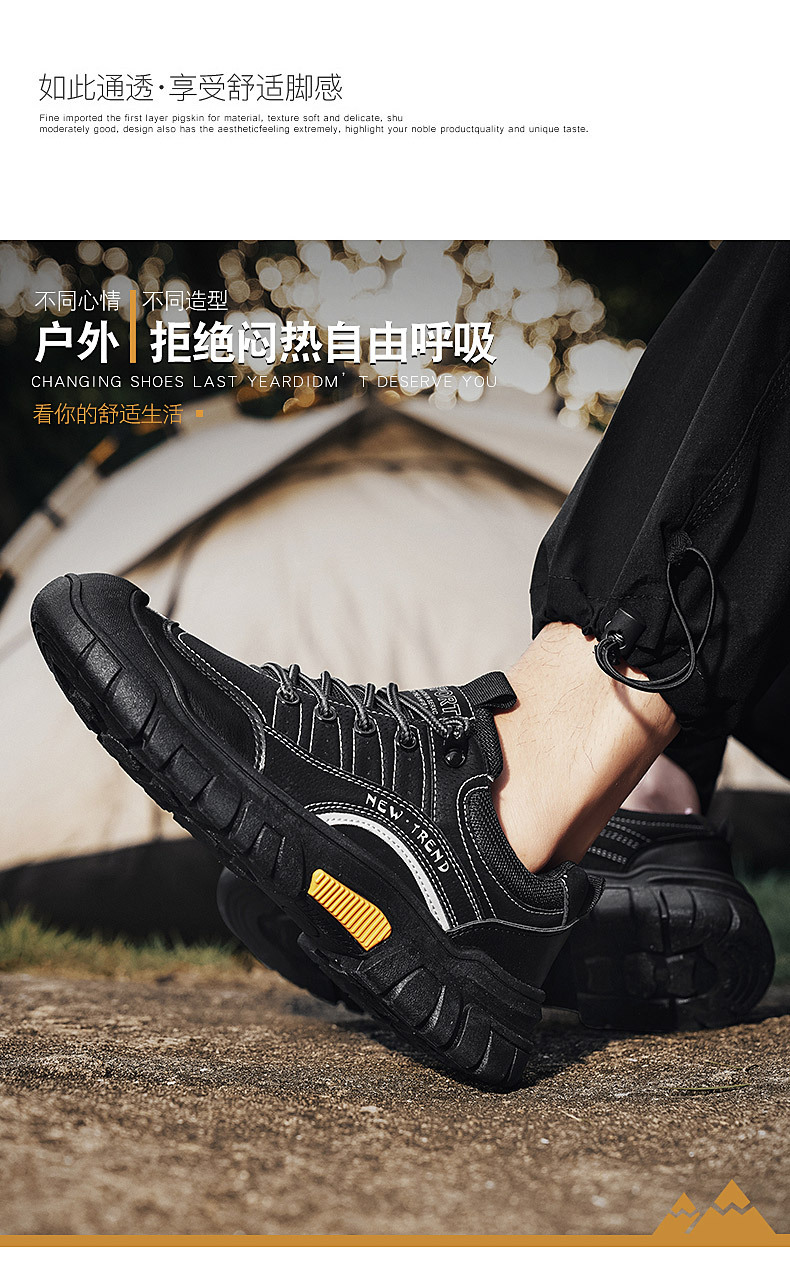 Otoño nuevo cuero de cabeza redonda al aire libre zapatos de montaña deportivos de ocio diarios para trabajar en el sitio de construcción zapatos de moda zapatos de hombre