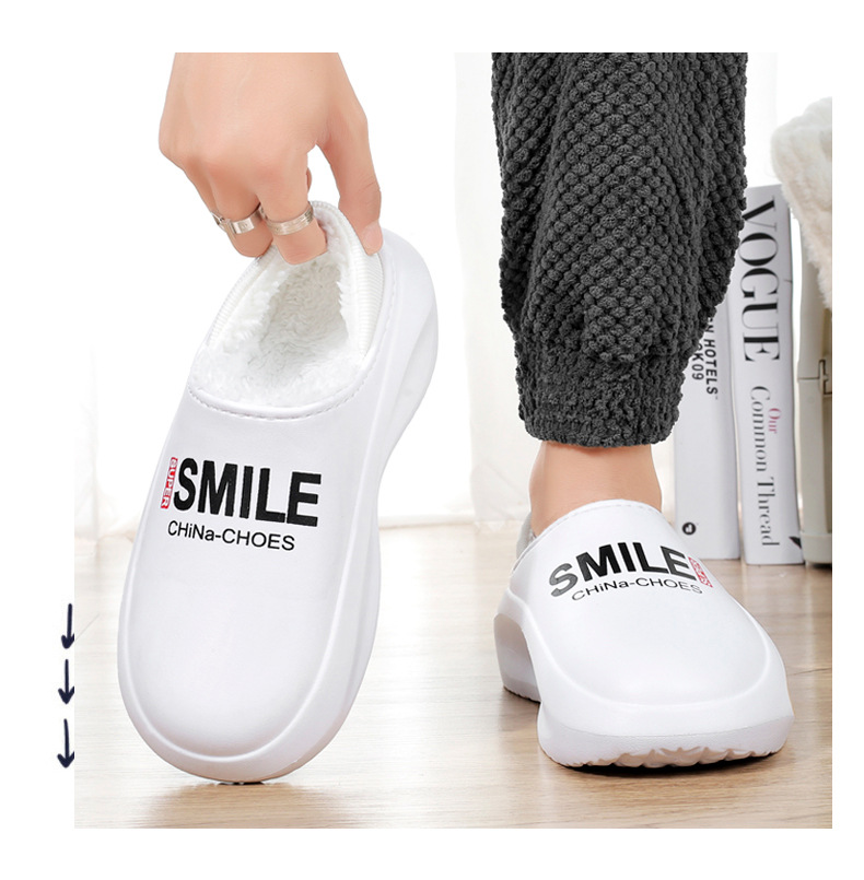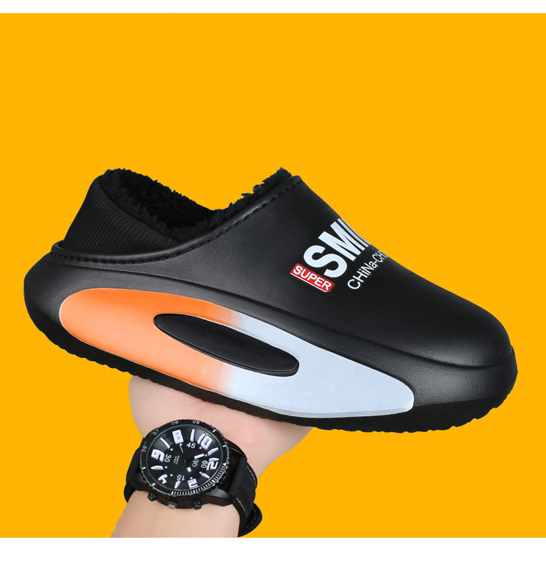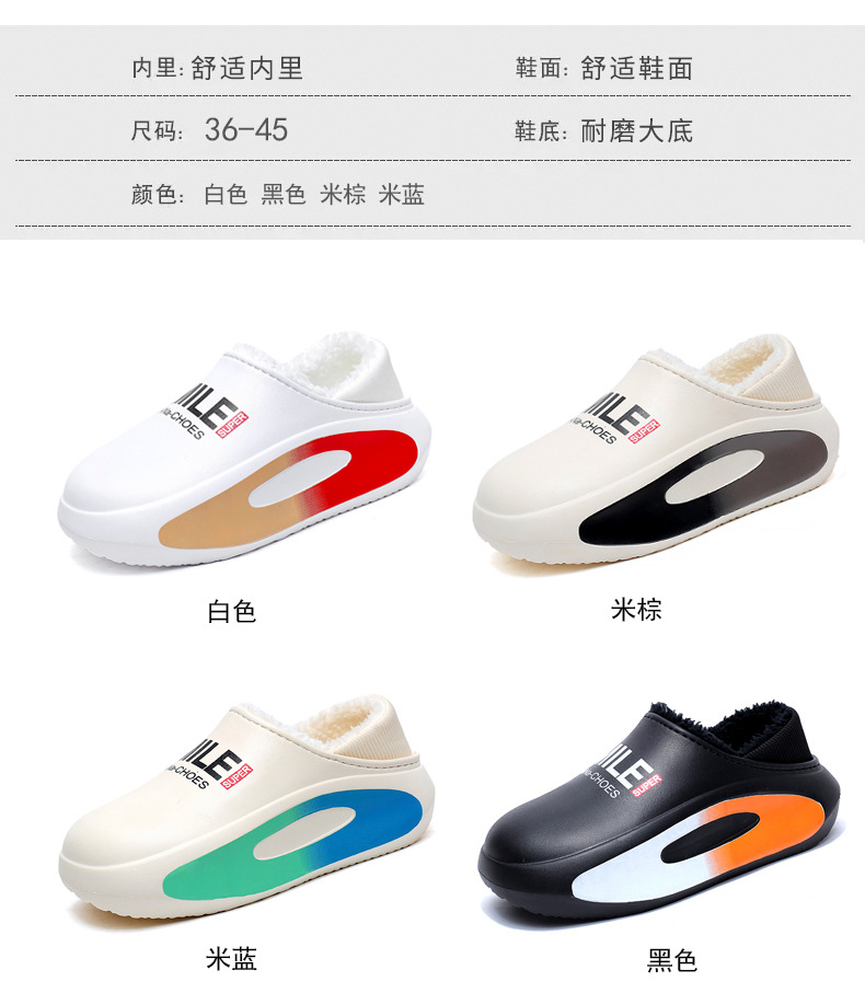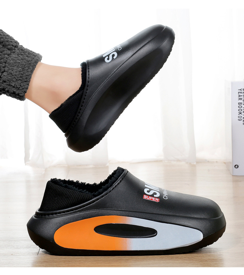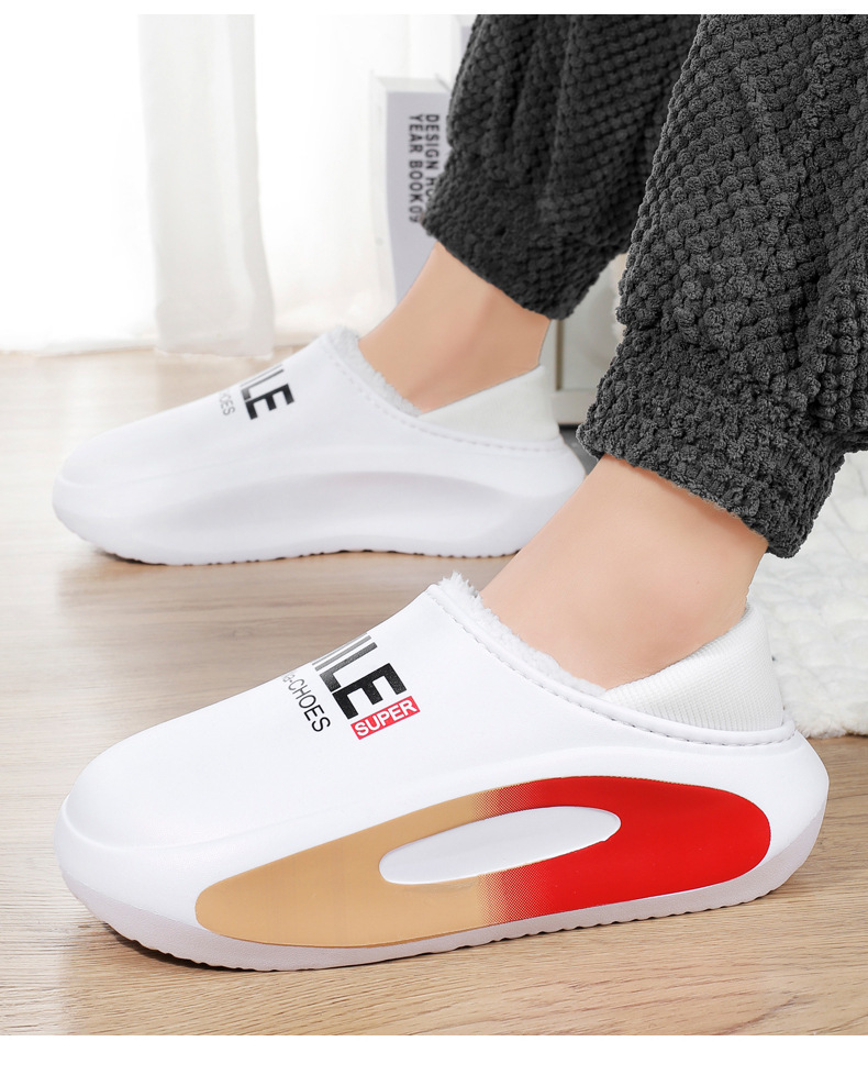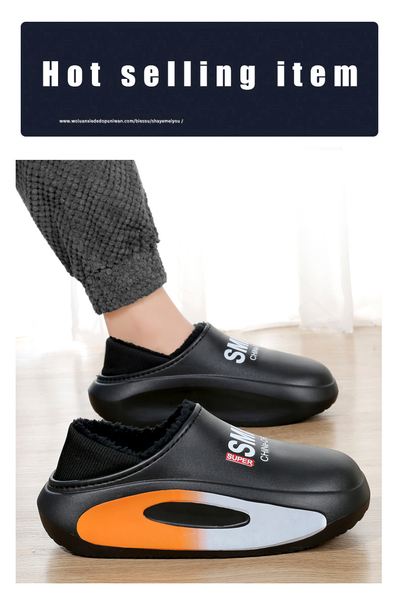 Invierno nuevo estilo de moda zapatillas de algodón bolsas de pareja tacones impermeables y terciopelo calentamiento zapatillas de algodón de lana para hombres