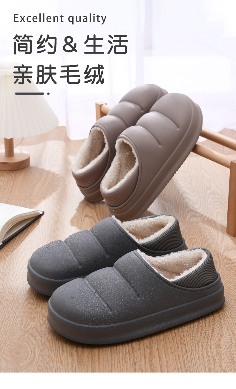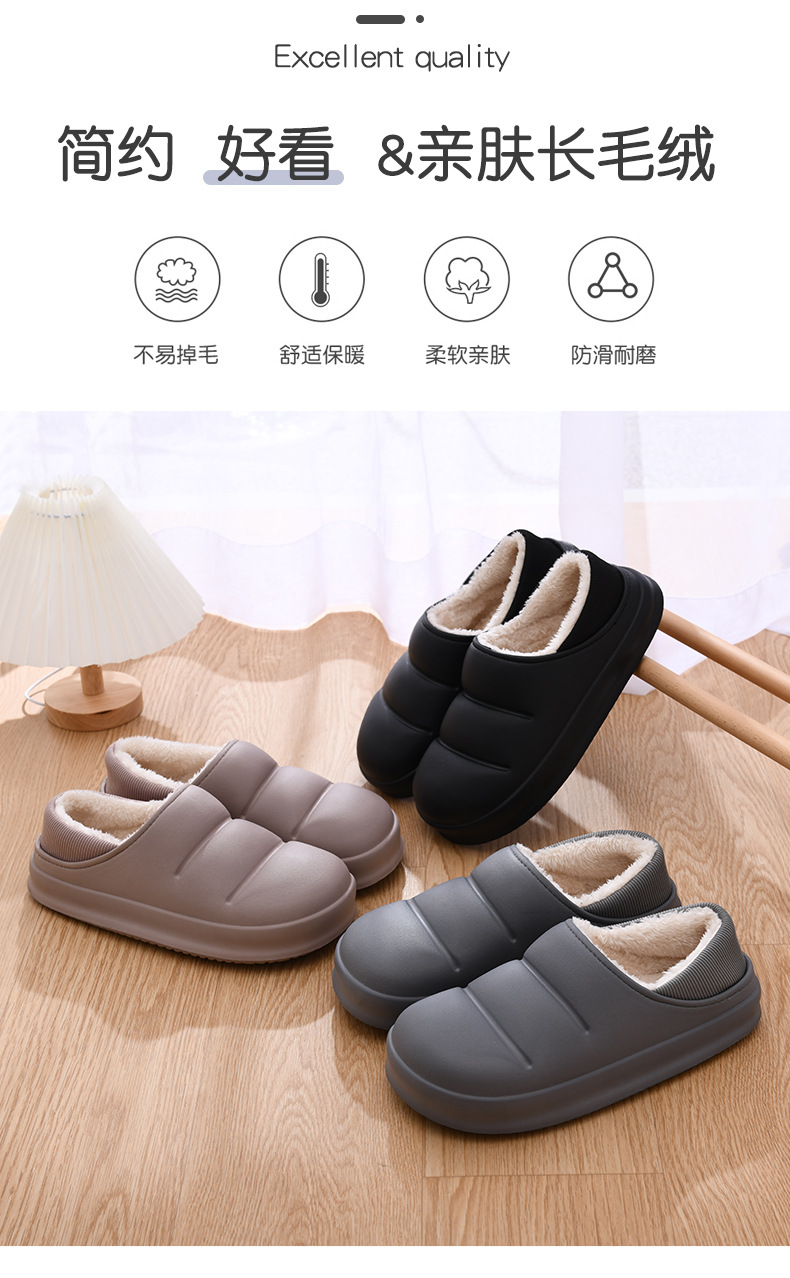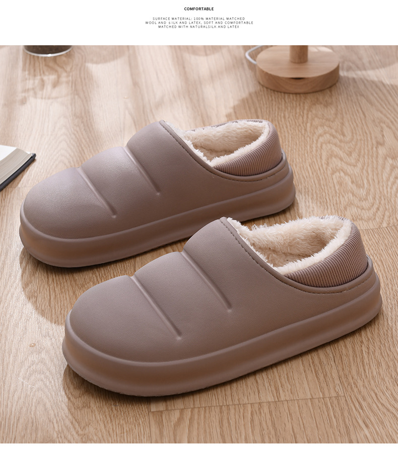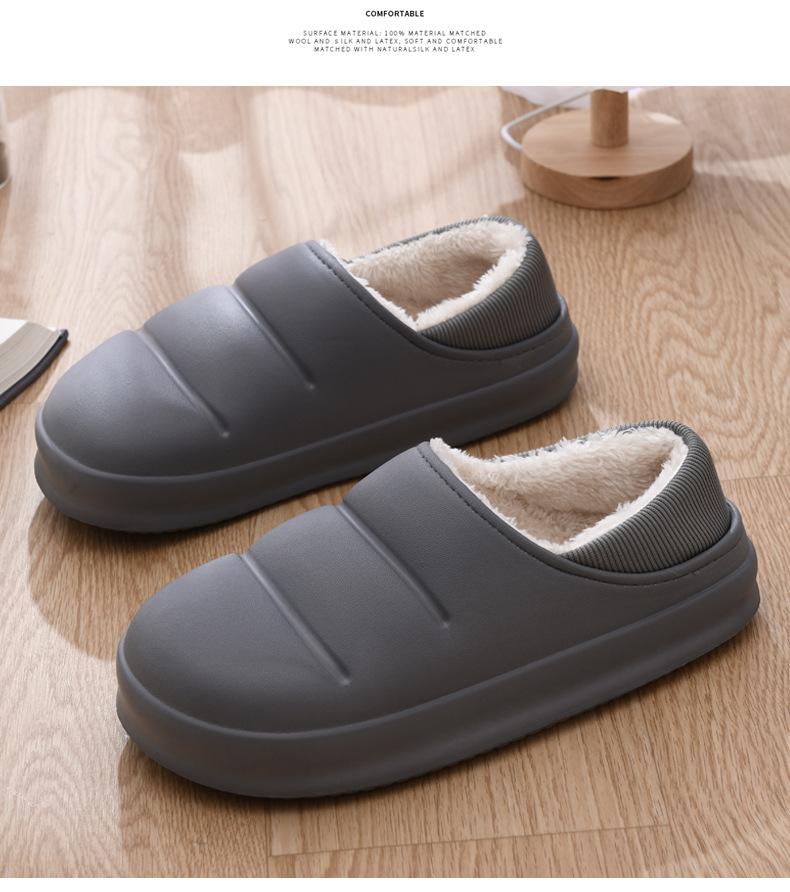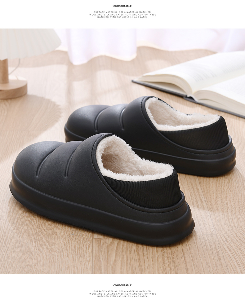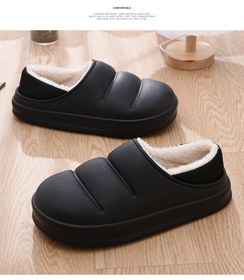 Zapatos de piel de tacón de felpa para hombre Zapatos de algodón impermeables para el hogar interior Zapatos de pan de todo fósforo de tendencia ligera Zapatillas