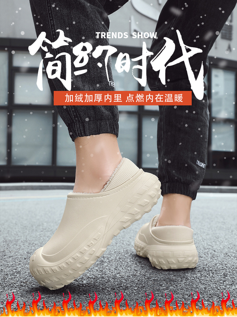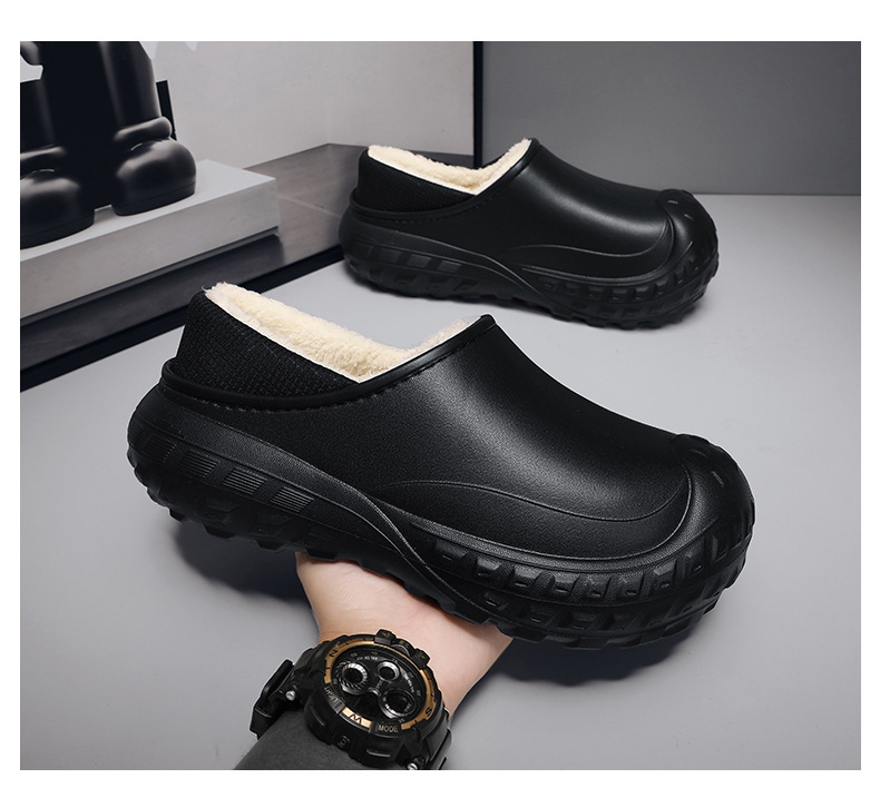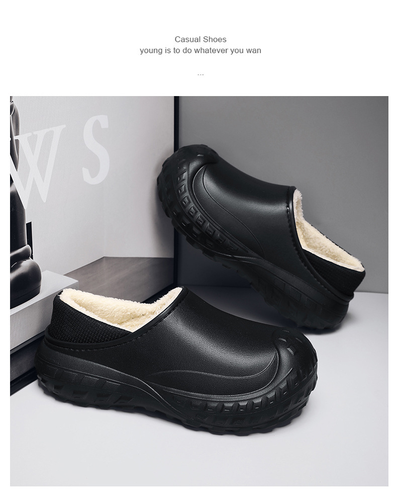 Zapatos de algodón de invierno para hombres con una sensación de mierda gruesa y una base suave de terciopelo caliente antideslizante impermeable a prueba de frío neumáticos de moda para hombres.