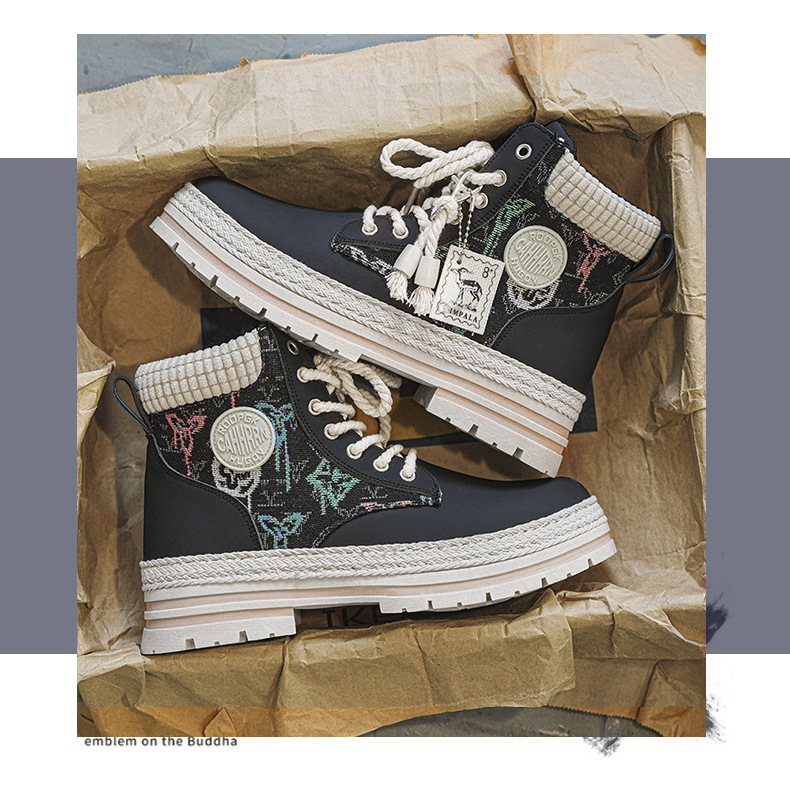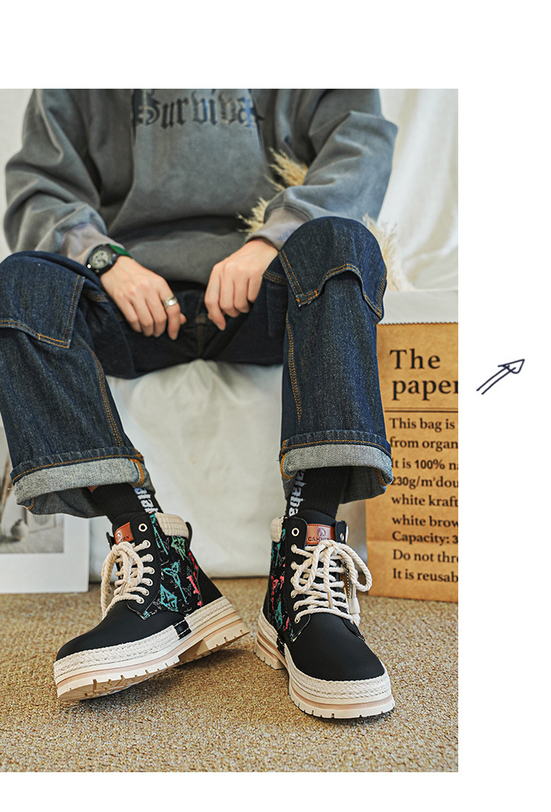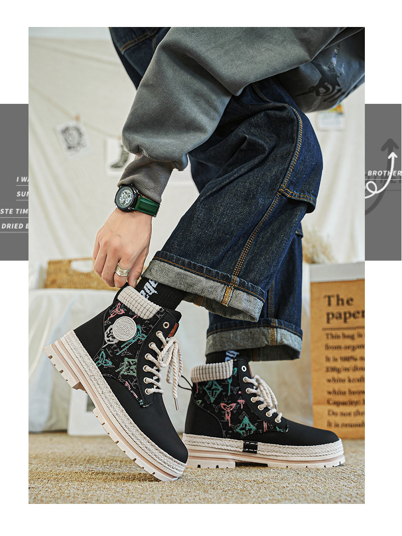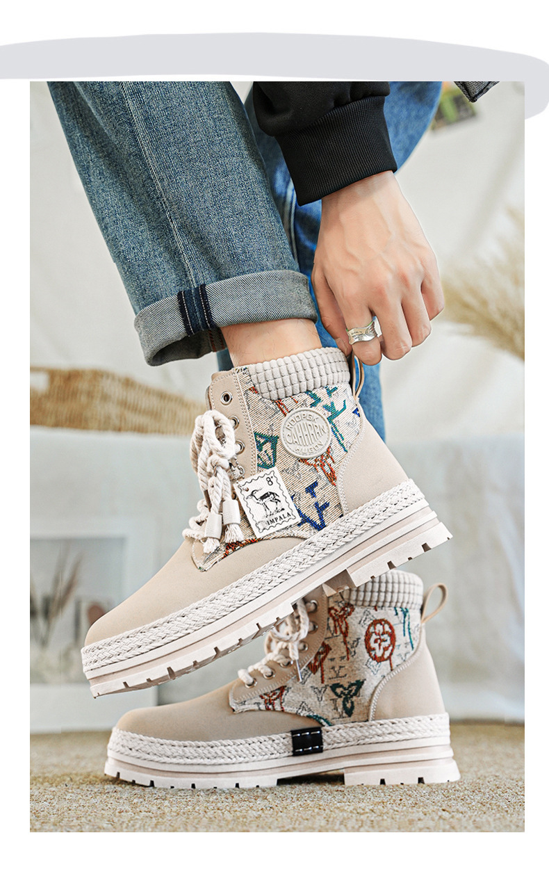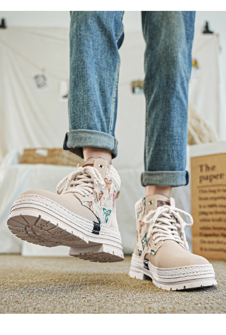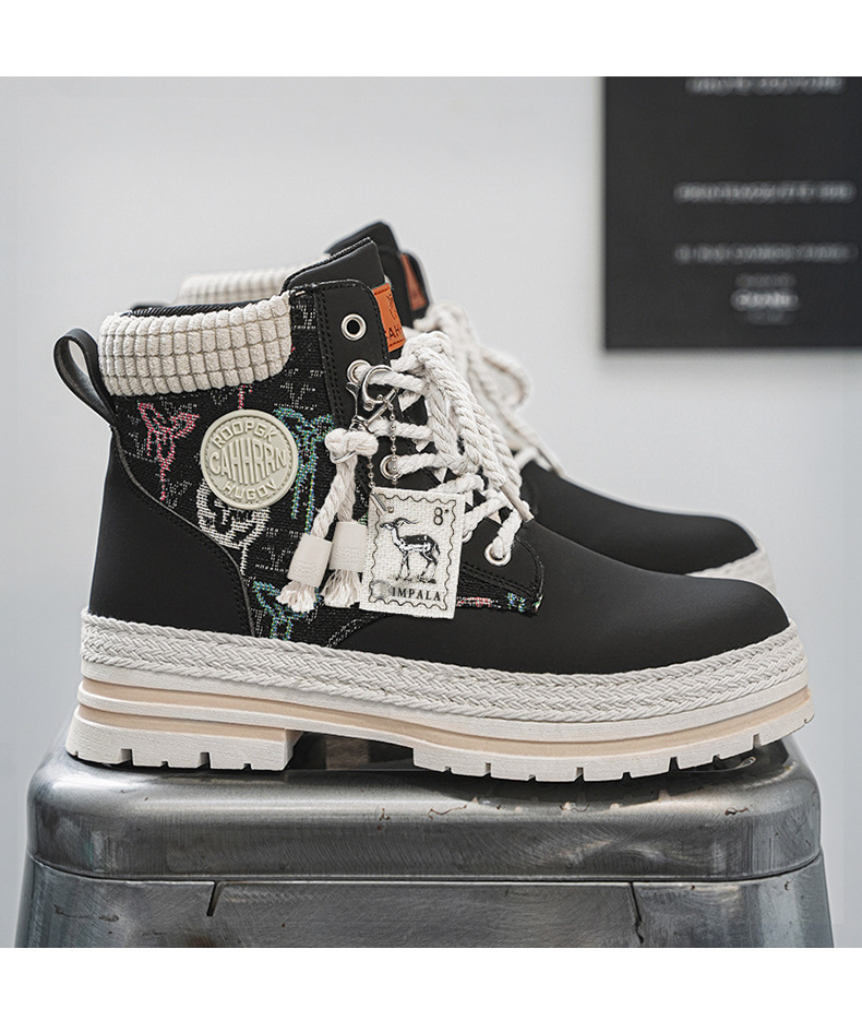 Botas de herramienta de tela de paja de Martin, zapatos de motocicleta de hombre, zapatos de moda casuales al aire libre, zapatos de hombre de estilo británico transfronterizo