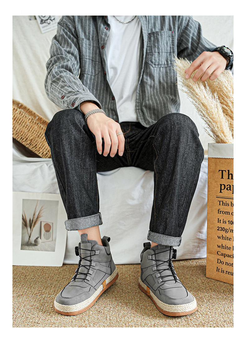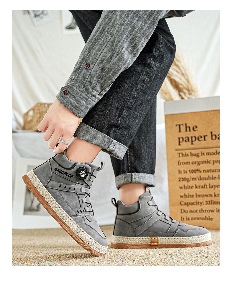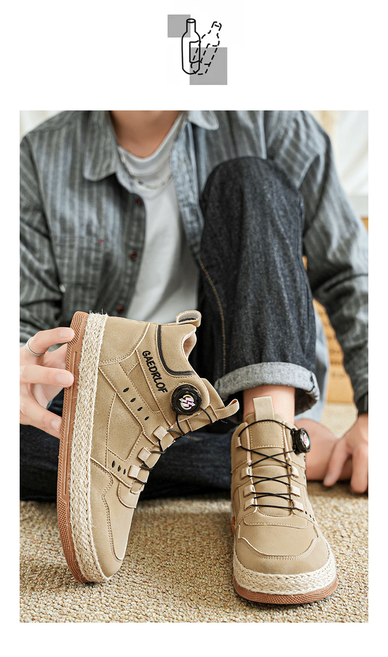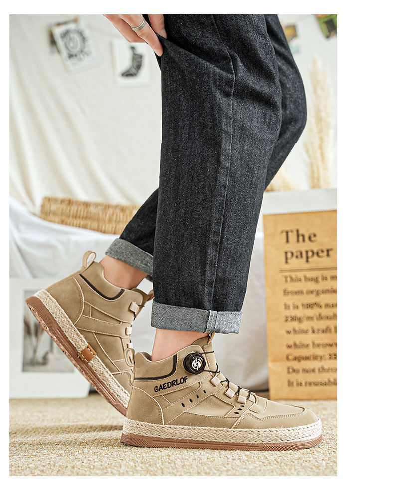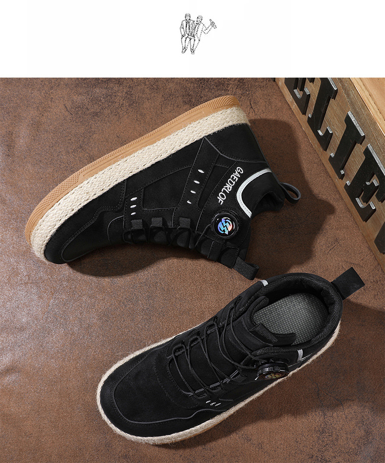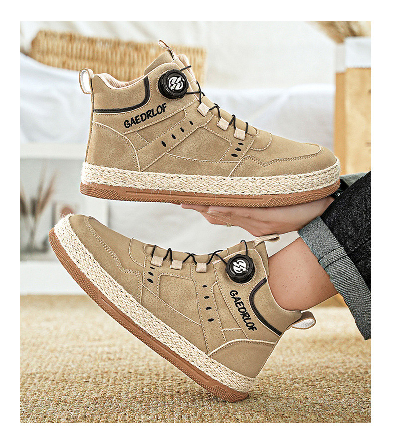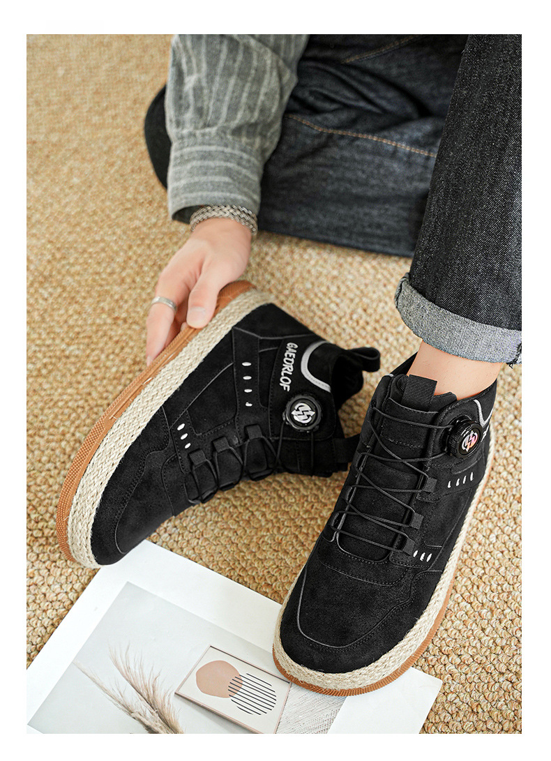 2024 otoño nuevo botón giratorio zapatos de skate de alta altura de moda casual zapatos de hombre al aire libre zapatos de trabajo antideslizantes