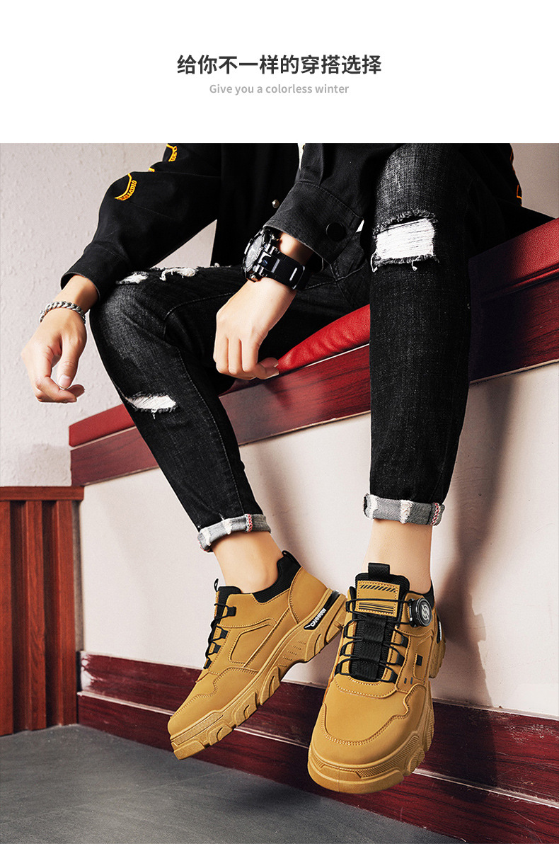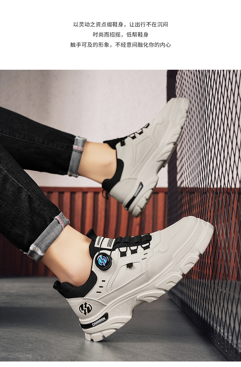 2024 otoño nuevo botón giratorio sin lazos hombre baja zapatos de cuero de moda casual zapatos de hombre de altura