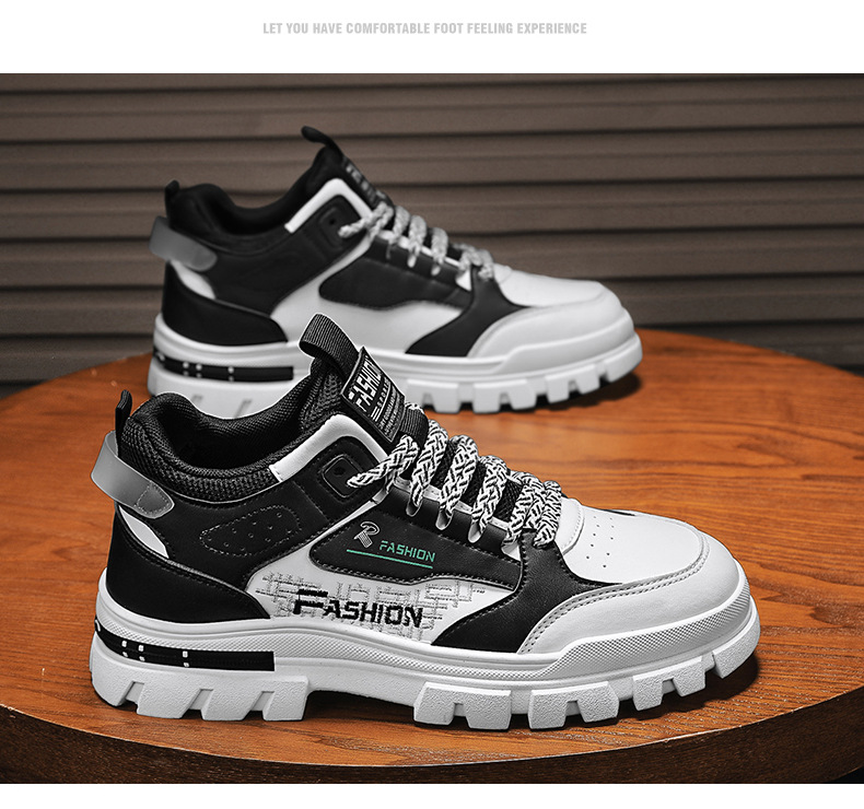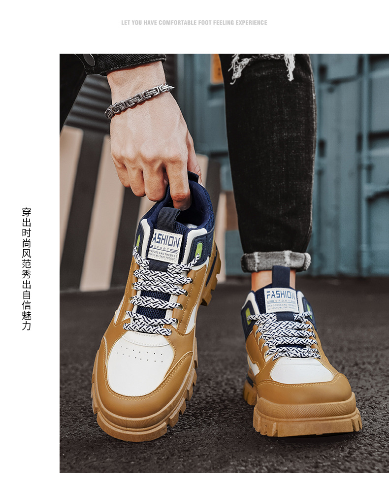 2024 otoño nuevos zapatos de hombre de baja altura de estilo de moda casuales de suela gruesa aumentada de cuero empalmado zapatos de hombre de estilo británico