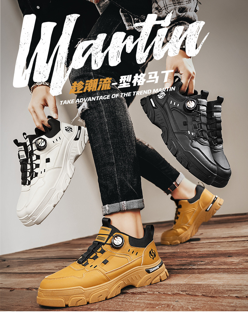 2024 otoño nuevo hombre bajo botón de botón giratorio Martin zapatos de cuero de moda casual zapatos deportivos de hombre