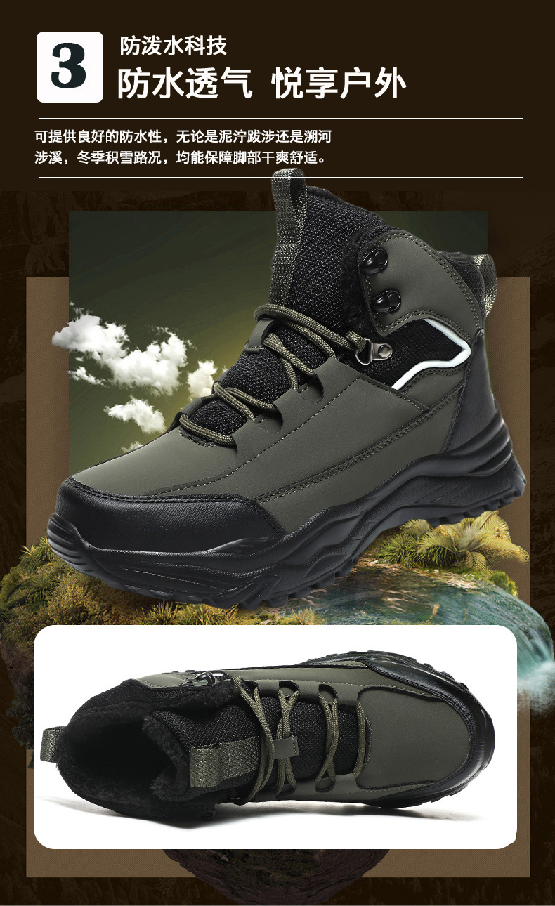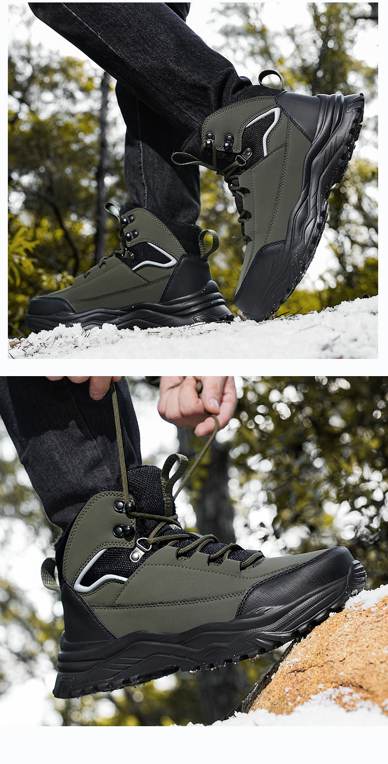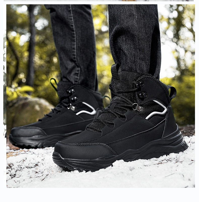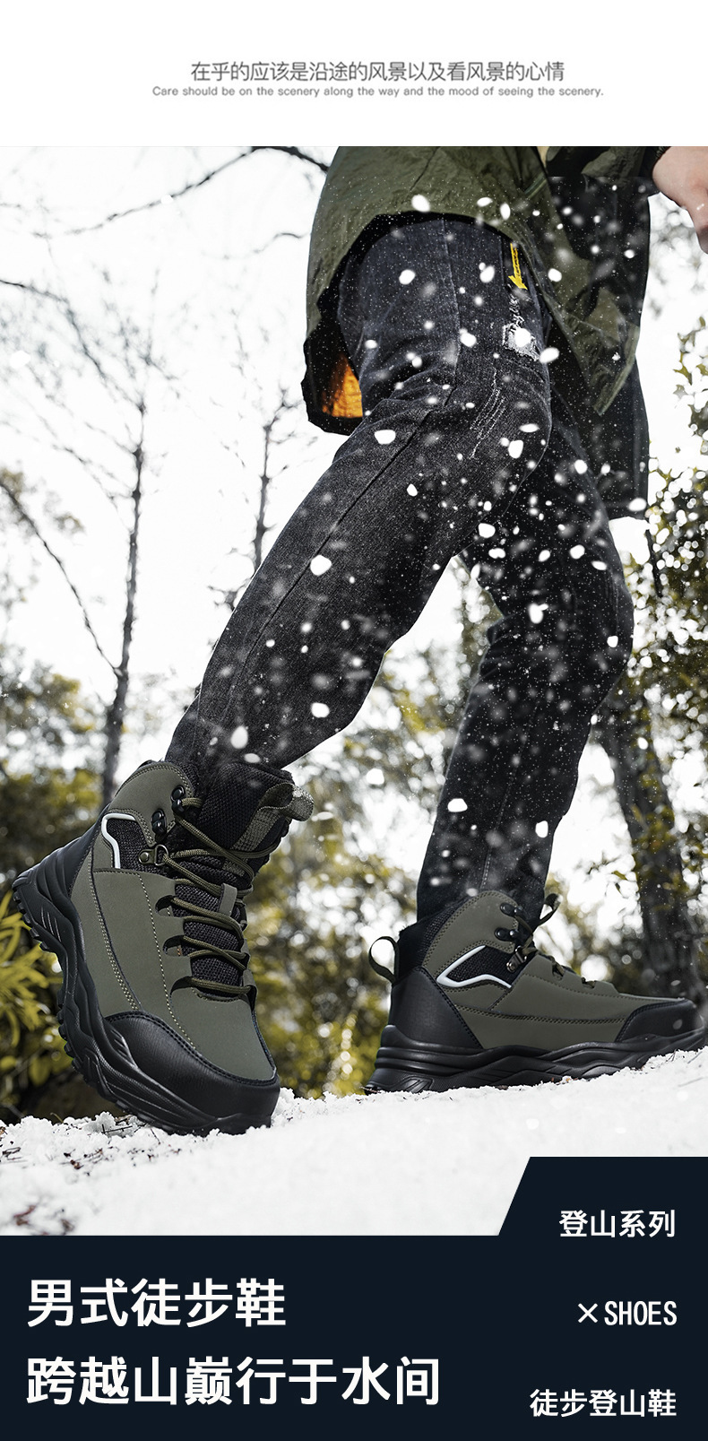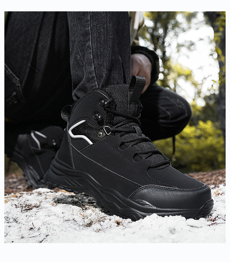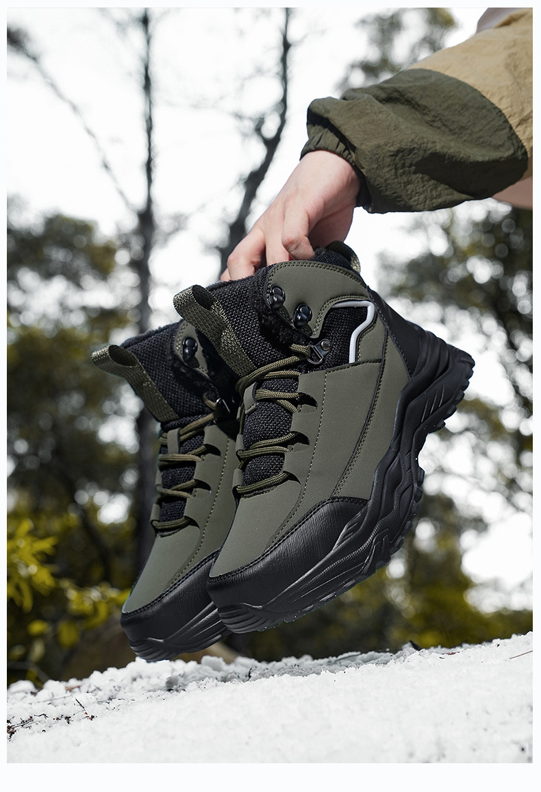 2024 nuevos zapatos de algodón de invierno gruesos de suela grande para hombres botas de nieve gruesas transpirables al aire libre impermeables zapatos de montaña transfronterizos