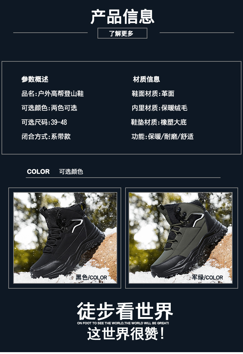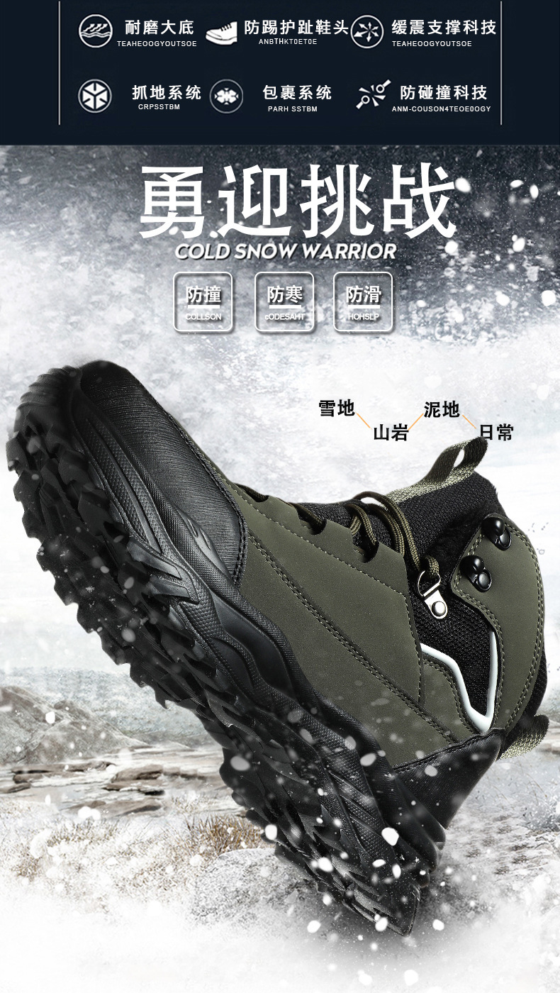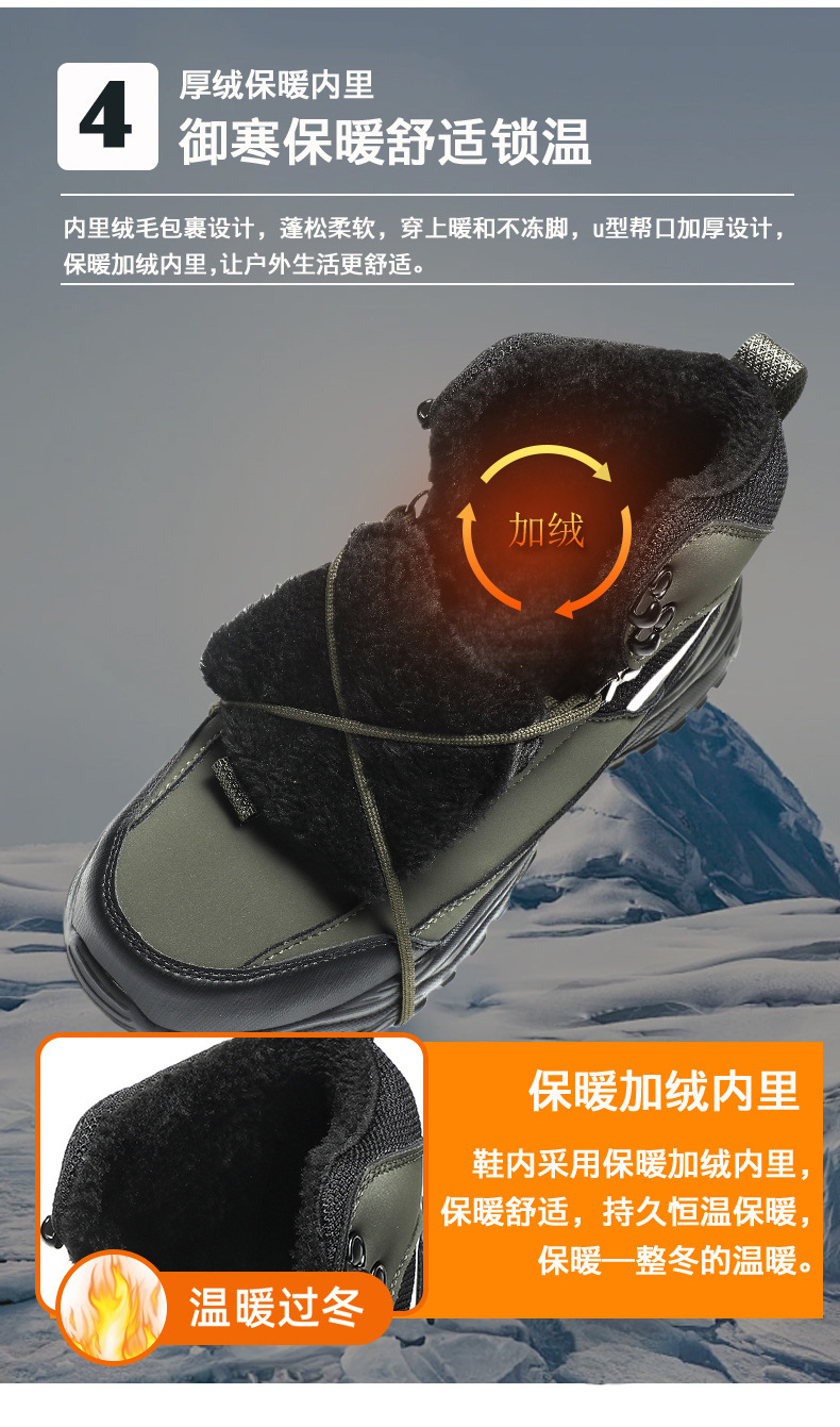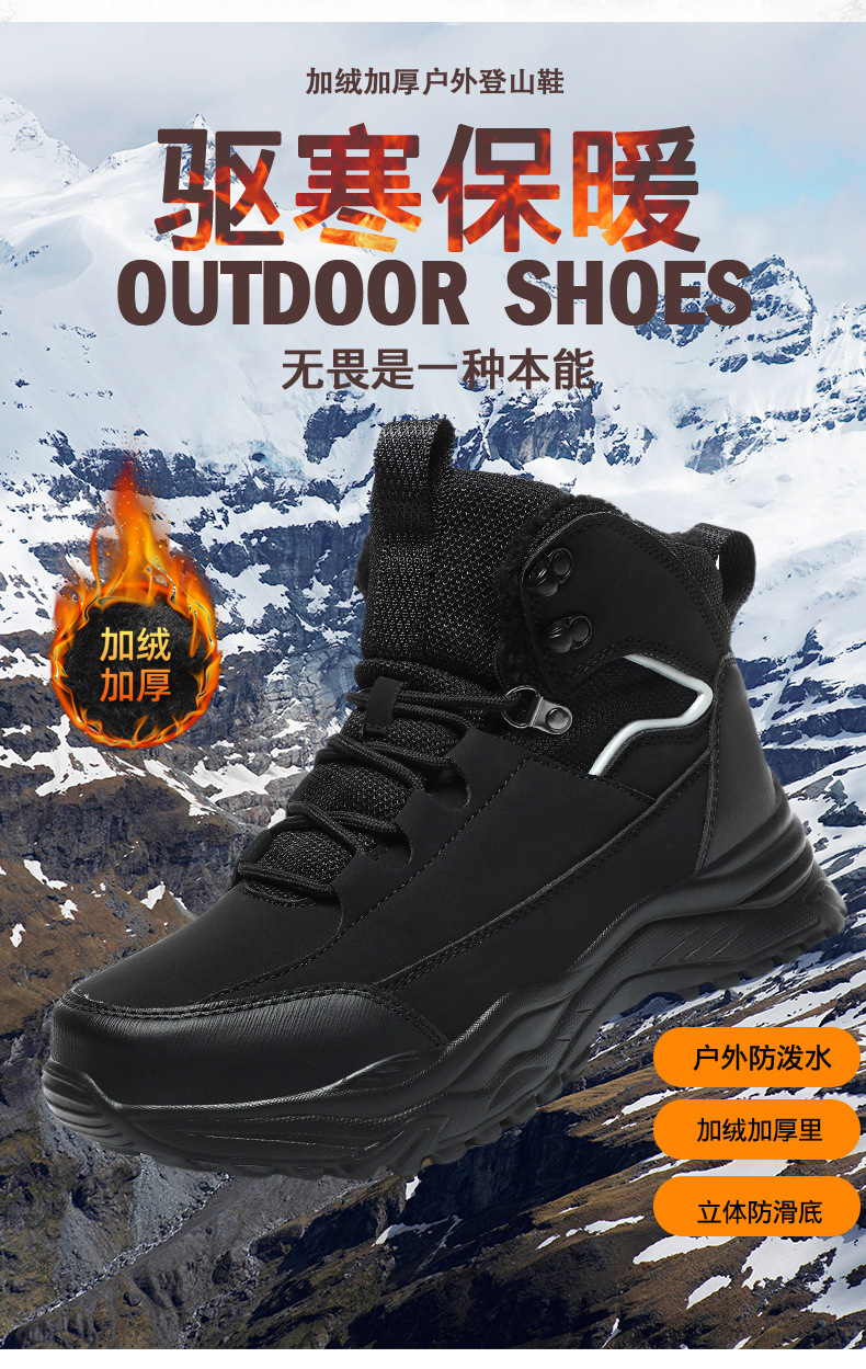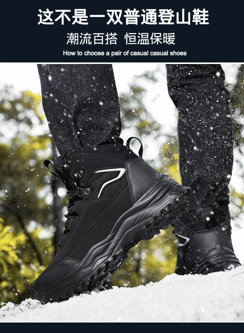 2024 nuevos zapatos de algodón de invierno gruesos de suela grande para hombres botas de nieve gruesas transpirables al aire libre impermeables zapatos de montaña transfronterizos