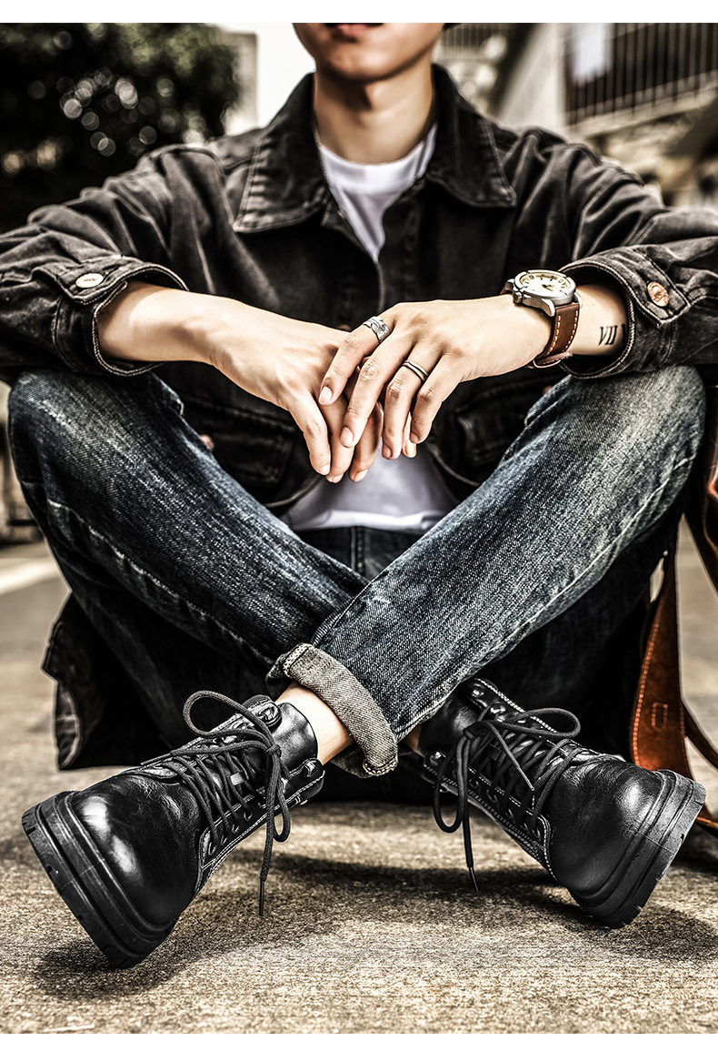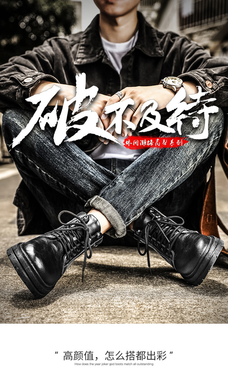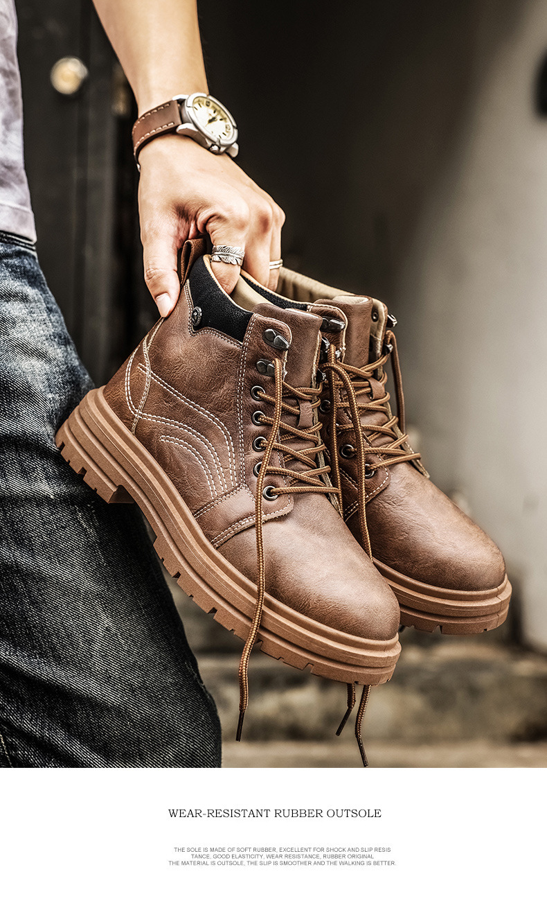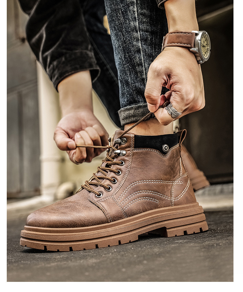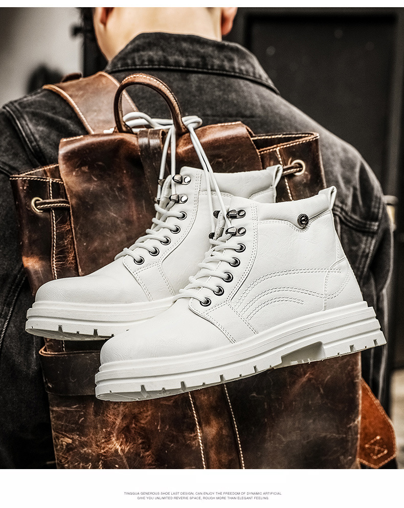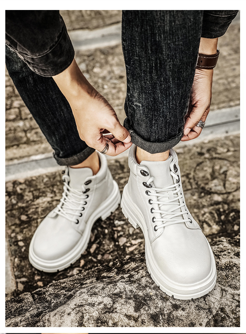 2024 otoño y invierno nuevos zapatos de moda para hombres botas de alto perfil blanco Martin zapatos de tendencia coreanos zapatos de tendencia generales transfronterizos